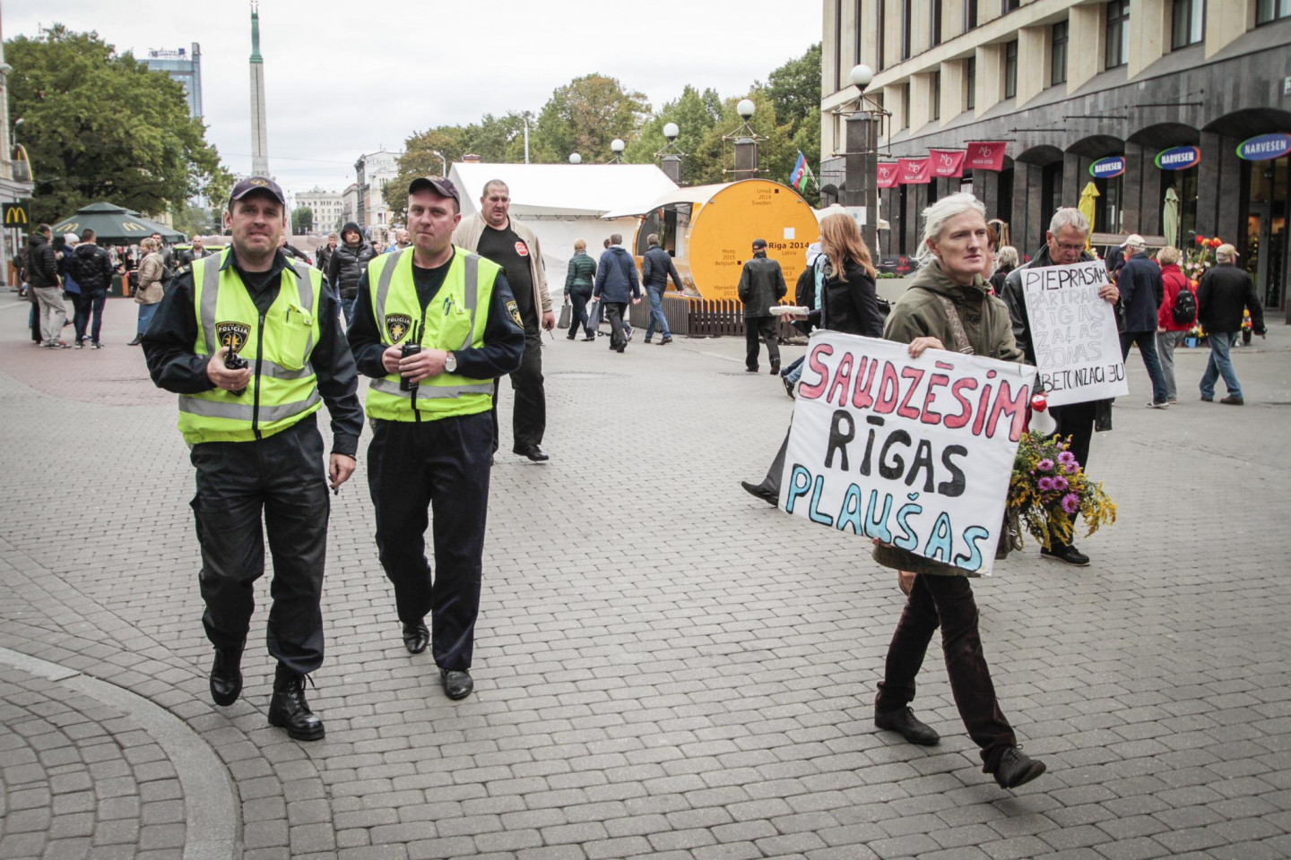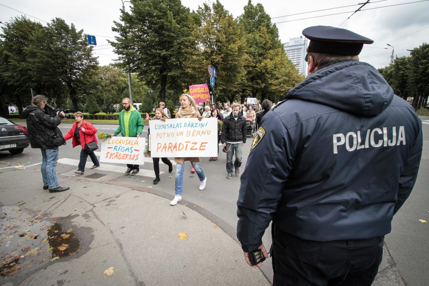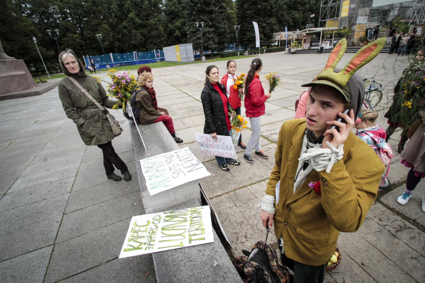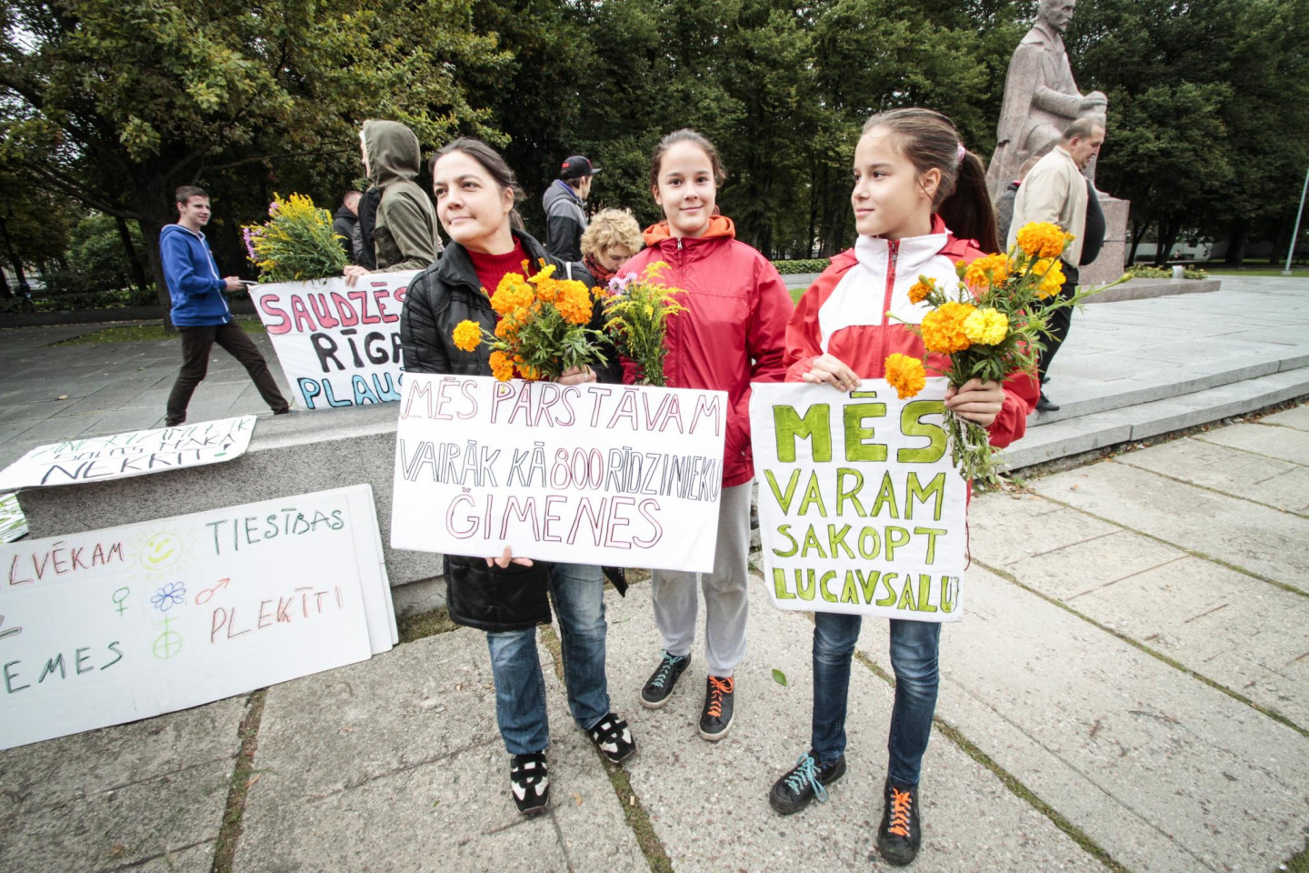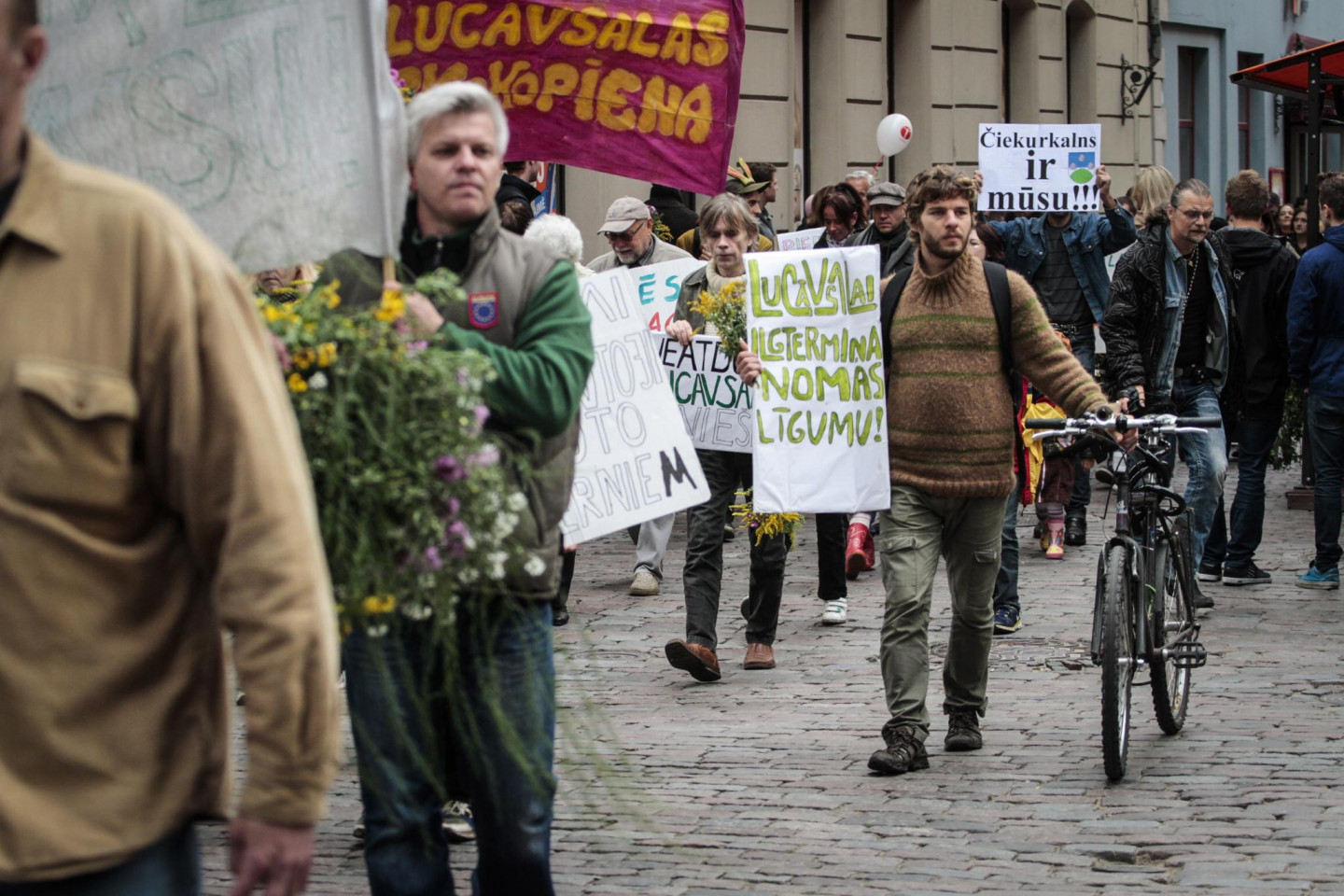 Daži desmiti cilvēku svētdien, 28.septembrī, pie Raiņa pieminekļa Esplanādē pulcējās Lucavsalas aizsardzības biedrības rīkotajam gājienam pret Lucavsalas pārdošanu.