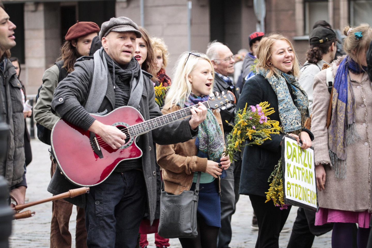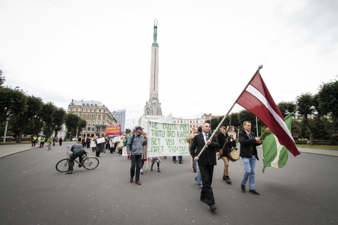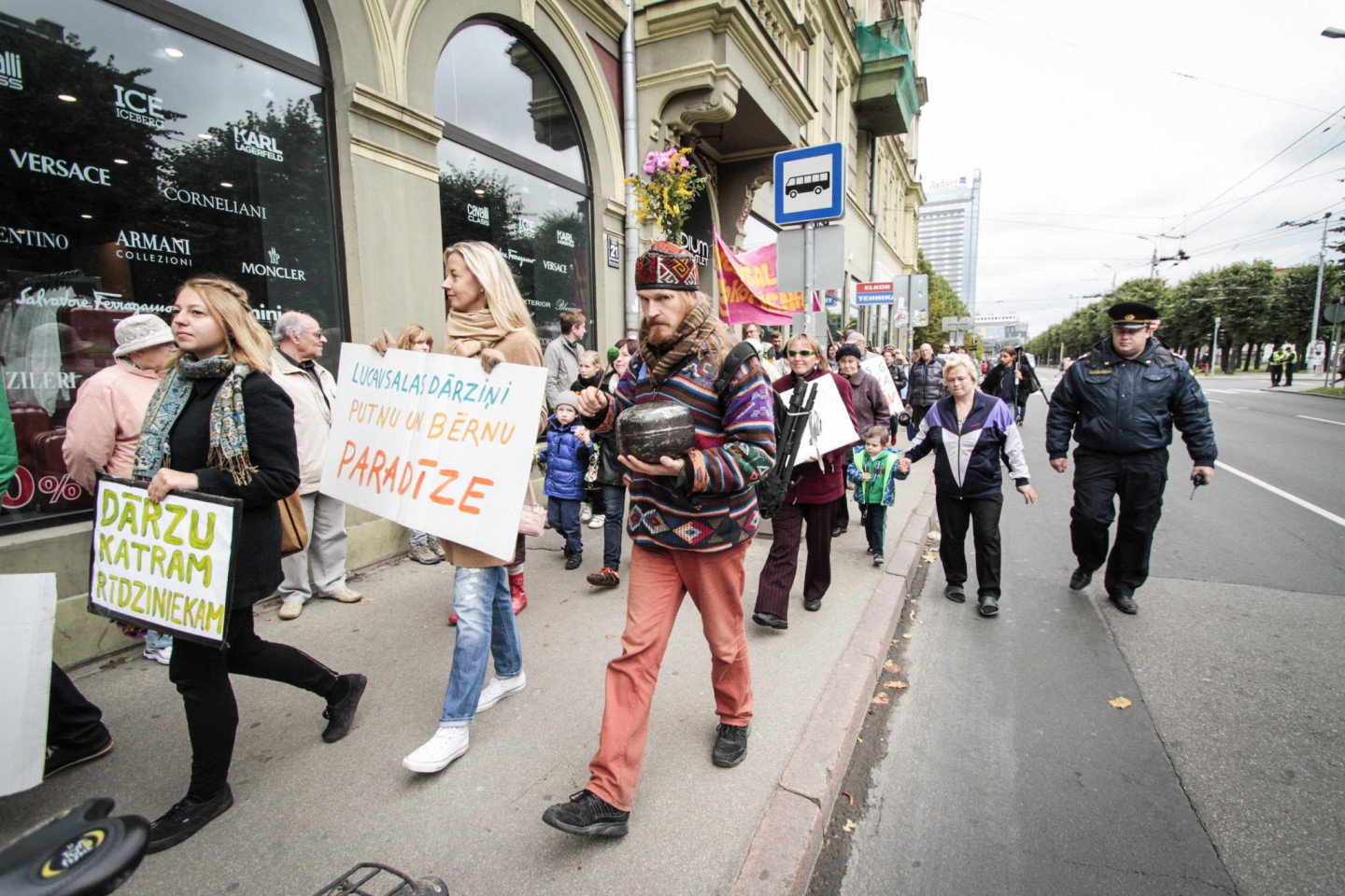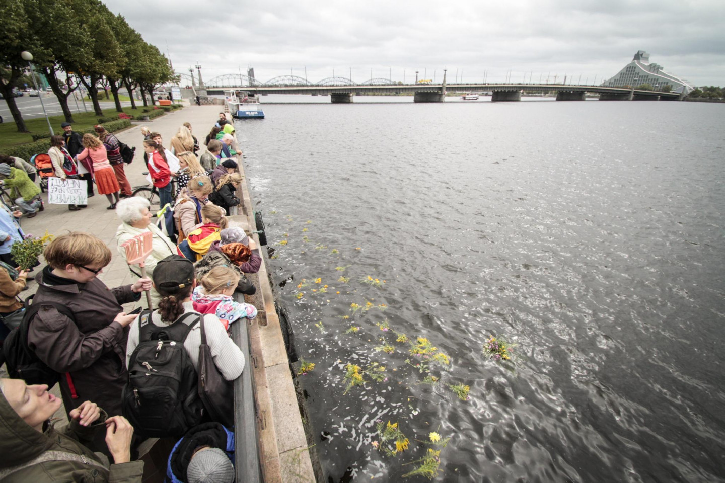 Daži desmiti cilvēku svētdien, 28.septembrī, pie Raiņa pieminekļa Esplanādē pulcējās Lucavsalas aizsardzības biedrības rīkotajam gājienam pret Lucavsalas pārdošanu.