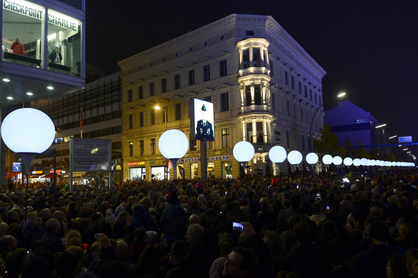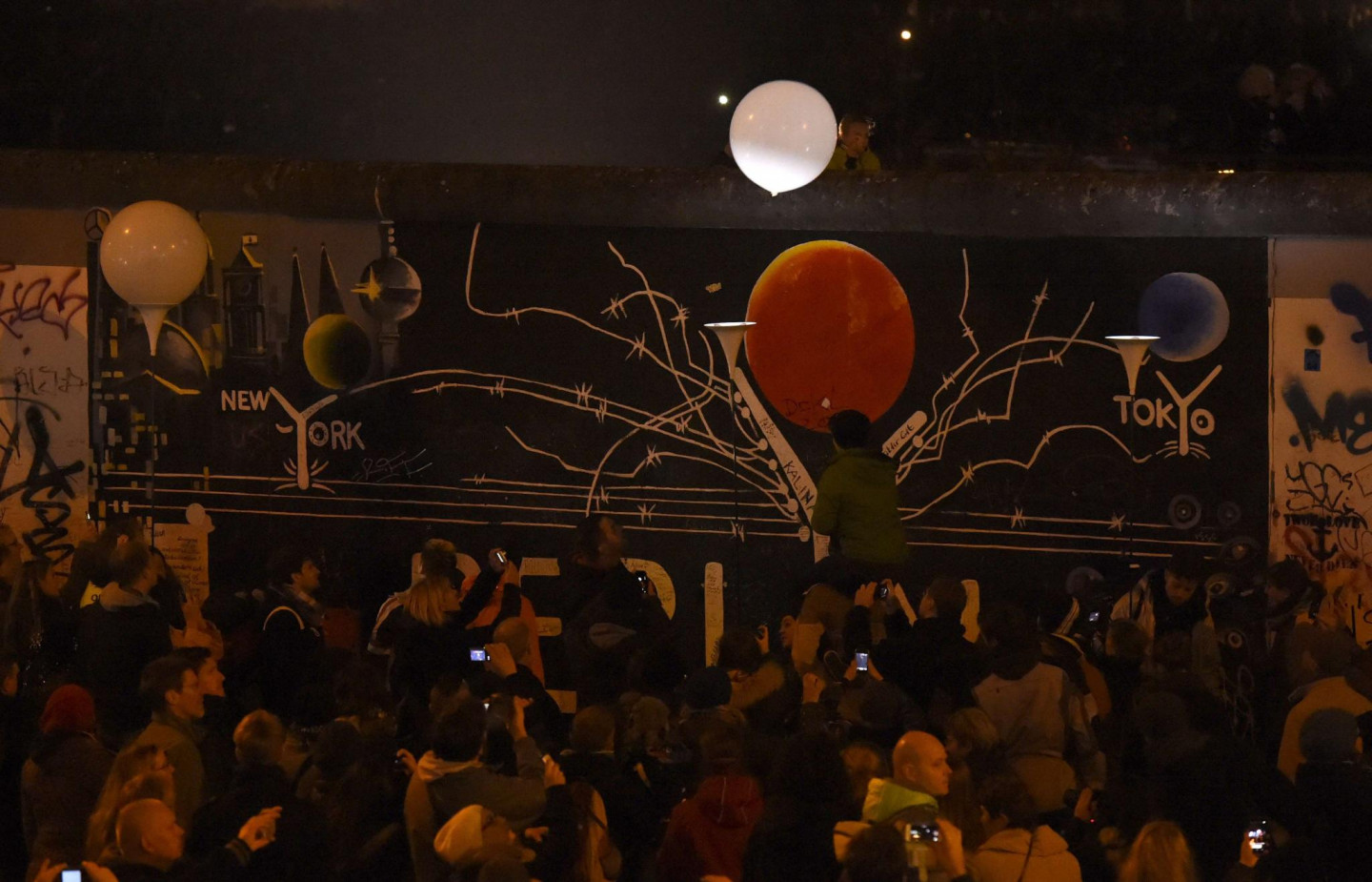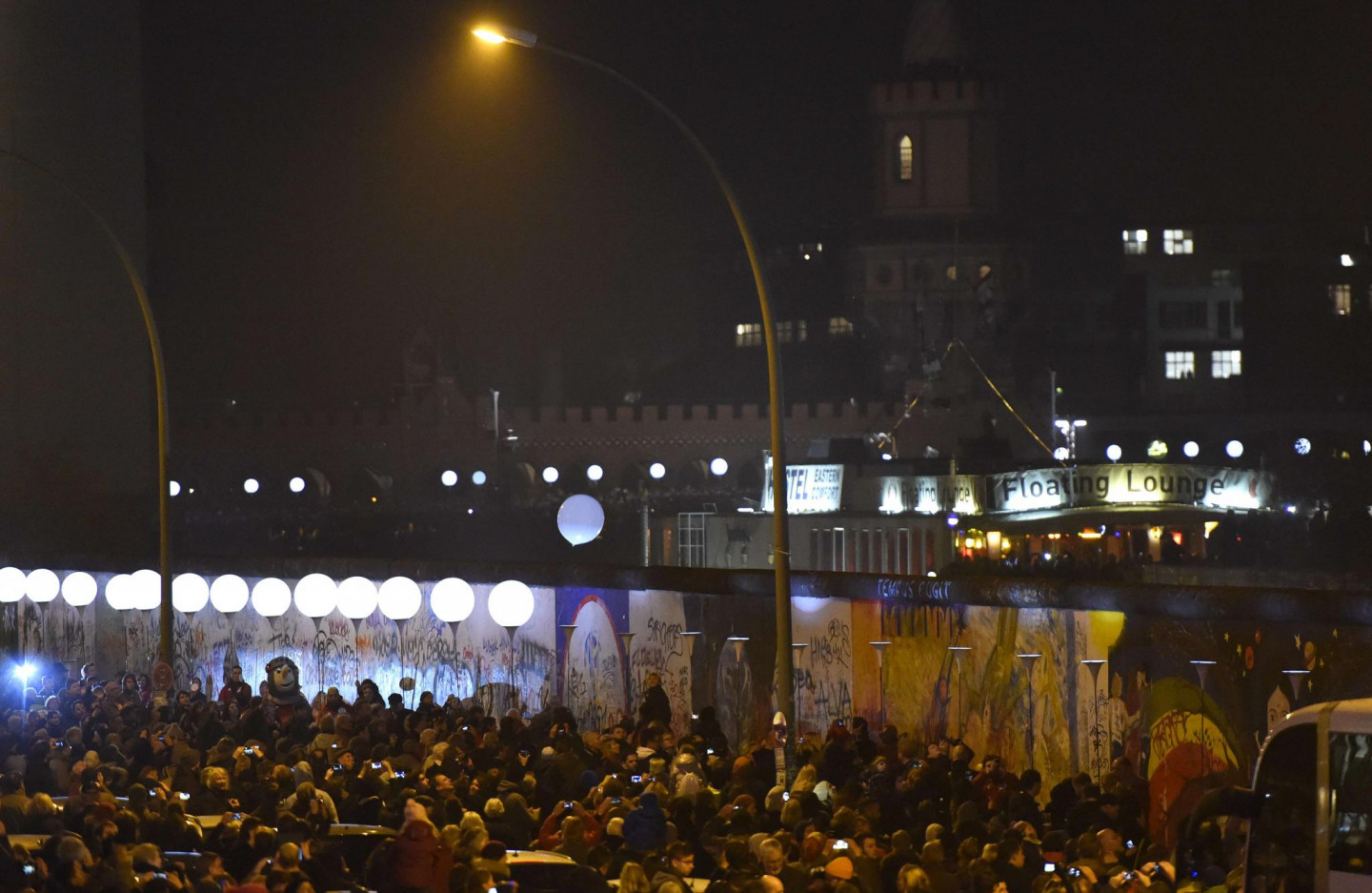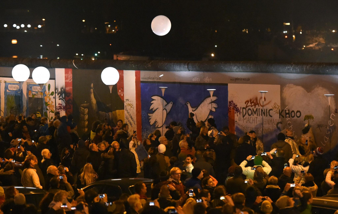 Berlīnes mūra krišanas svinībās notika milzīgas instalācijas atklāšana, iededzot 8000 izgaismotu baltu balonu, kas noenkuroti 15 kilometrus garā kādreizējā mūra posmā, iezīmējot daļu no 155 kilometrus garās robežas, kas savulaik ieskāva Rietumberlīni, norobežojot to no VDR teritorijas. Mirdzošās lodes, skanot Bēthovena 9.simfonijas finālam - "Odai priekam", brīvi paceļas naksnīgajās debesīs.