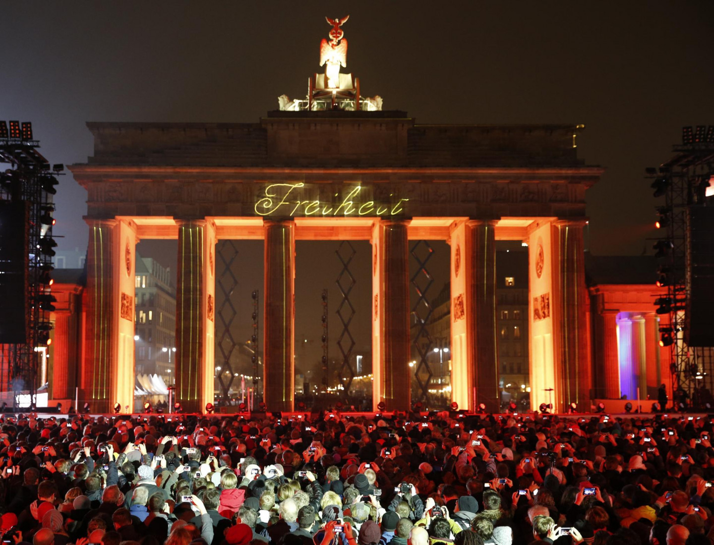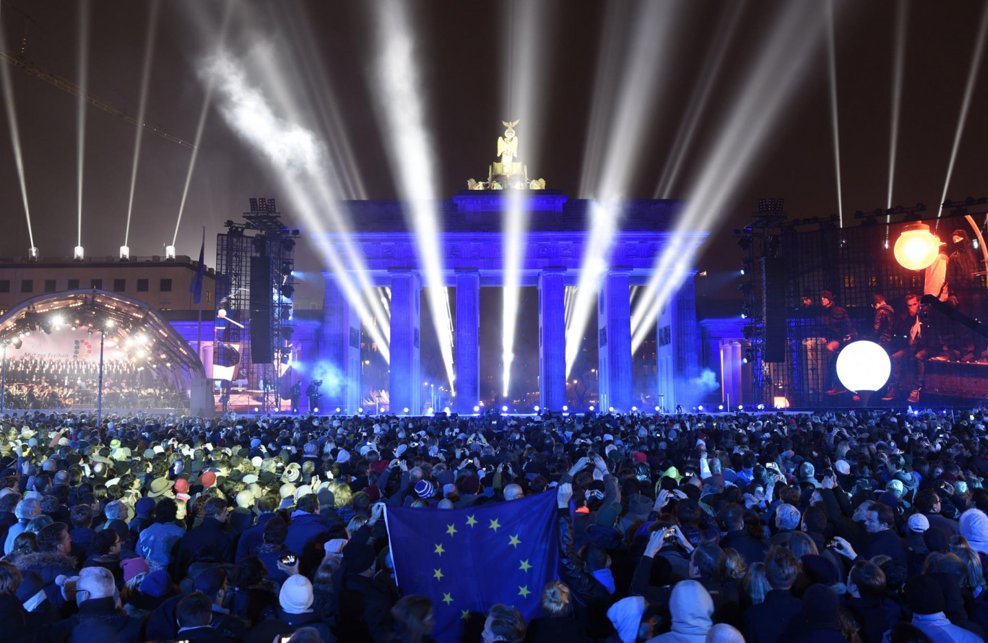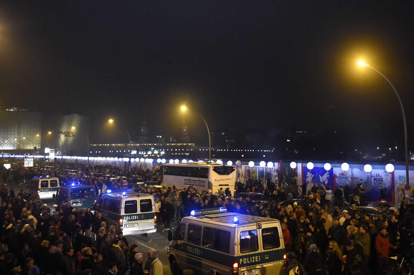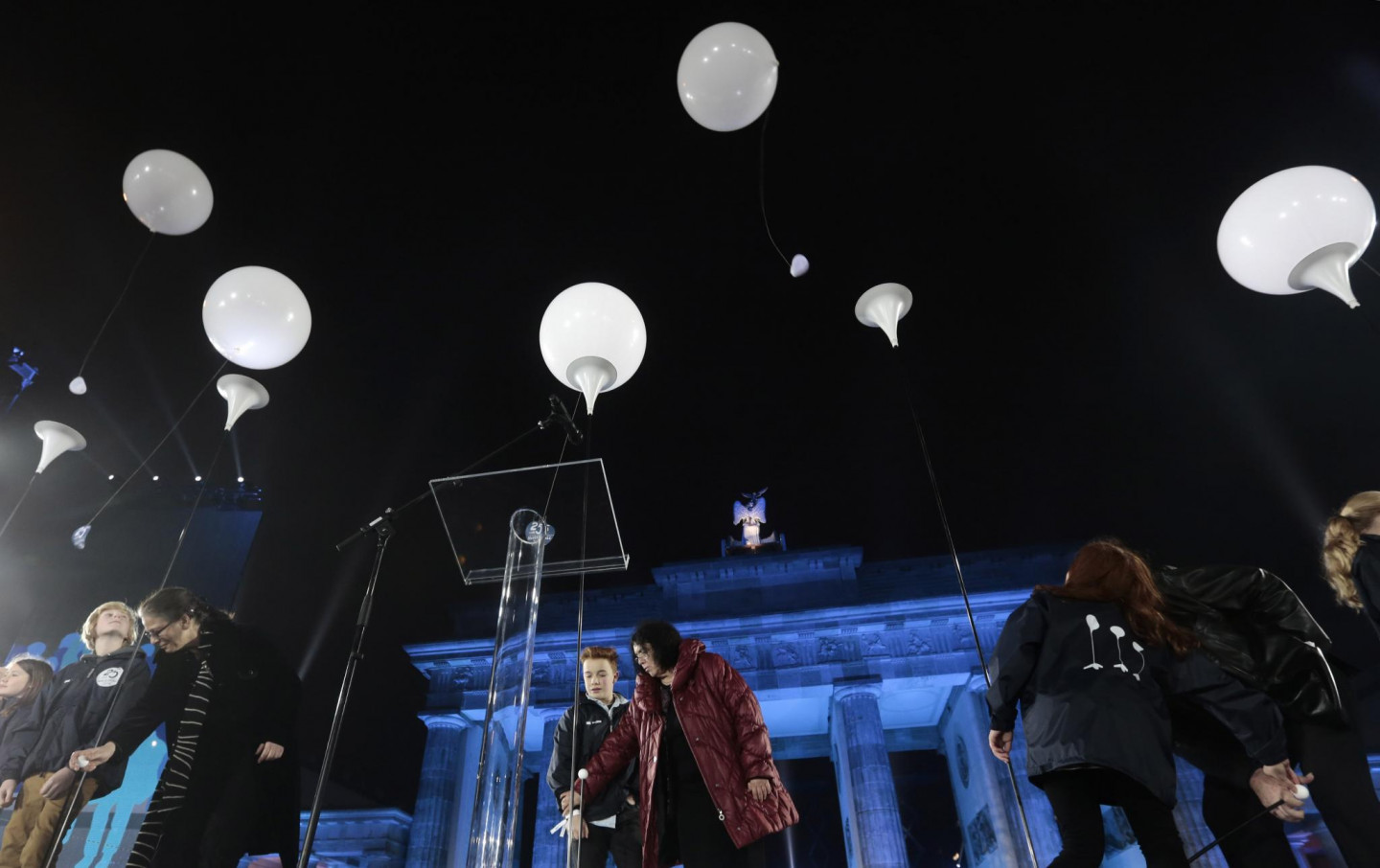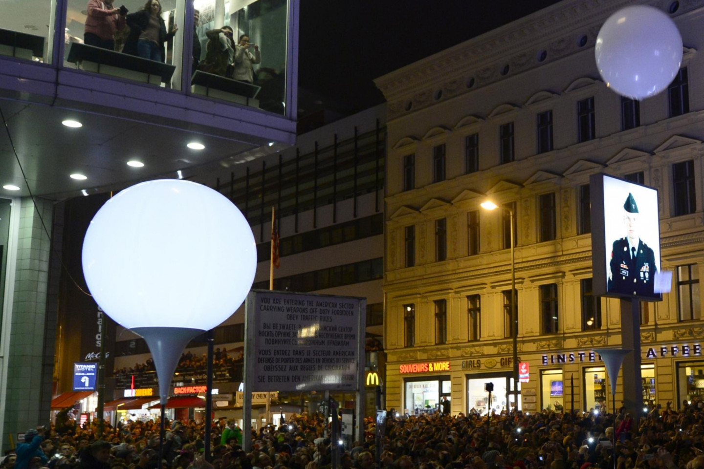 Berlīnes mūra krišanas svinībās notika milzīgas instalācijas atklāšana, iededzot 8000 izgaismotu baltu balonu, kas noenkuroti 15 kilometrus garā kādreizējā mūra posmā, iezīmējot daļu no 155 kilometrus garās robežas, kas savulaik ieskāva Rietumberlīni, norobežojot to no VDR teritorijas. Mirdzošās lodes, skanot Bēthovena 9.simfonijas finālam - "Odai priekam", brīvi paceļas naksnīgajās debesīs.