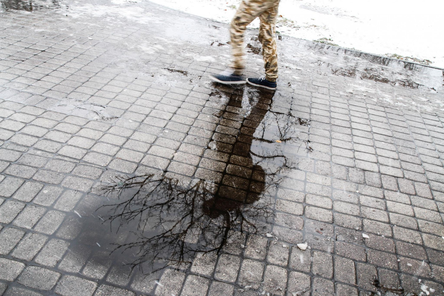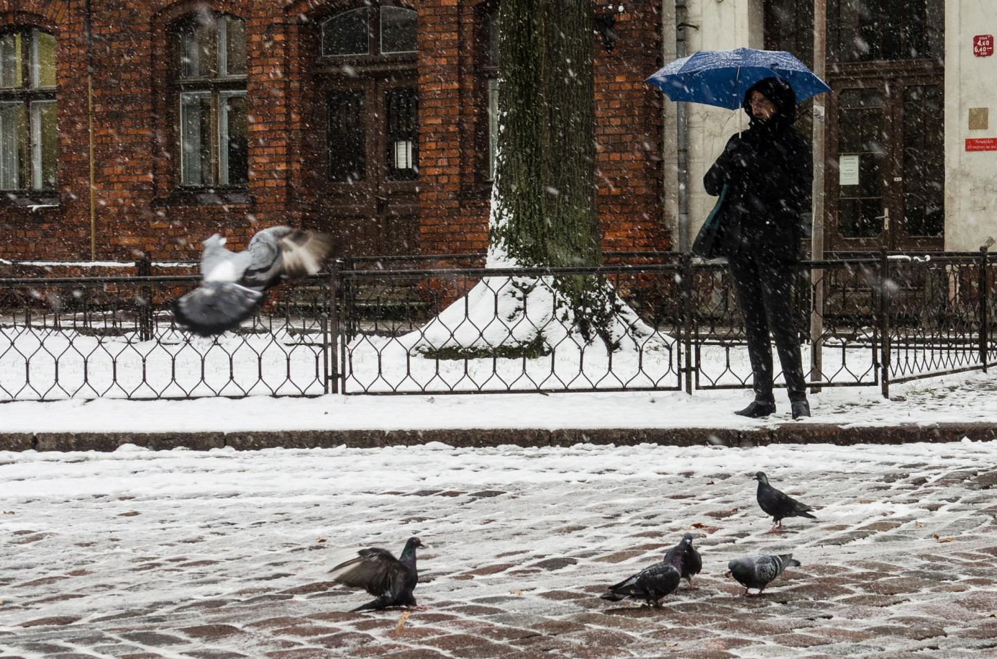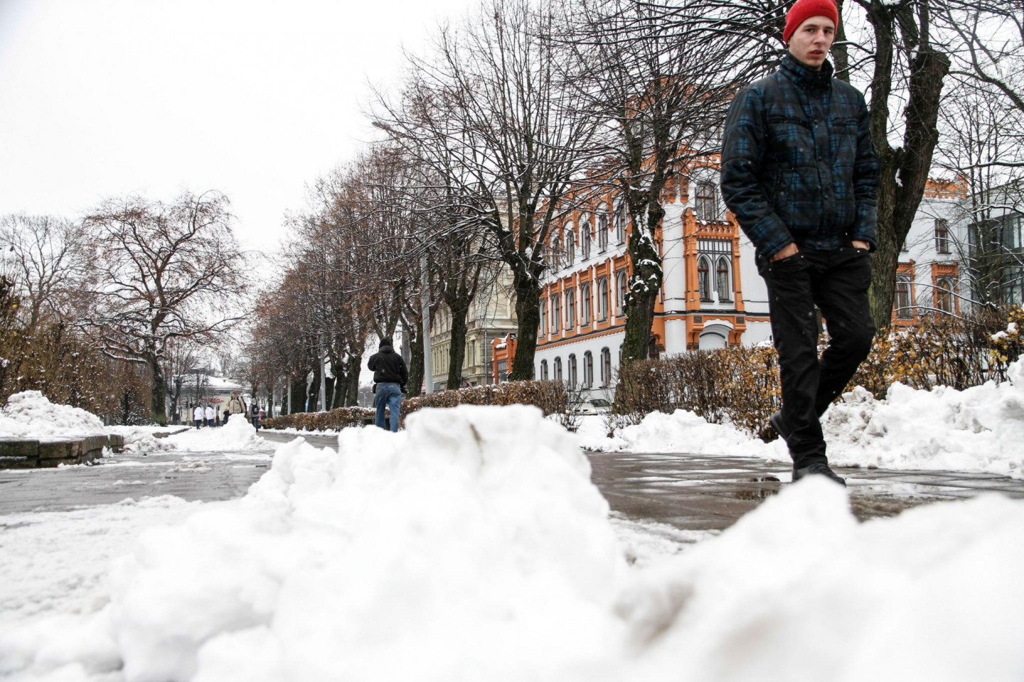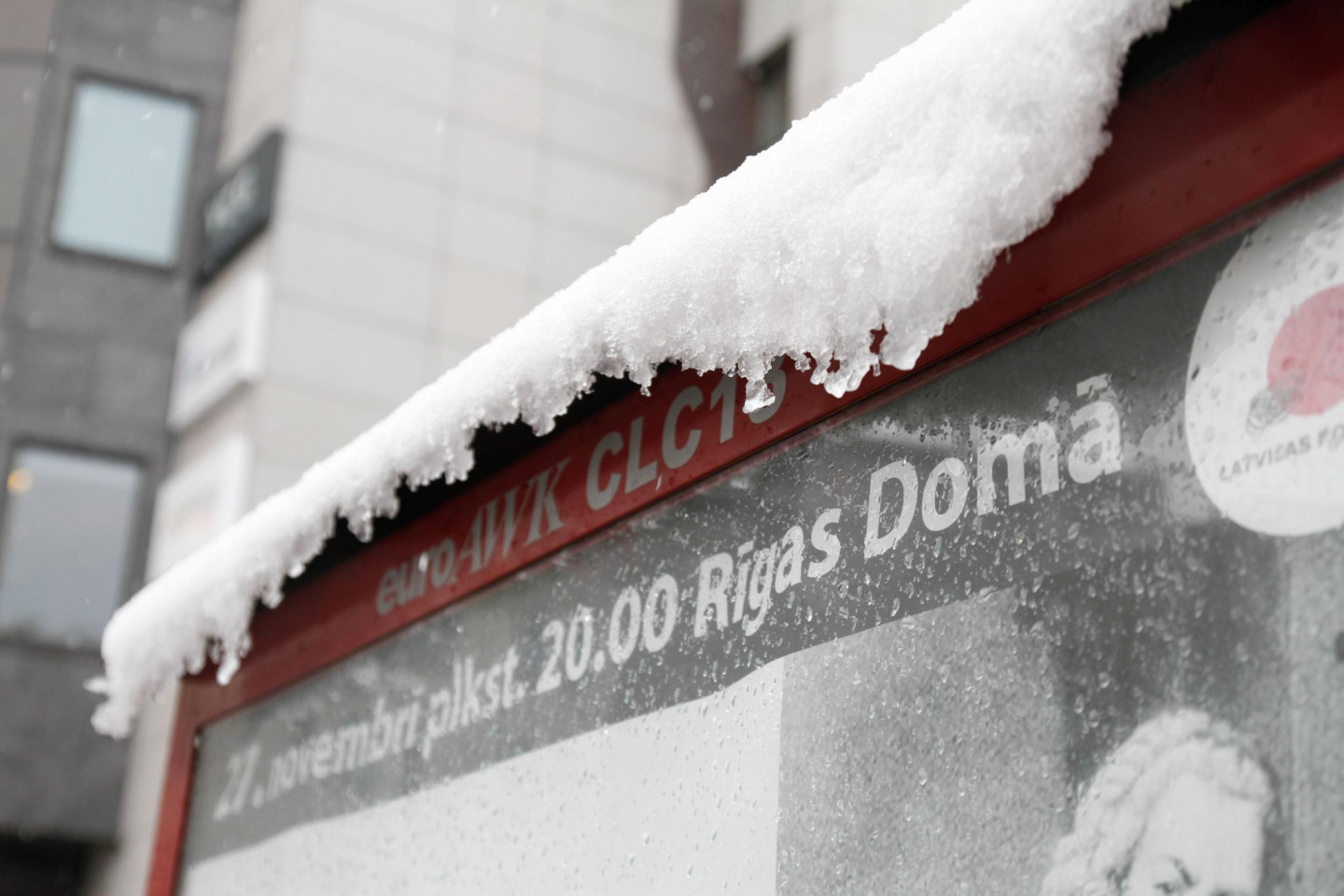 Šodien daudzviet Latvijā uzsnidzis pirmais sniegs un arī galvaspilsētas ielas appludinājušas kupenas.