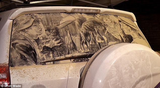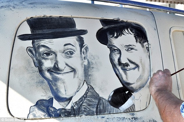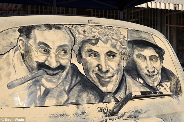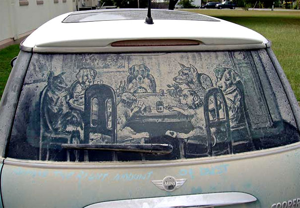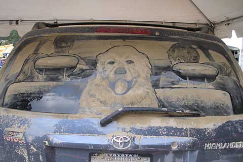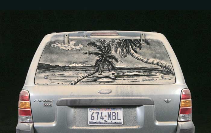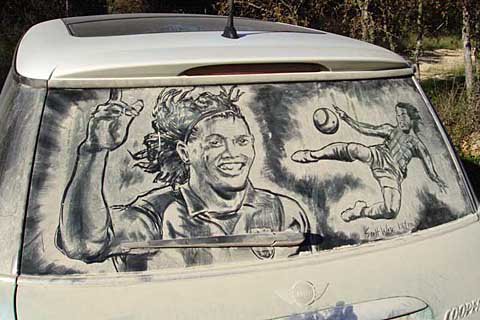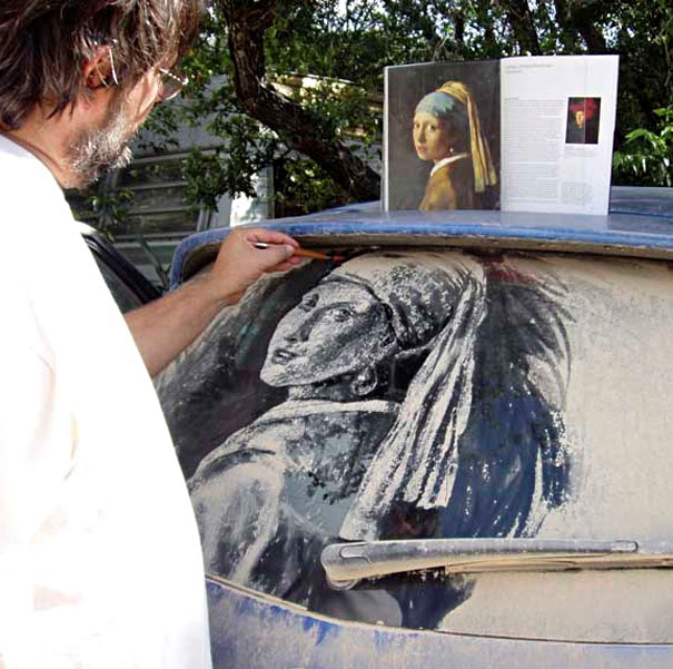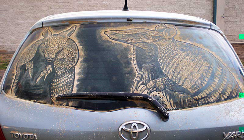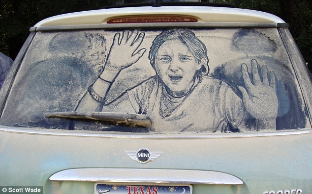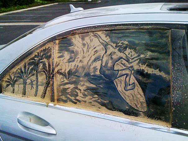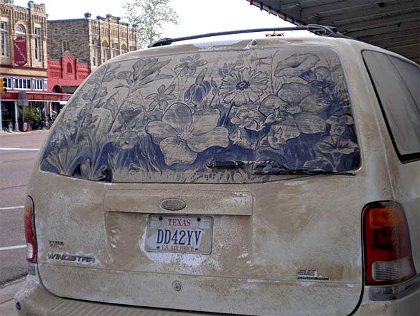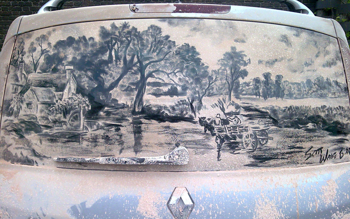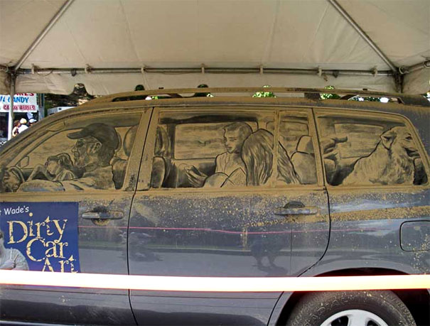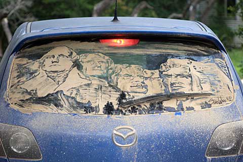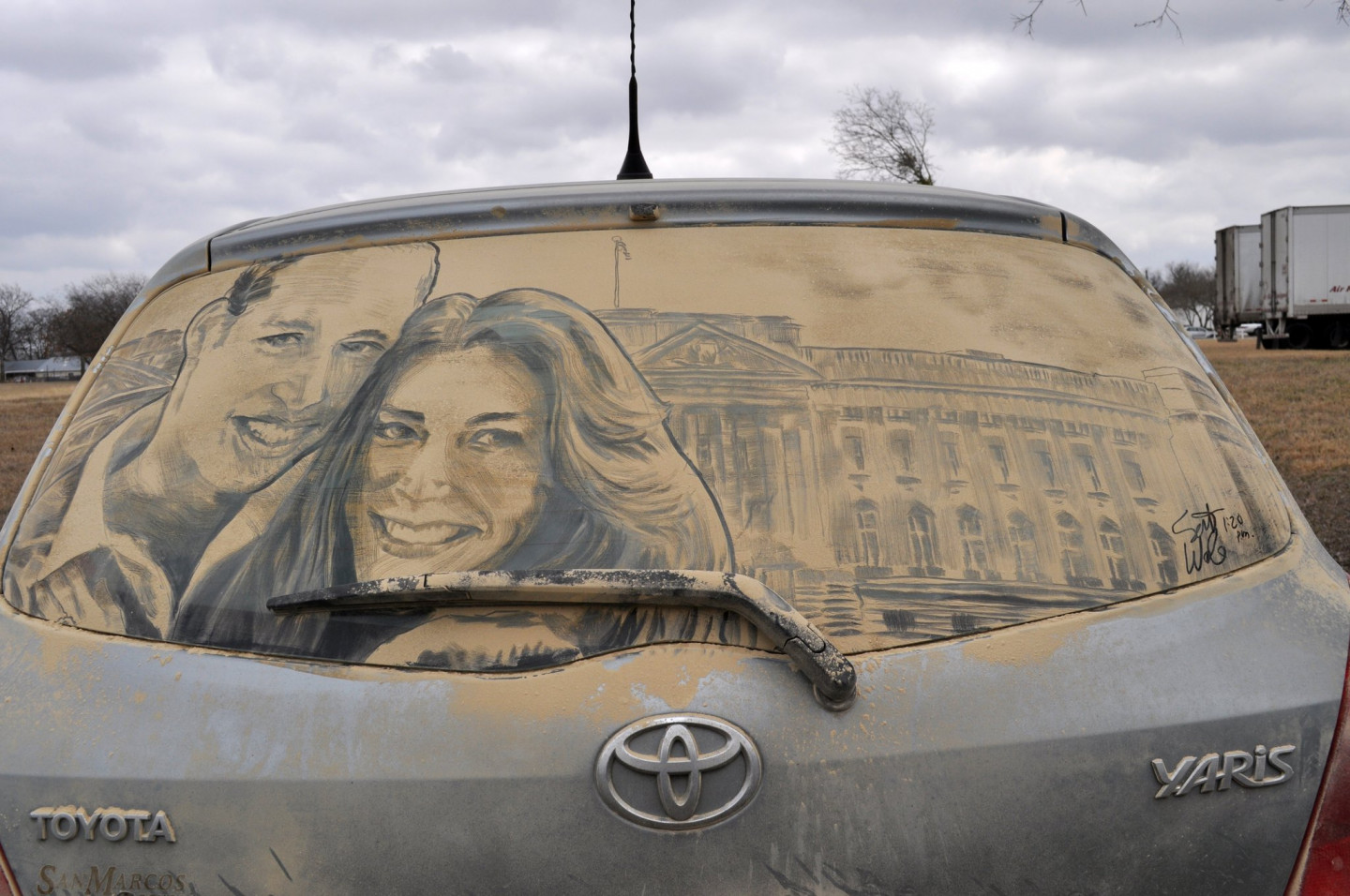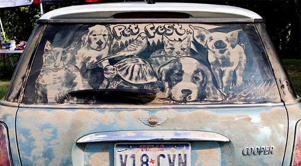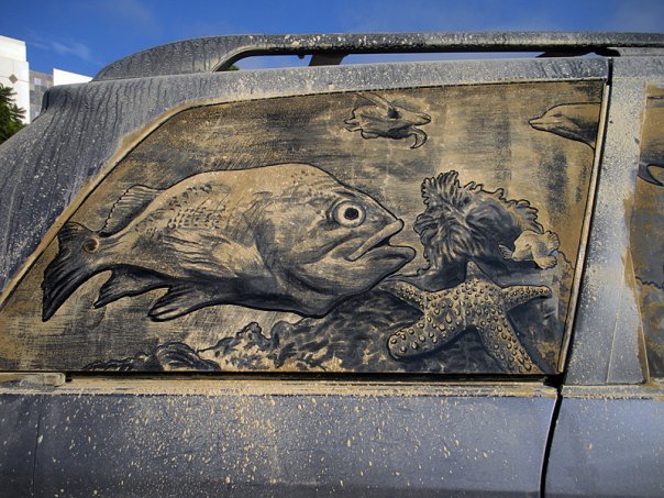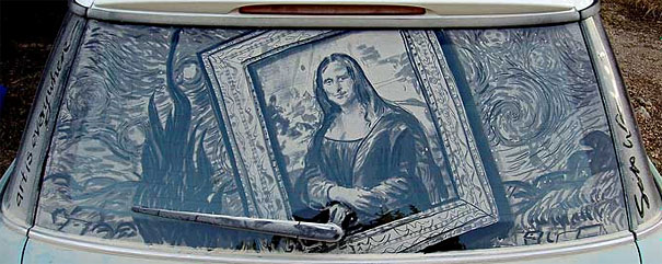 Mākslinieks Skots Veids netīru mašīnu stiklus pārvērš īstos mākslas darbos.