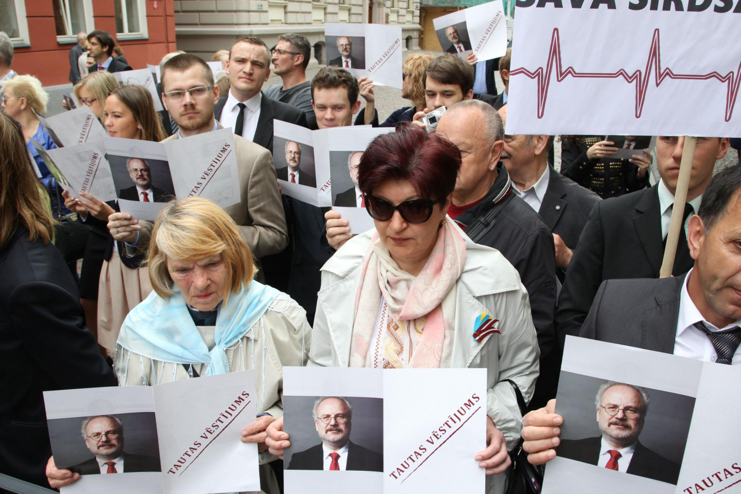 Valsts prezidenta vēlēšanu dienā, pie Saeimas notikušajā piketā aptuveni 50 cilvēku pauduši atbalstu Eiropas Savienības Tiesas tiesneša Egila Levita kandidatūrai.