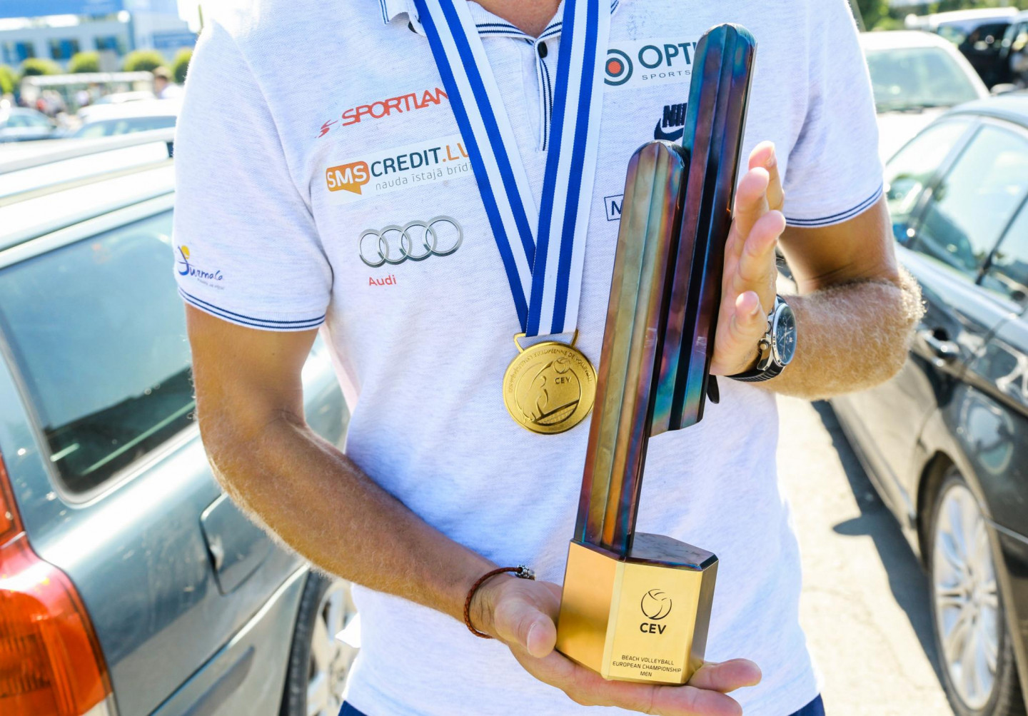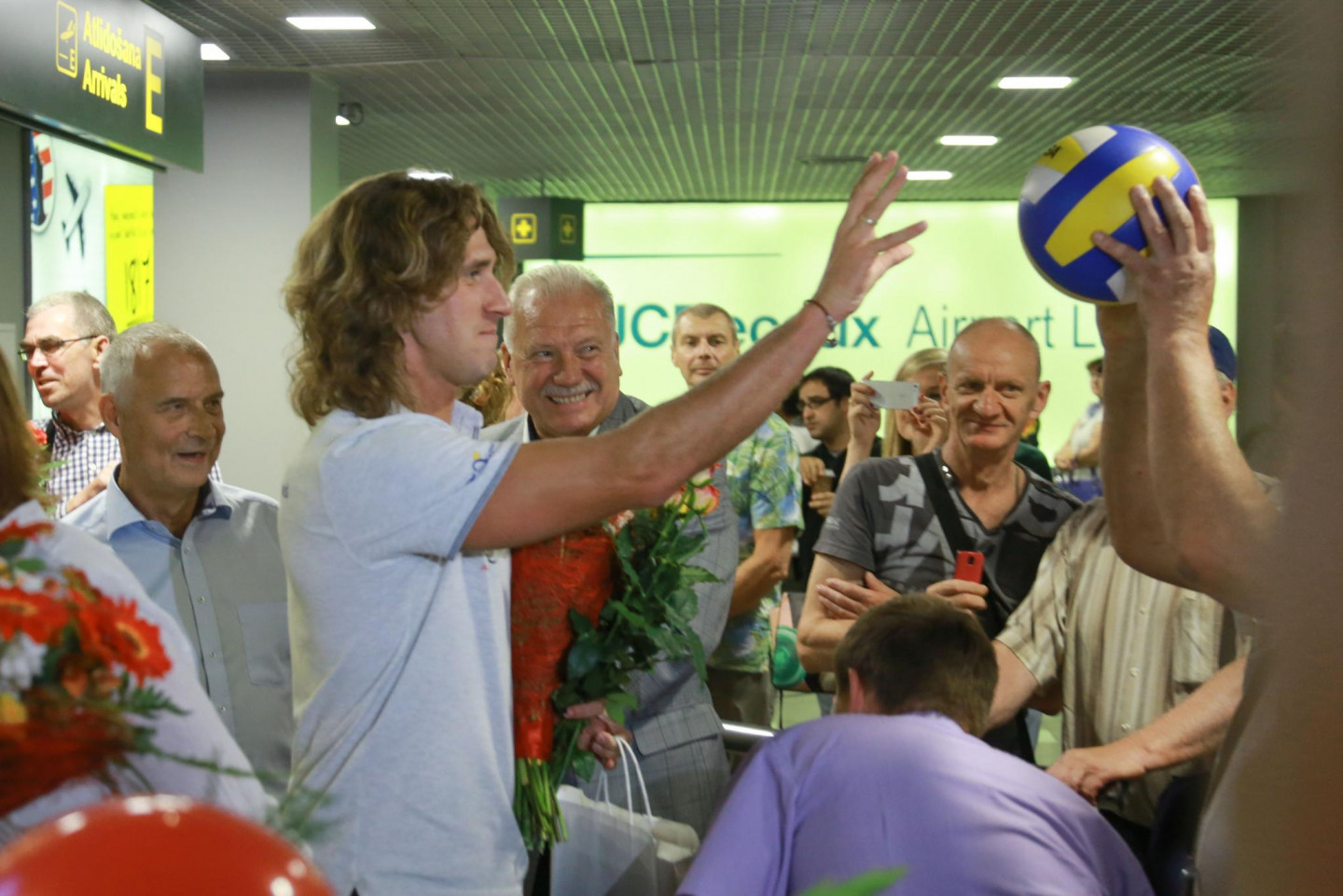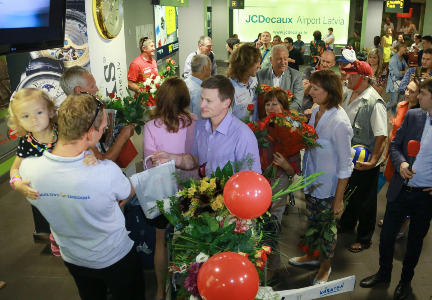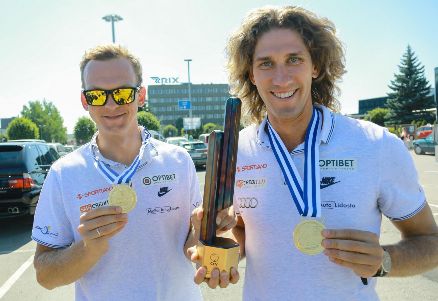 Pēc veiksmīgi aizvadītā Eiropas čempionāta pludmales volejbolā, Latvijā atgriezušies zelta medaļas ieguvēji Aleksandrs Samoilovs un Jānis Šmēdiņš.