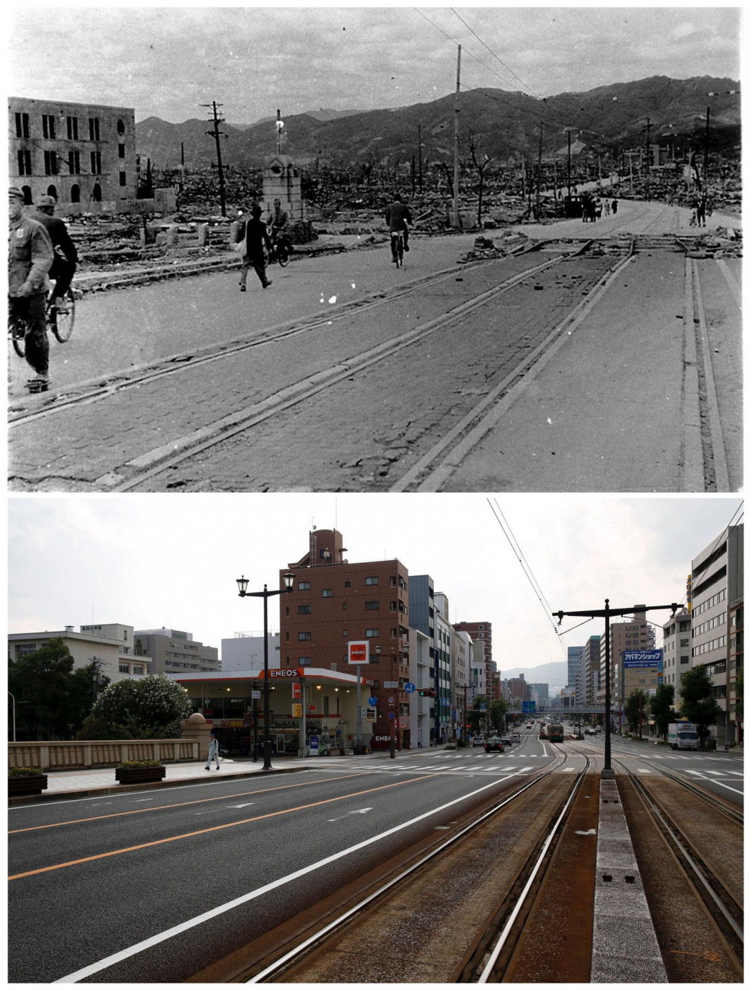 Šogad aprit tieši 70 gadi kopš Hirosimu nopostīja ASV mesta atombumba. Vai izdevies pilsētu atjaunot? To ārvalstu mediji noskaidrojuši uzņemot fotoattēlus ar to, kā šis vietas izskatījās pirms 70.gadiem un tagad.