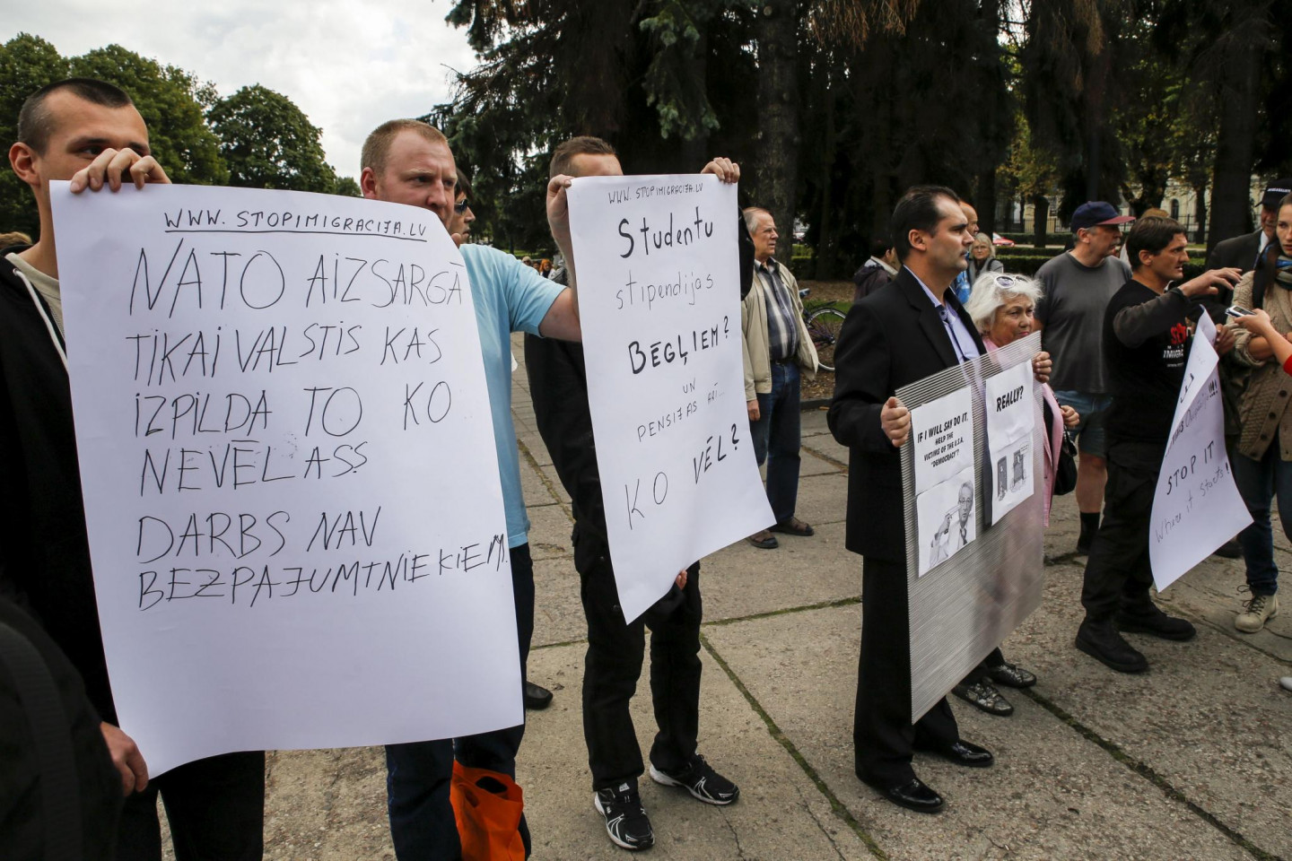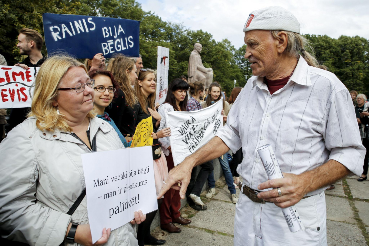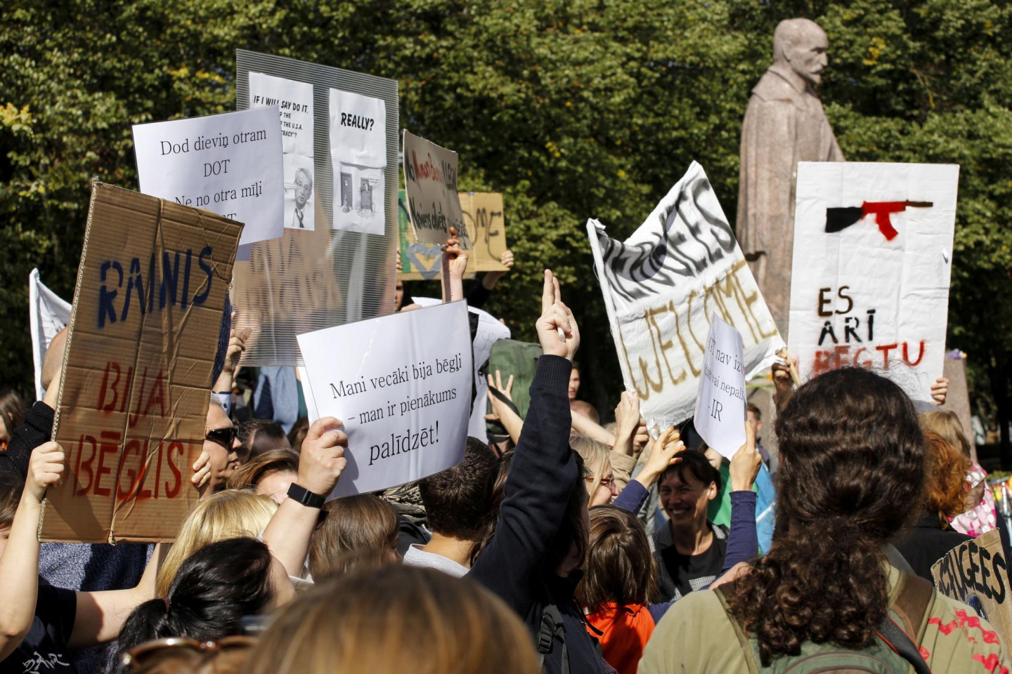 Lai atbalstītu bēgļu uzņemšanu Latvijā un solidarizētos ar bēgļiem, kuri cenšas nokļūt Eiropā, Esplanādē pie Raiņa pieminekļa notiekošais pikets pulcējis aptuveni 80 cilvēkus.