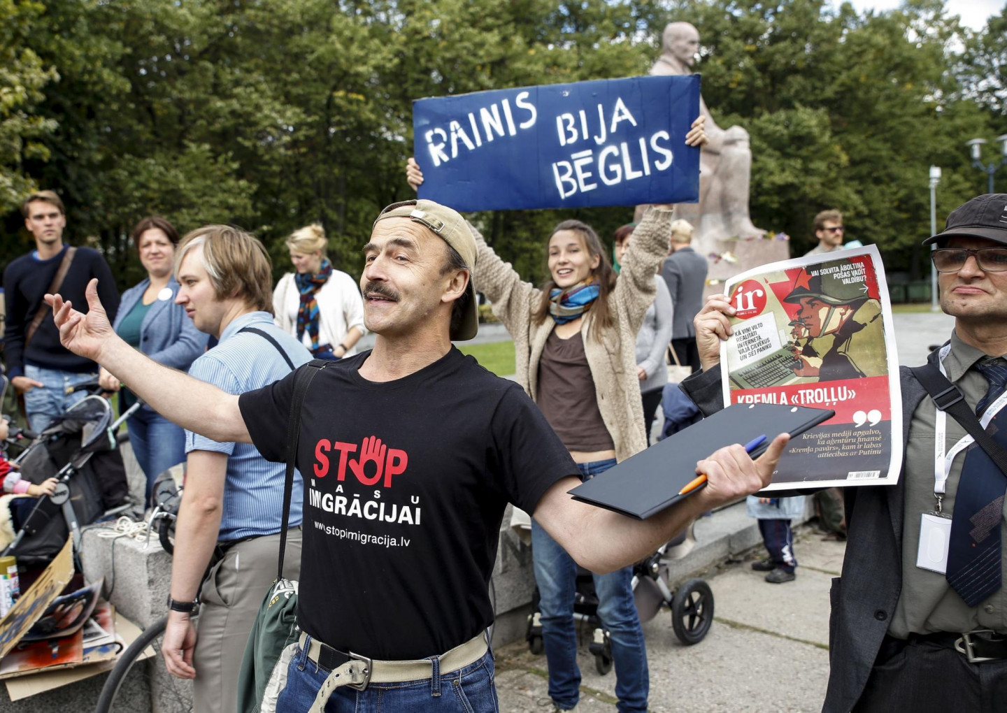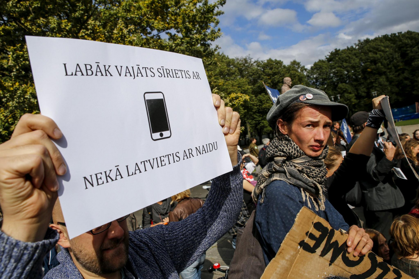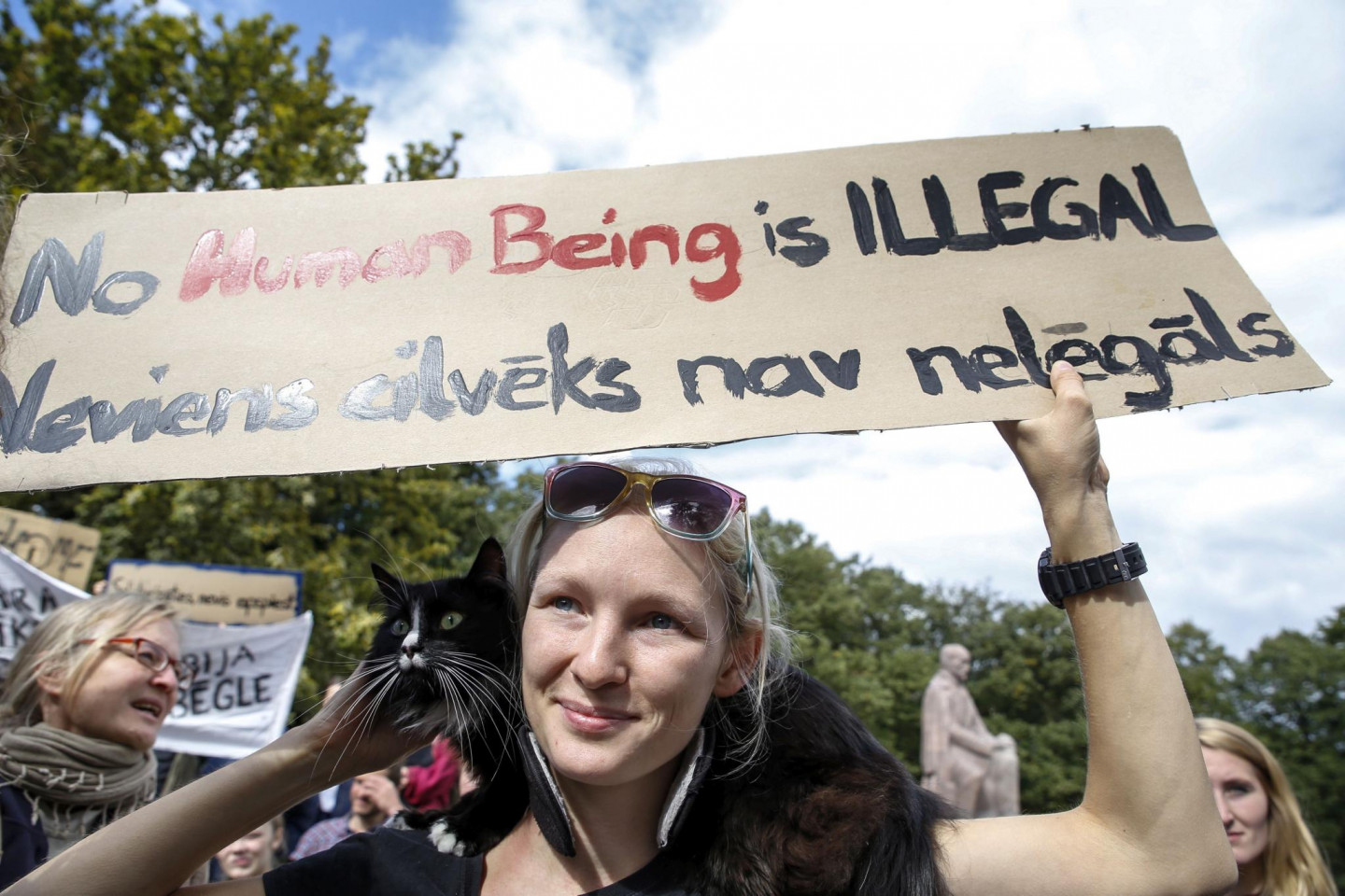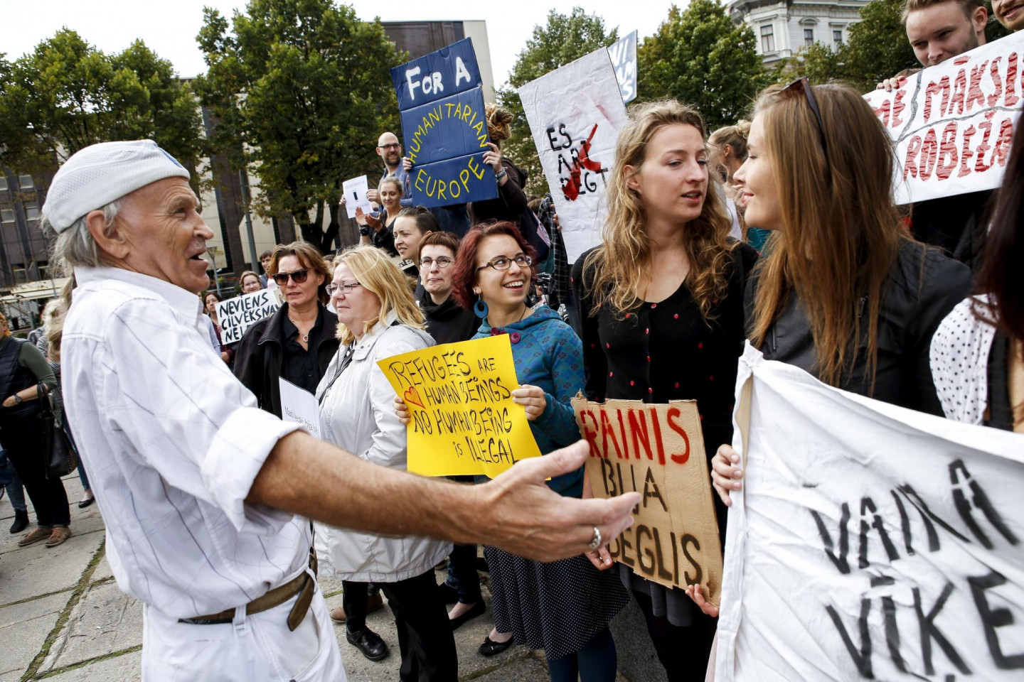 Lai atbalstītu bēgļu uzņemšanu Latvijā un solidarizētos ar bēgļiem, kuri cenšas nokļūt Eiropā, Esplanādē pie Raiņa pieminekļa notiekošais pikets pulcējis aptuveni 80 cilvēkus.