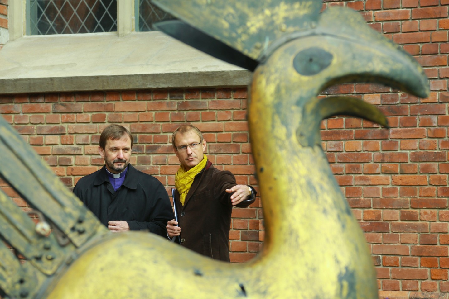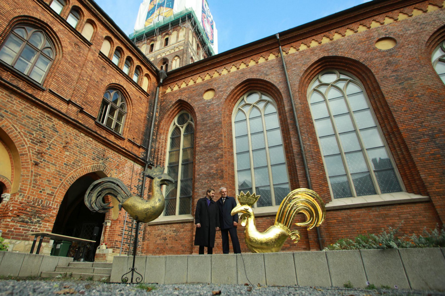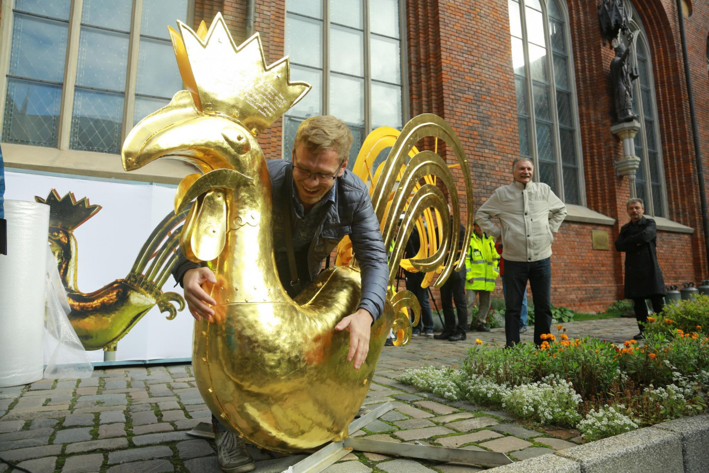 Šodien Rīgas Doma torņa smailē atgriežas gailis un lode, ko alpīnisti 25.augustā nocēla no torņa, lai restauratori varētu veikt abu priekšmetu virsmu attīrīšanu, bojāto vietu speciālo apstrādi un zeltījuma atjaunošanu.