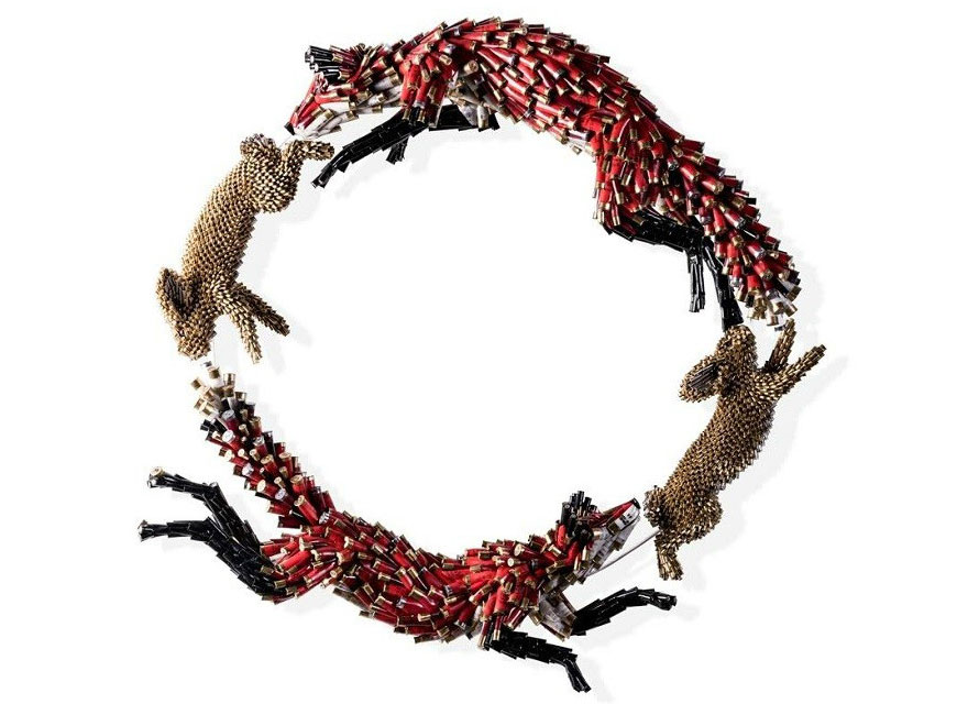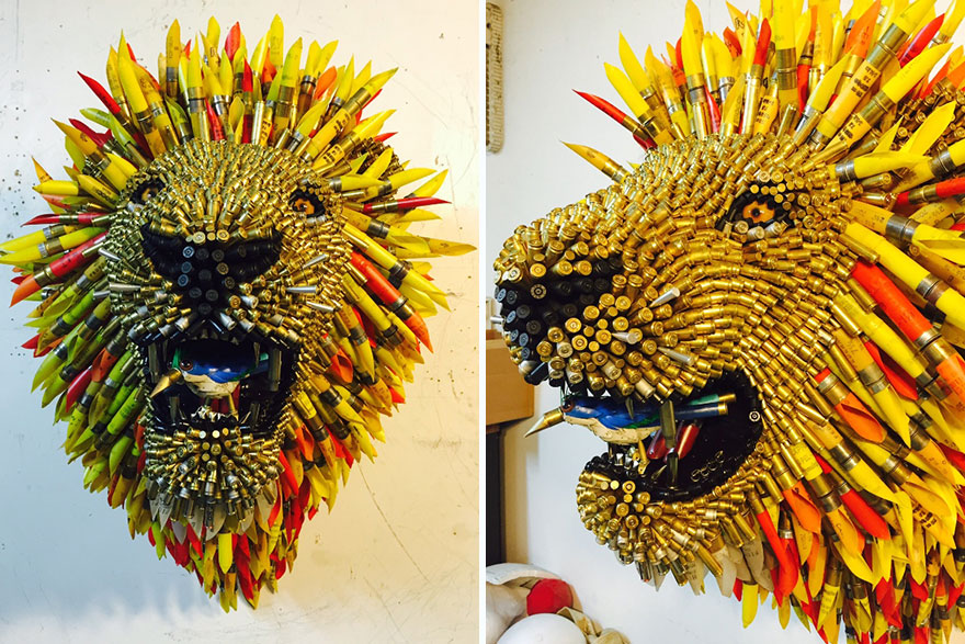 Kolumbiešu mākslinieks Federiko Uribe izveidojis darbu sēriju, kurā dzīvnieku skulptūras un dabas ainavas radītas no ložu čaulām.