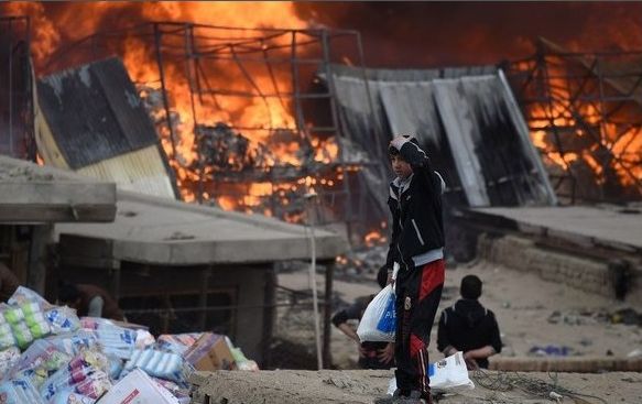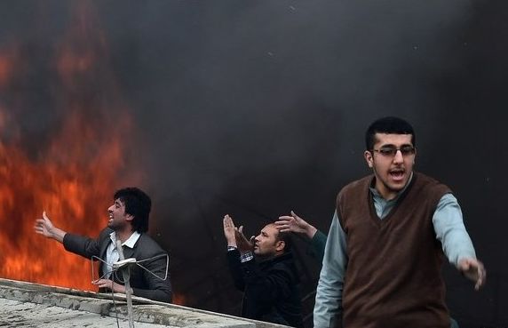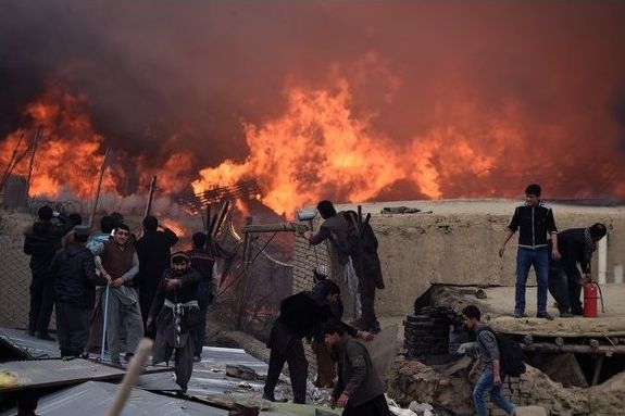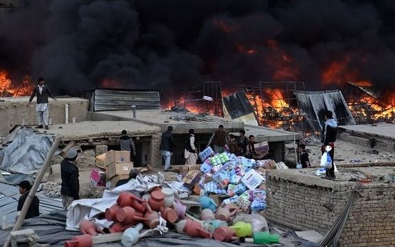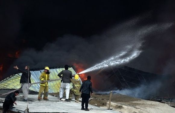 Šodien Kabulas pilsētā Afganistānā izcēlies postošs ugunsgrēks preču noliktavās. Tirgotāji cenšas glābt savu preci.