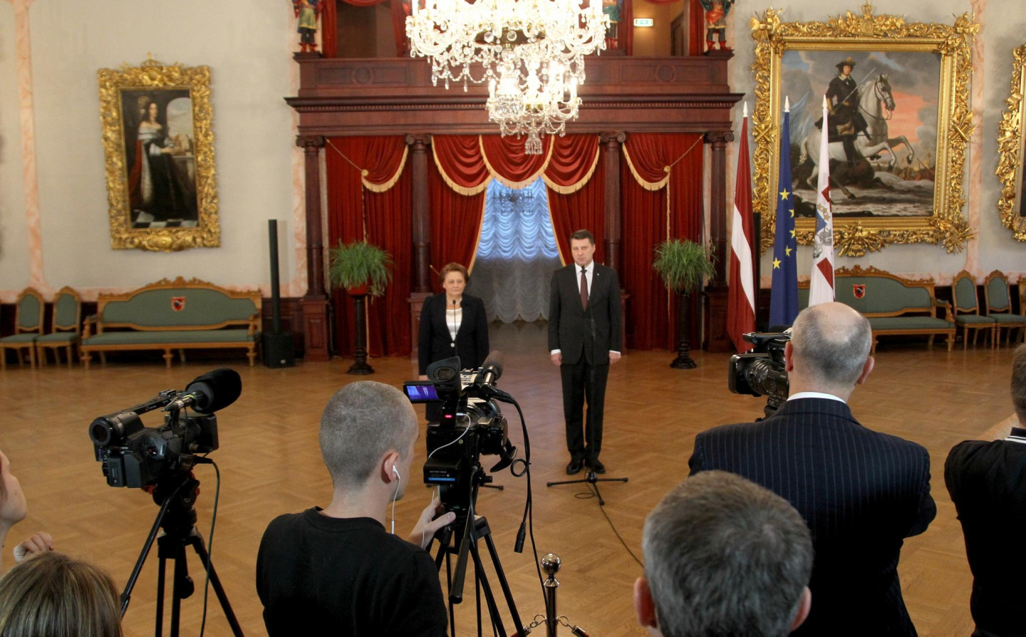 Ministru prezidente Laimdota Straujuma (V) paziņo par atkāpšanos no amata. To Straujuma paziņoja pēc šorīt notikušās tikšanās ar Valsts prezidentu Raimondu Vējoni, kura tika pieteikta tikai šorīt pēc premjerministres iniciatīvas.