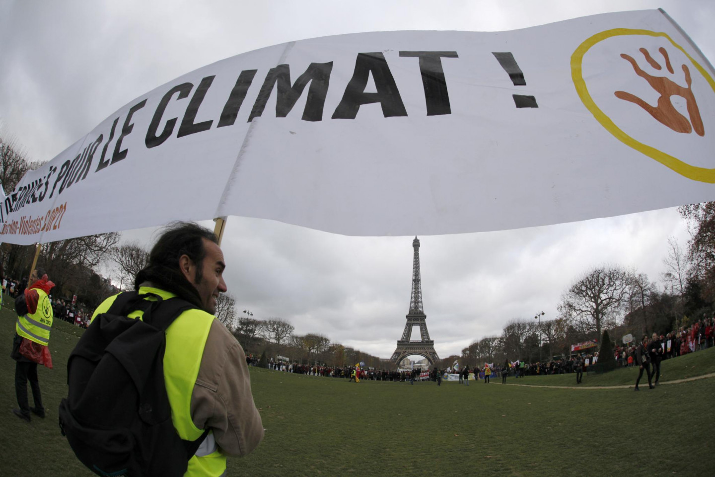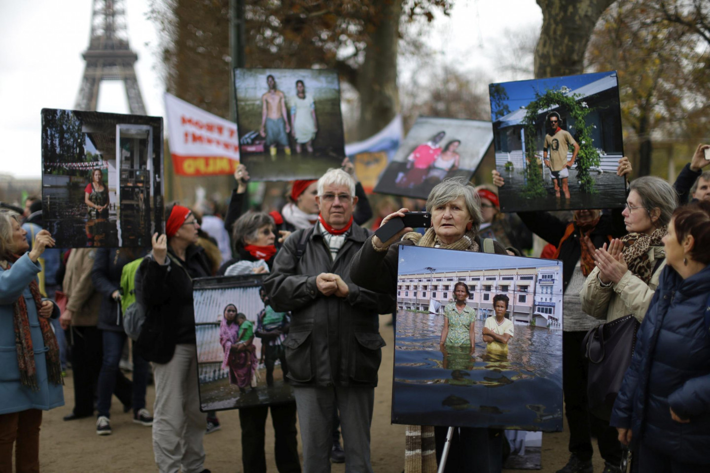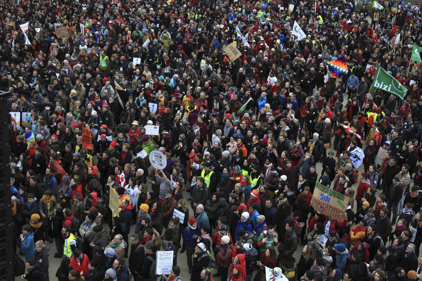 Parīzē netālu no vietas, kur norisinās 21. ANO Klimata konference pulcējušies tūkstošiem cilvēku, lai pausta savu attieksmi pret klimata pārmaiņām pasaulē.