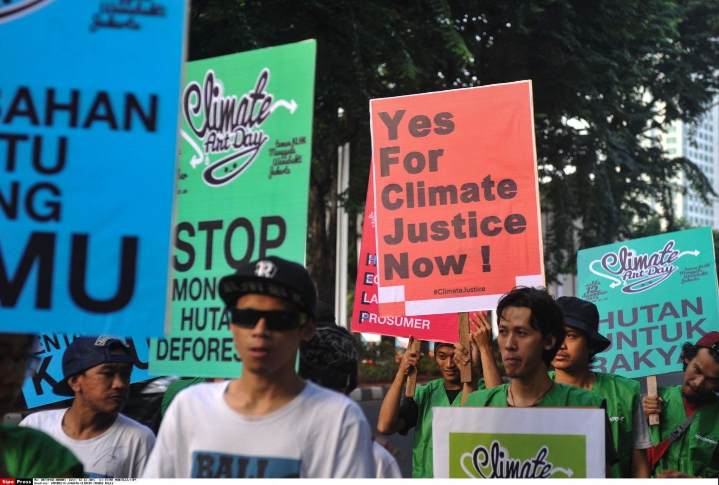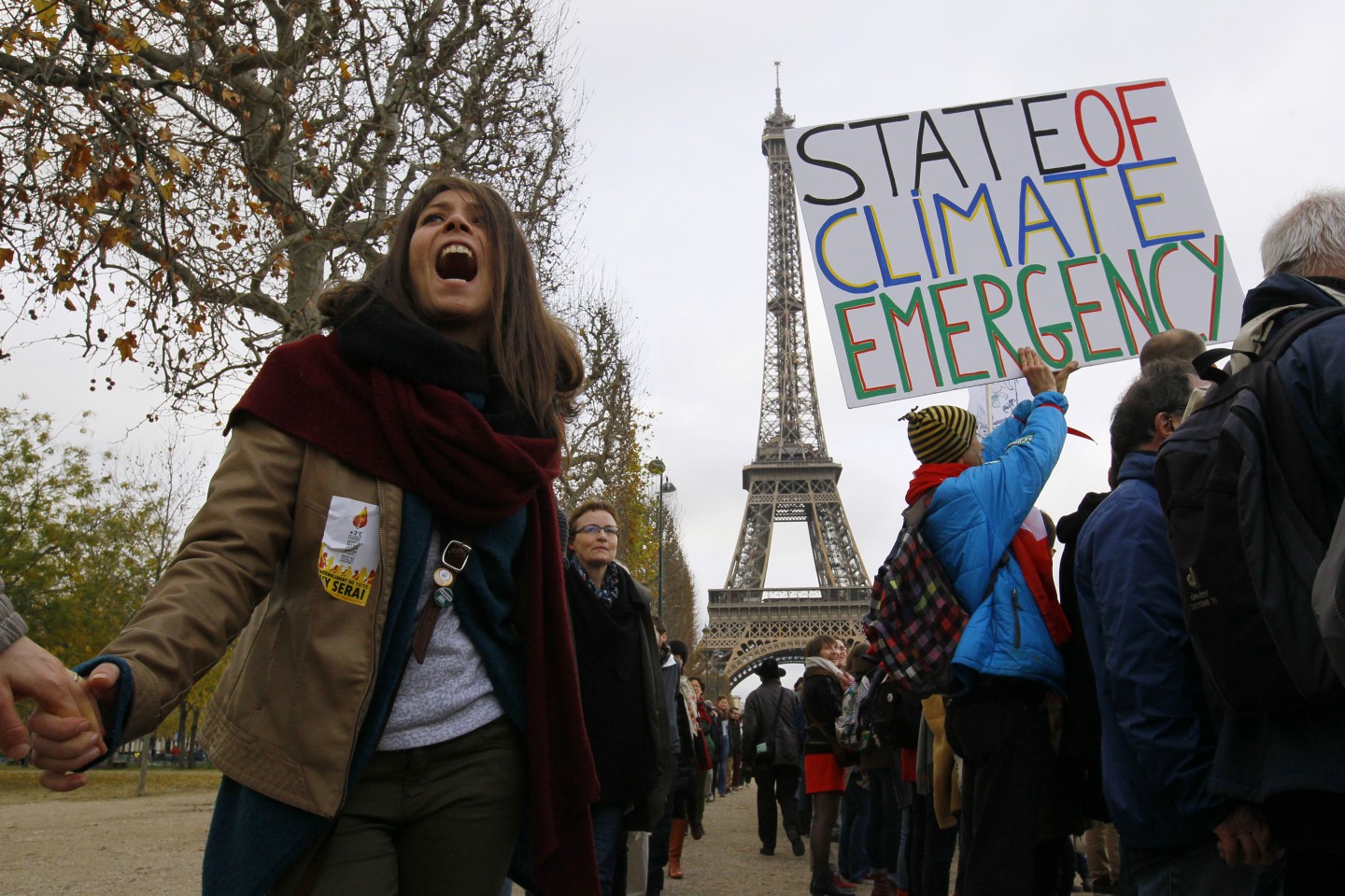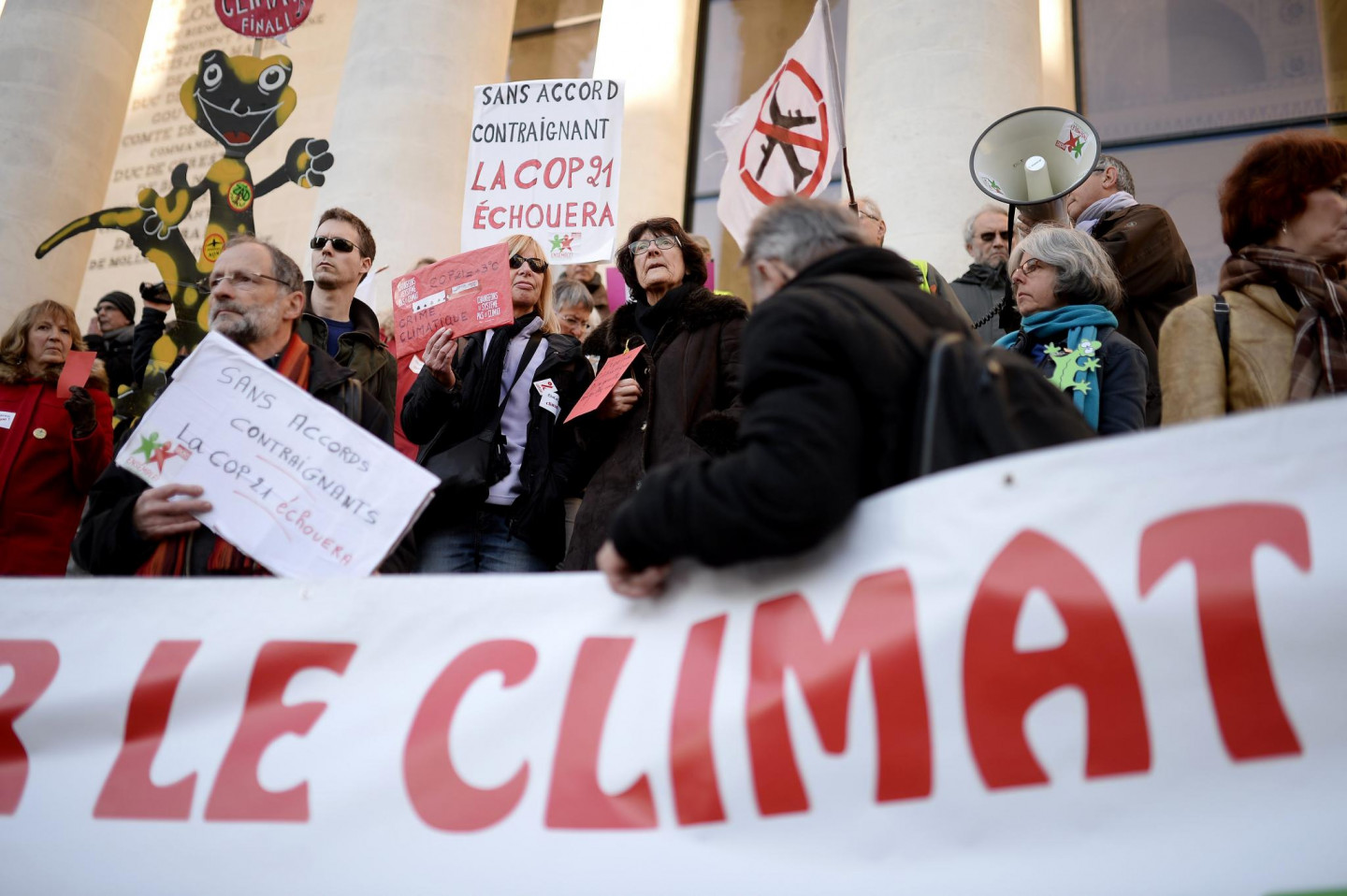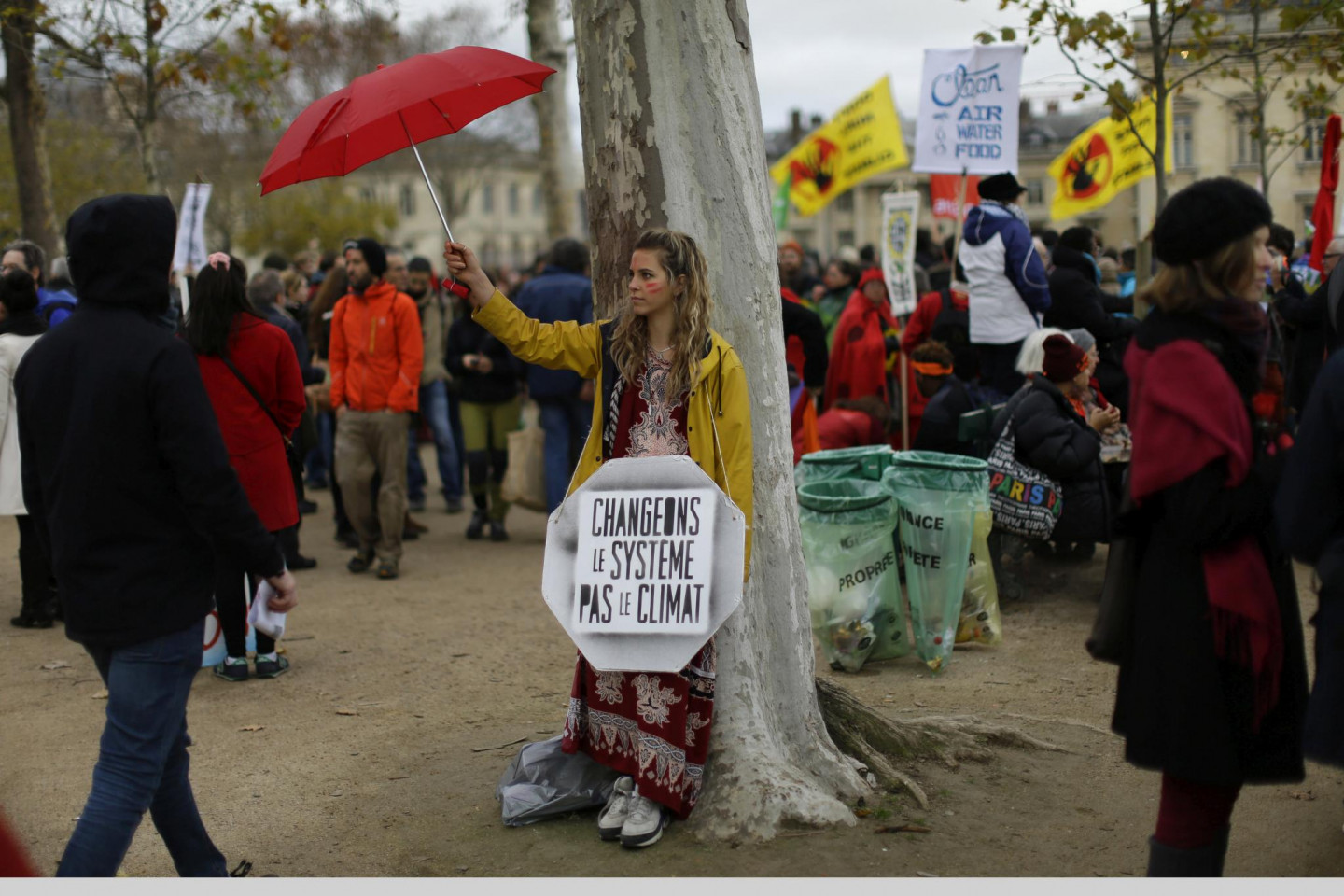 Parīzē netālu no vietas, kur norisinās 21. ANO Klimata konference pulcējušies tūkstošiem cilvēku, lai pausta savu attieksmi pret klimata pārmaiņām pasaulē.