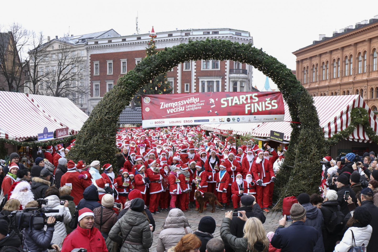 Šodien Doma laukumā gandrīz 700 dalībnieku piedalījās tradicionālajā Ziemassvētku vecīšu labdarības skrējienā, saziedoti 10 000 eiro, aģentūru LETA informēja pasākuma organizatori. Skrējienā piedalījās dažāda gadagājuma cilvēki - gan mazi bērni, gan seniori. Skrējienā devās arī ģimenes ar bērniem ratiņos, bet vairāki dalībnieki skrējienā devās kopā ar saviem četrkājainajiem draugiem. Labdarības skrējiens izraisīja lielu rīdzinieku un pilsētas viesu interesi, novēroja LETA. Pateicoties lielajai atsaucībai, tika saziedoti 10 000 eiro. Kā ziņots, šodien Doma laukumā notika jau astotais Ziemassvētku vecīšu labdarības skrējiens, kurā ar dalības maksu katrs dalībnieks palīdzēja sniegt atbalstu 42 smagi slimu bērnu māmiņu atbalstam - auklīšu dienesta nodrošināšanai.