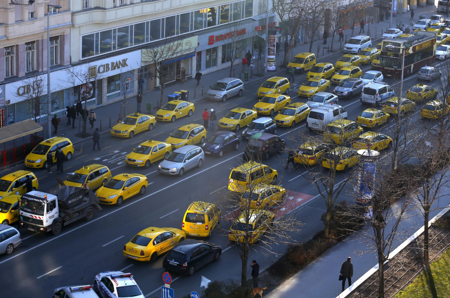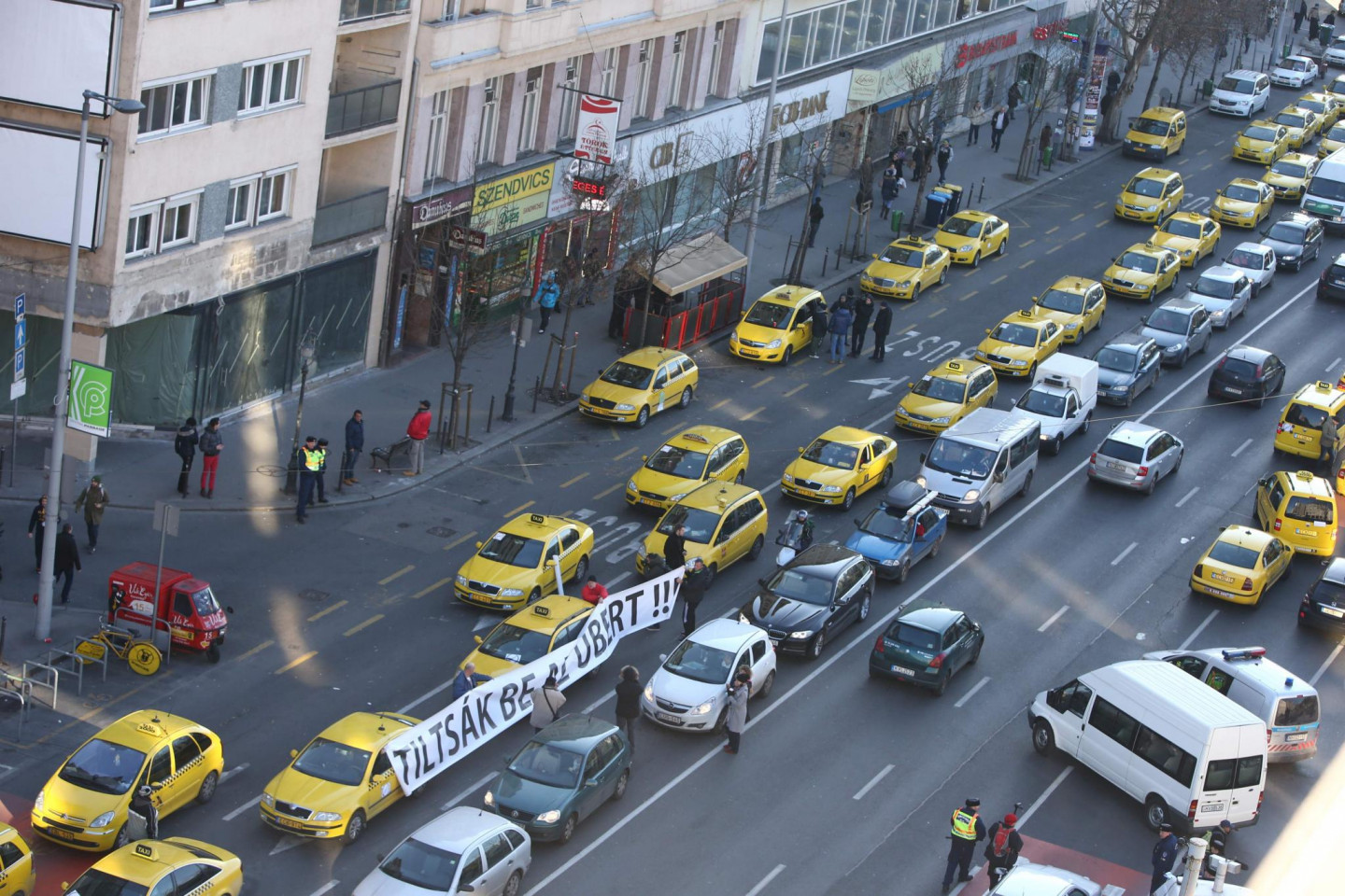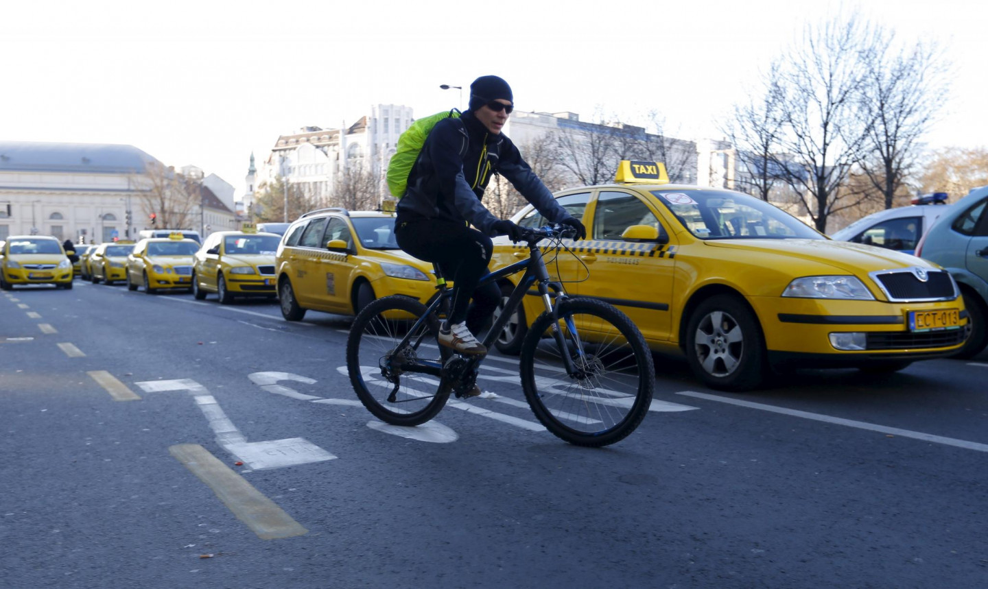 Pirmdien simtiem taksometru šoferi Budapeštā bloķējuši satiksmi, pieprasot Ungārijā aizliegt "Uber" pārvadājumu lietotnes.