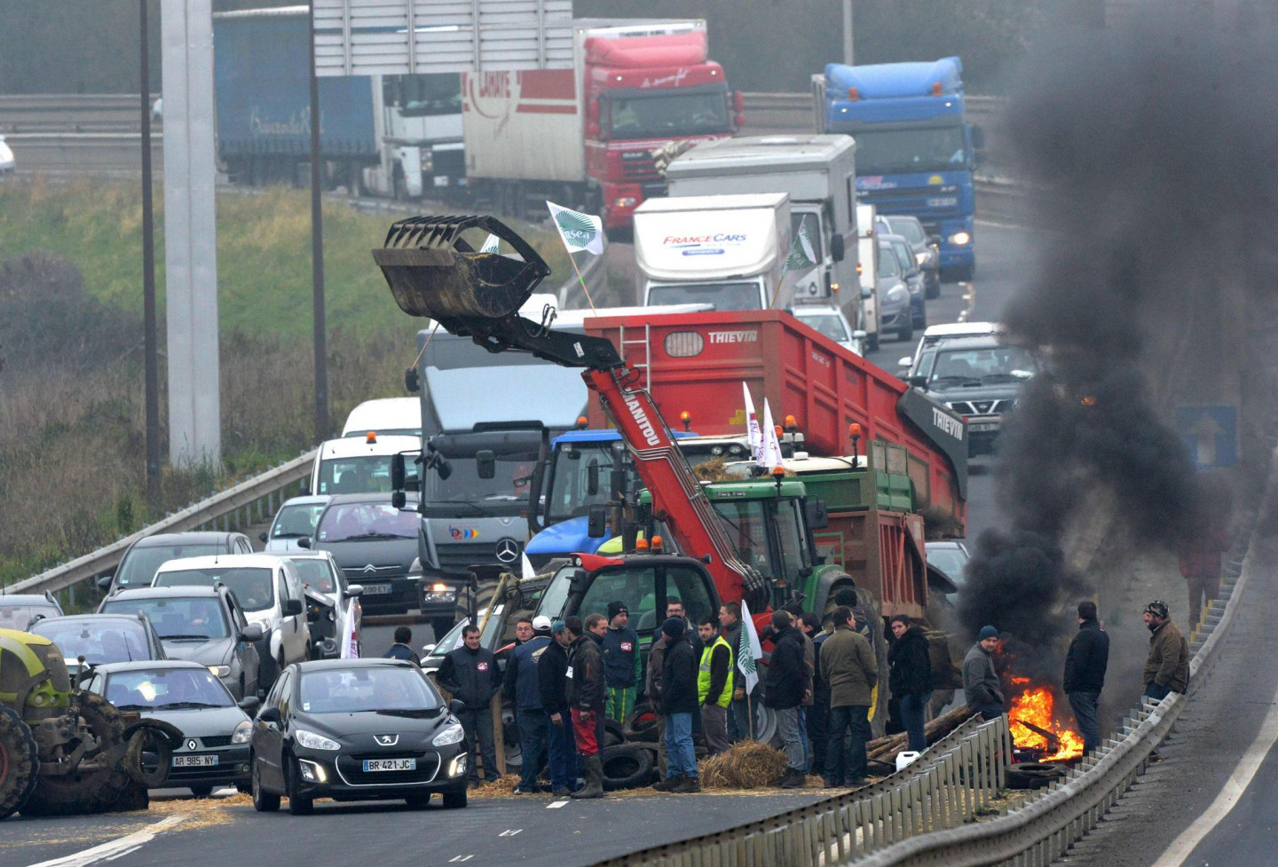 Francijas zemnieki šodien atkal bloķējuši ceļus. Šādā veidā šie cilvēki protestējuši pret cenu politiku šajā nozarē.