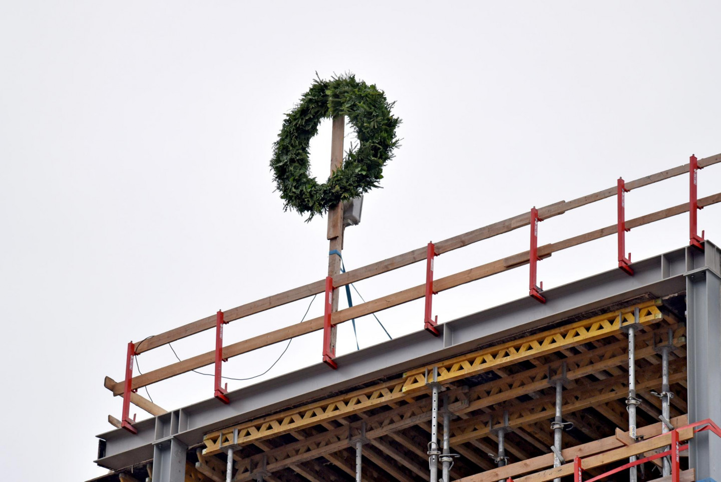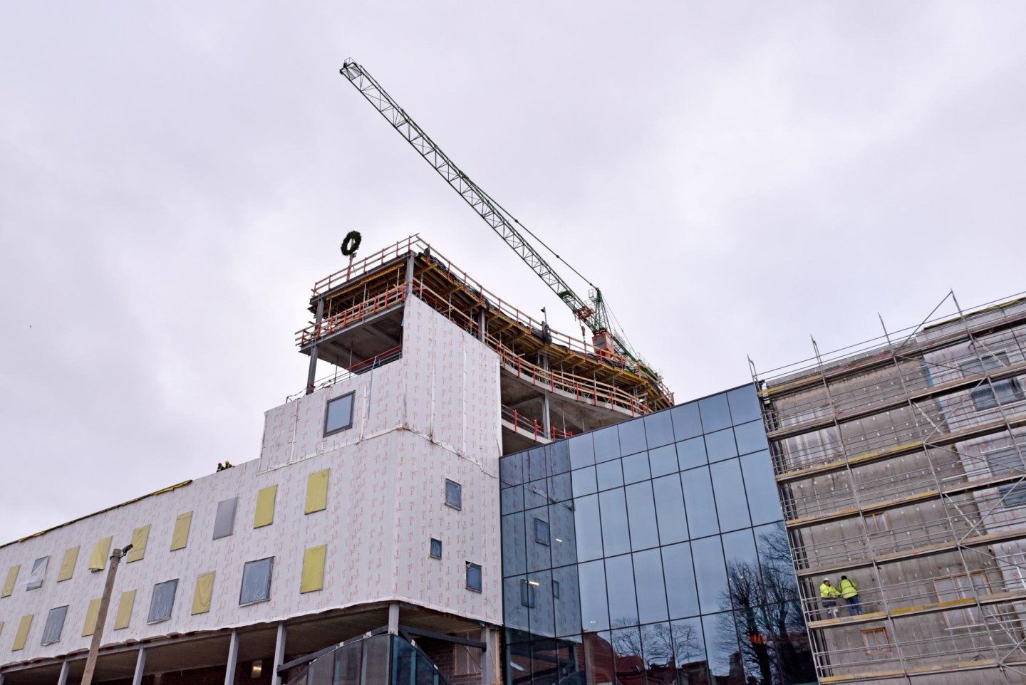 Paula Stradiņa Klīniskās universitātes slimnīcas A korpusa 1. kārtas jaunbūve sasniegusi tās augstāko punktu - 27,7 metru atzīmi. Tāpēc piektdien, 29. janvārī, klātesot veselības ministram Dr. Guntim Belēvičam, projekta pasūtītājam un būvdarbu veicējiem pilnsabiedrībai "SBRE", slimnīcas jaunbūves jumta konstrukcijas rotāja spāru vainags.