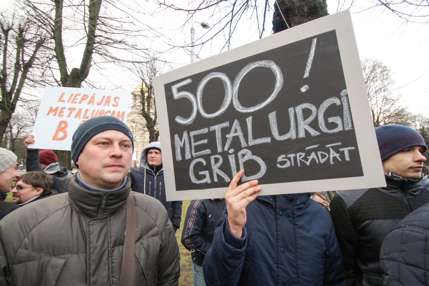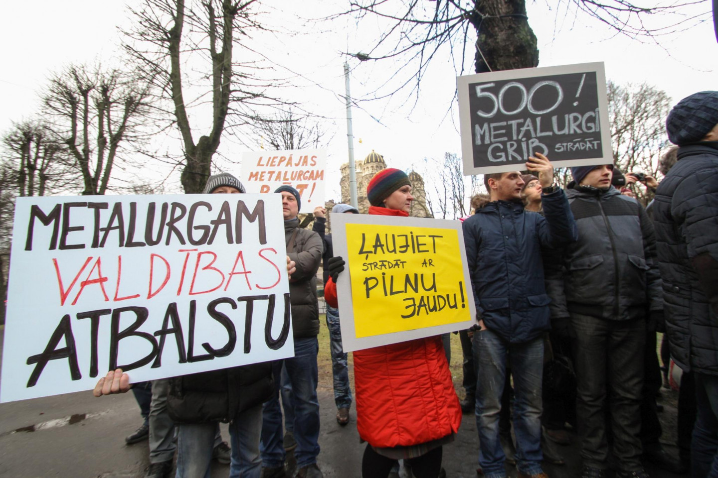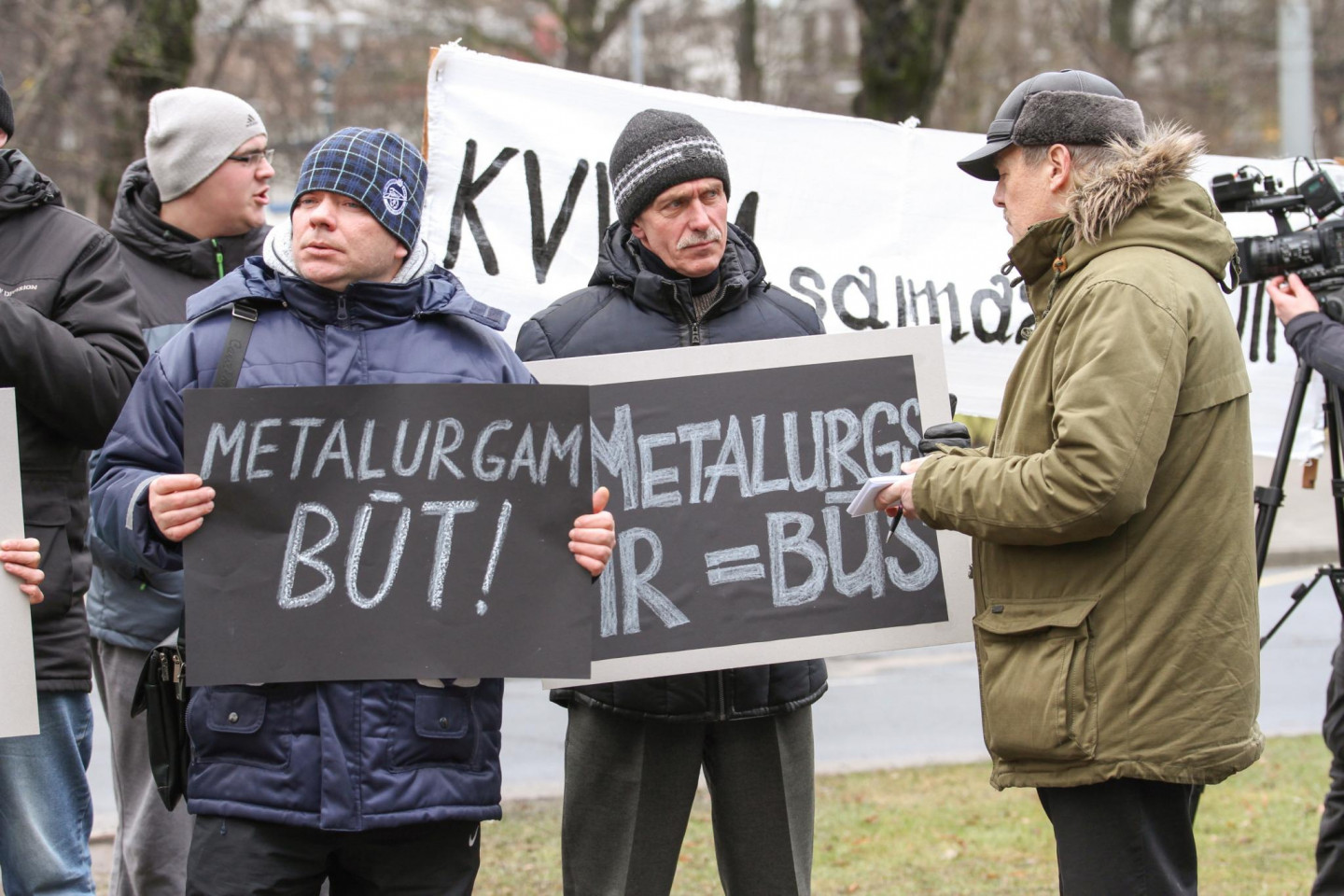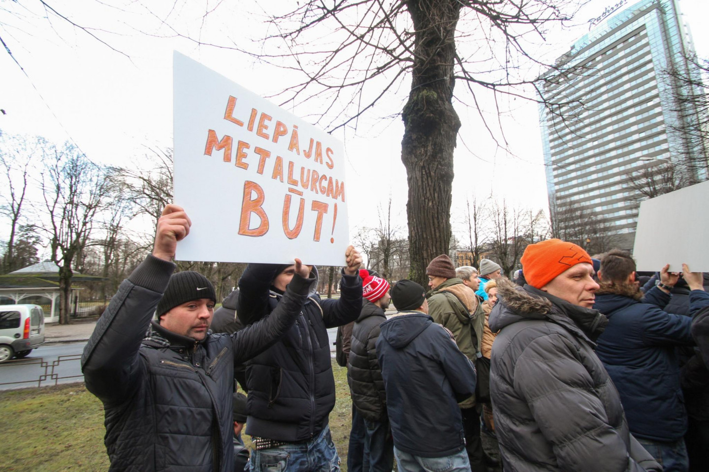 odien piketā pie Ministru kabineta piedalās aptuveni 50 AS "KVV Liepājas metalurgs" darbinieki, kuru galvenā prasība valdībai ir sniegt atbalstu un nepieļaut uzņēmuma slēgšanu.