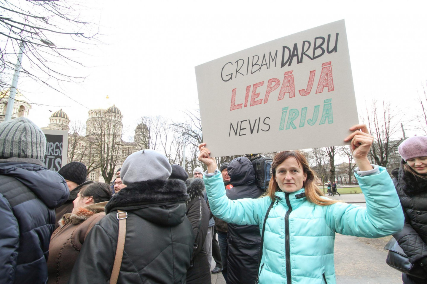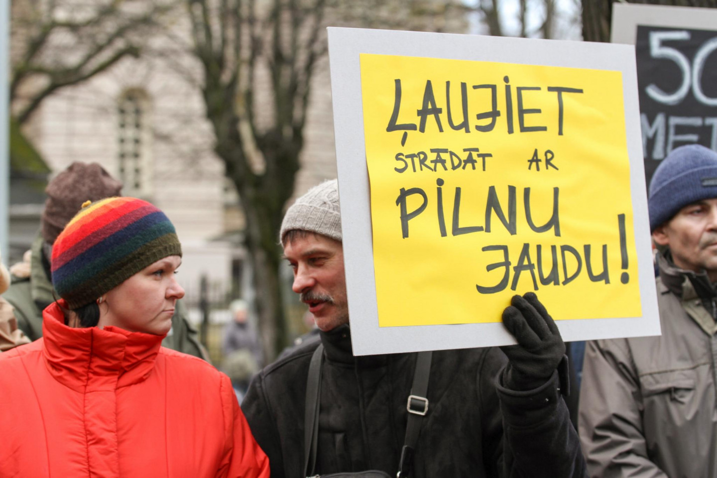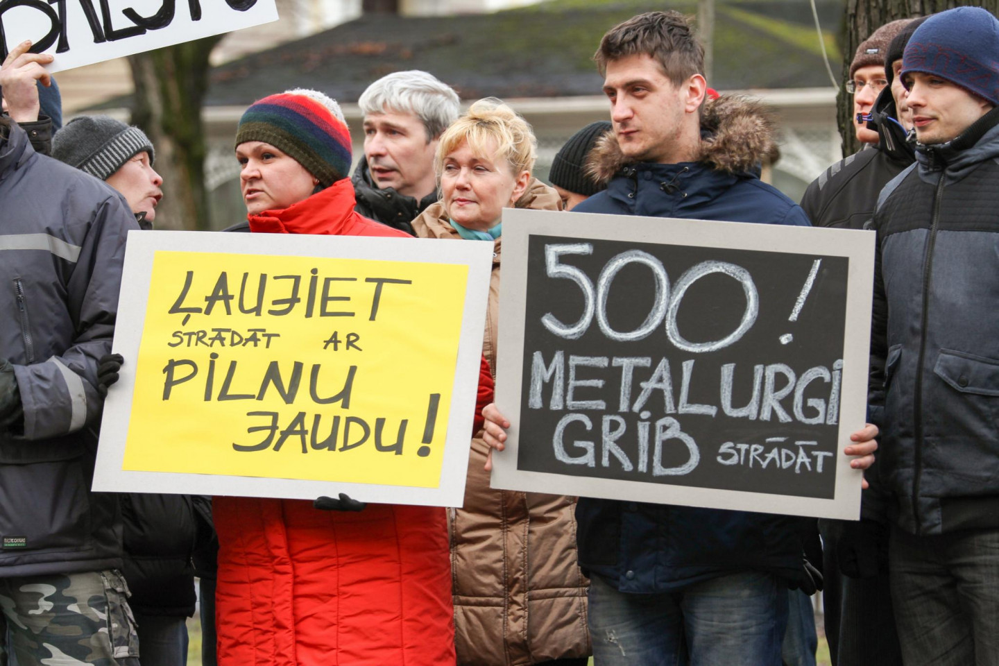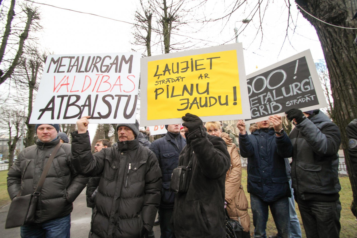 odien piketā pie Ministru kabineta piedalās aptuveni 50 AS "KVV Liepājas metalurgs" darbinieki, kuru galvenā prasība valdībai ir sniegt atbalstu un nepieļaut uzņēmuma slēgšanu.