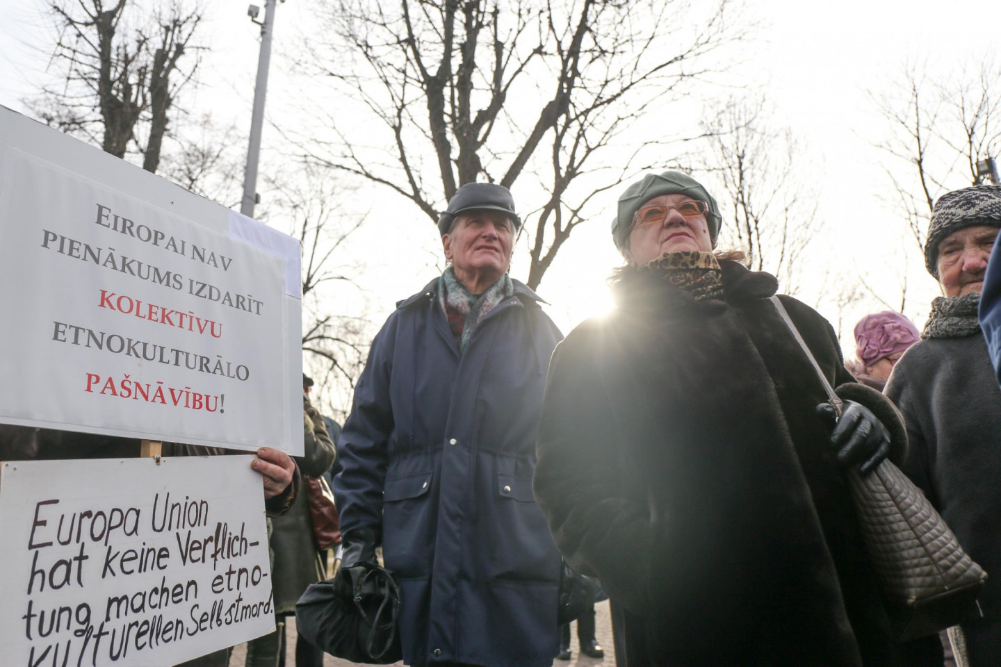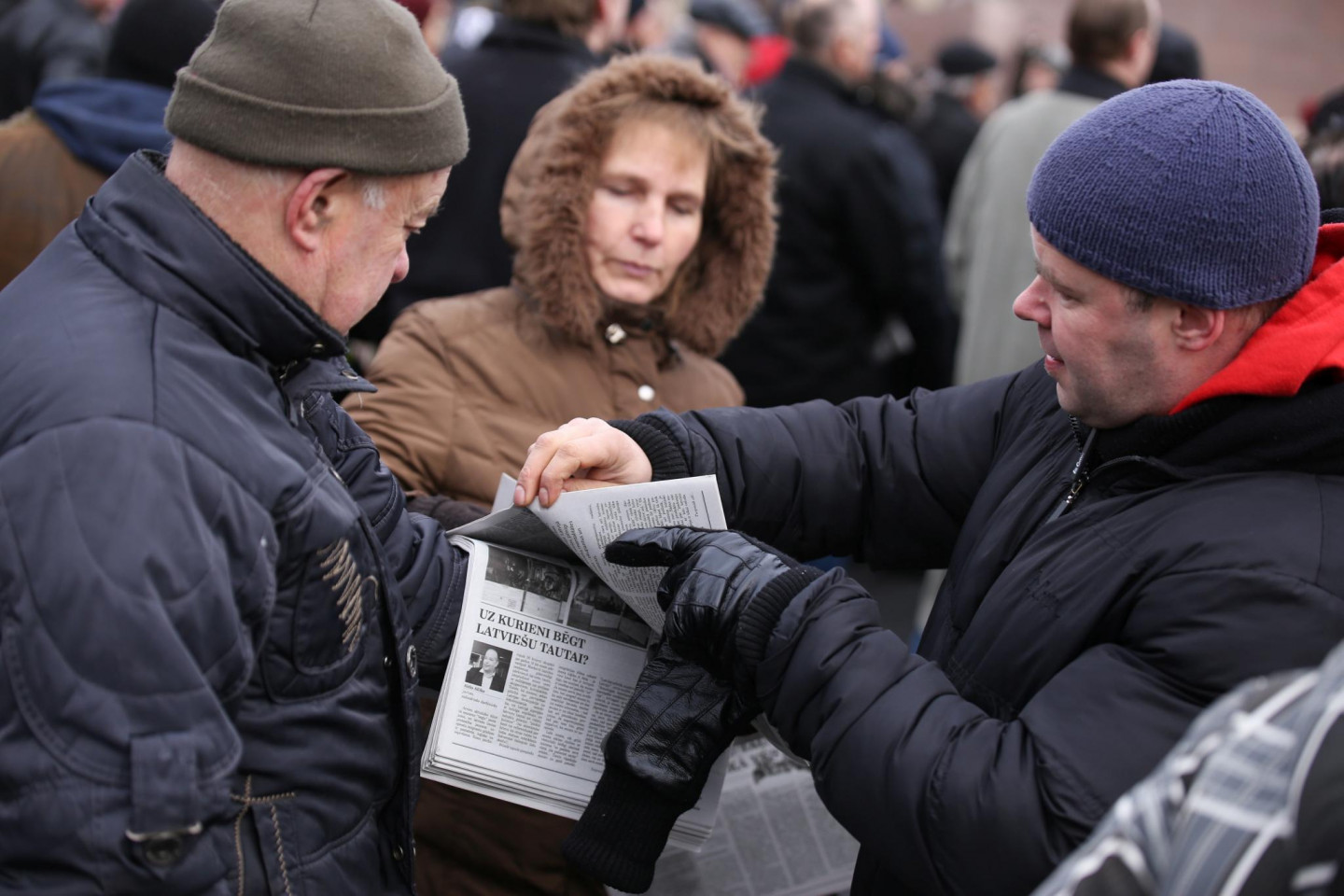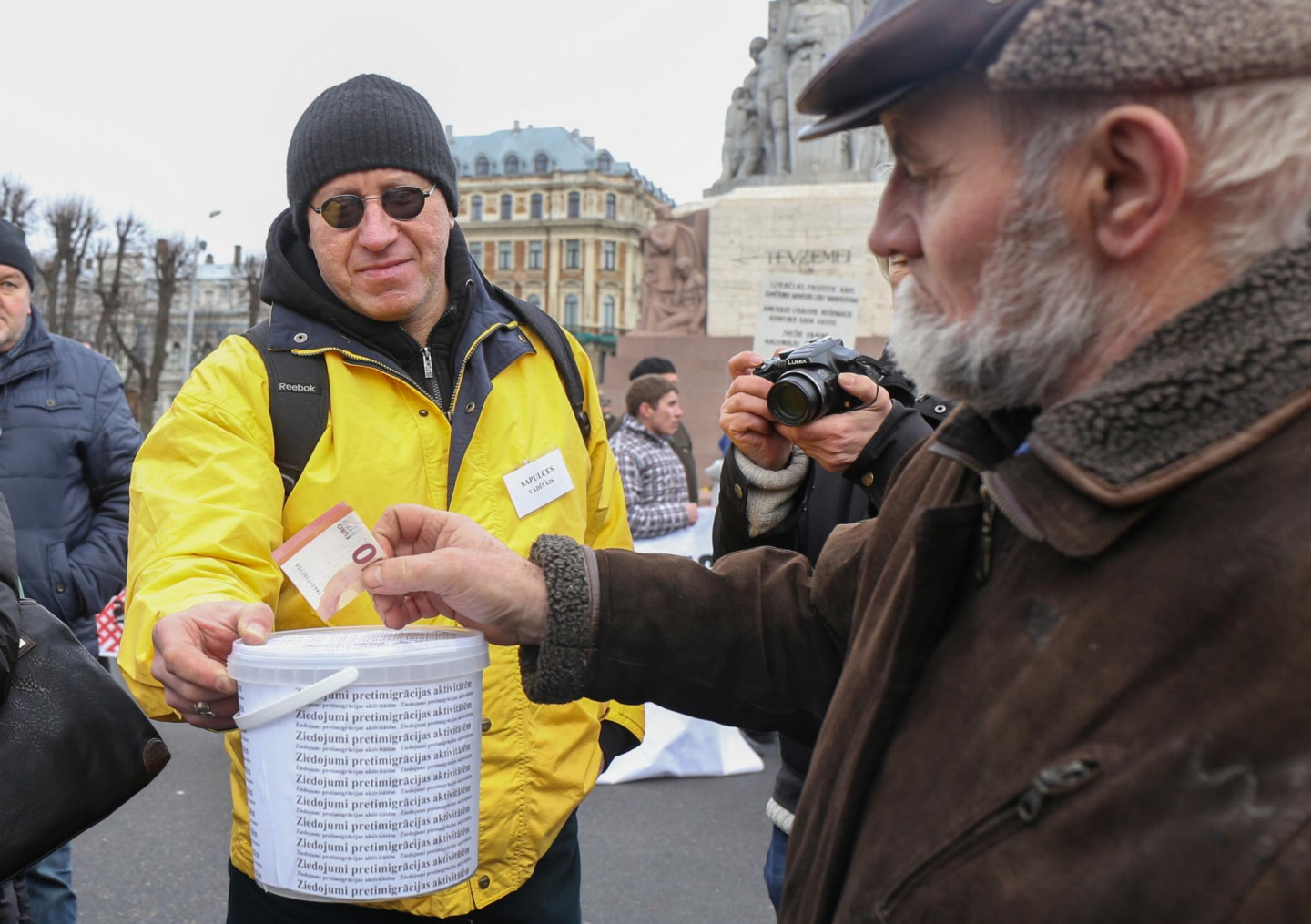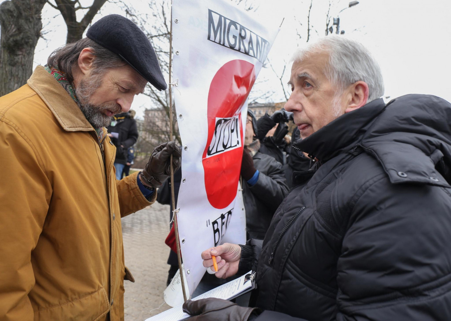 Šodien pie Brīvības pieminekļa Rīgā pulcējās aptuveni 200 cilvēki, kuri piedalījās protestā "pret masu imigrāciju".