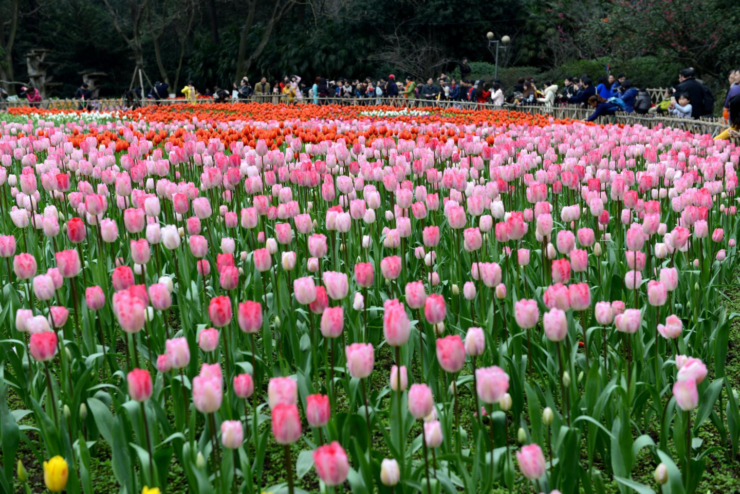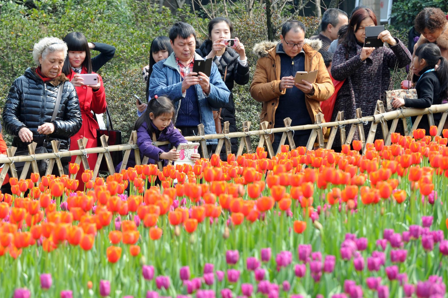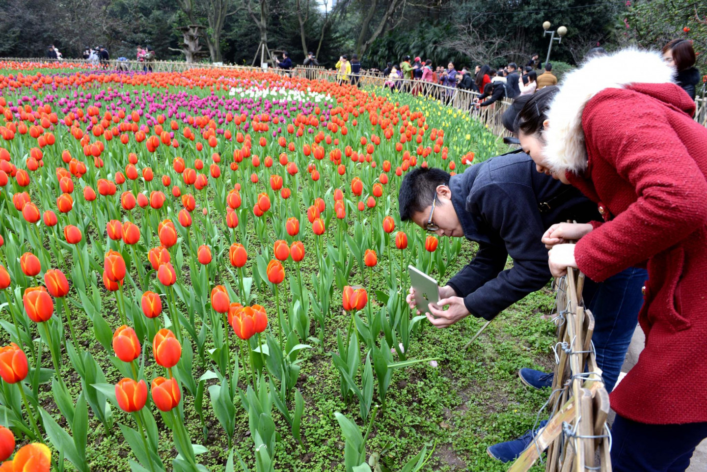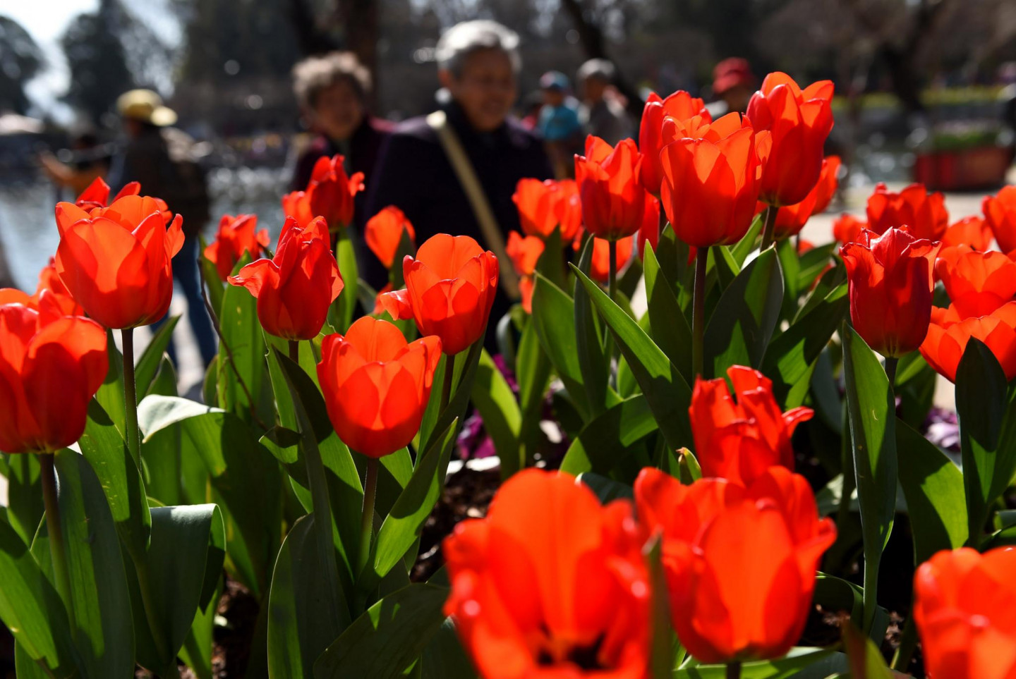 Kādā ziedu parkā Ķīnā uzziedējušas miljoniem krāsainais tulpes, kas priecē garāmgājējus, kuri uz ziedu fona uzņem fotoattēlus.