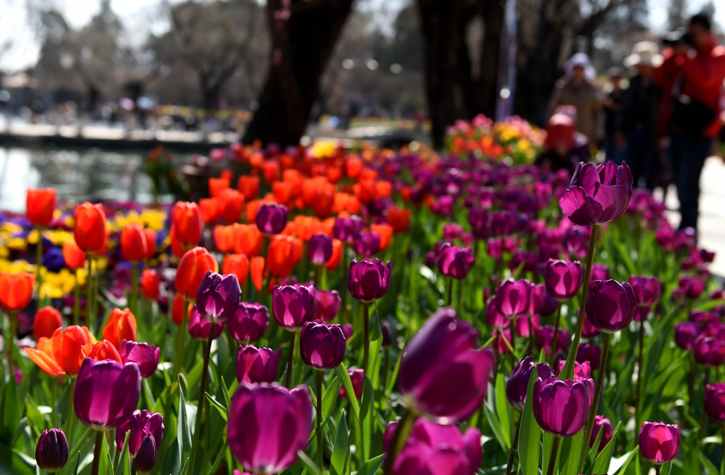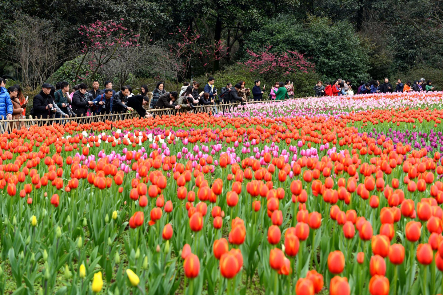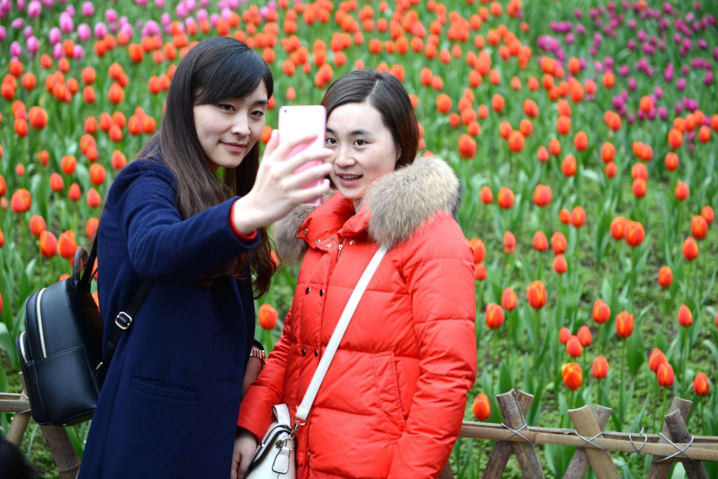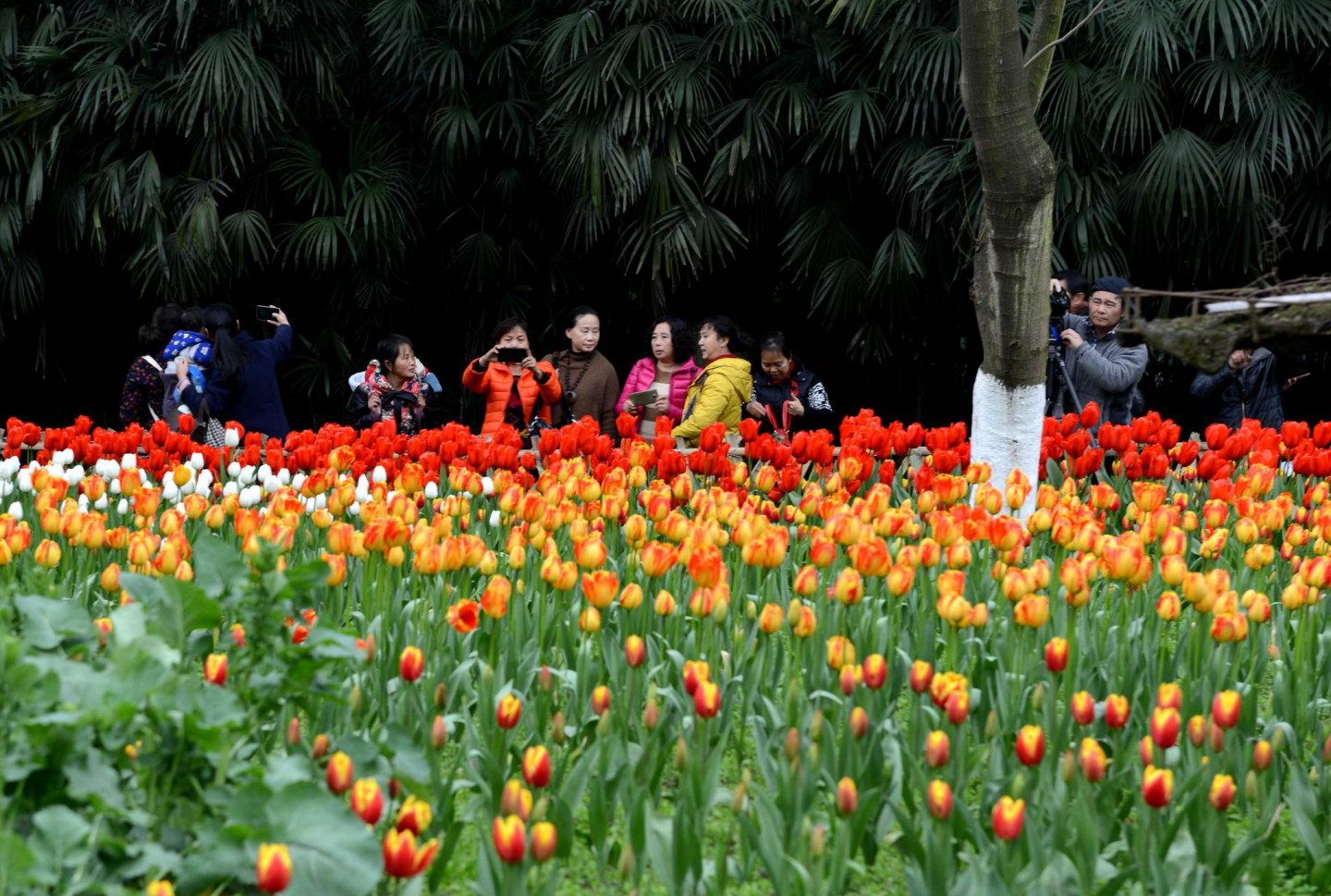 Kādā ziedu parkā Ķīnā uzziedējušas miljoniem krāsainais tulpes, kas priecē garāmgājējus, kuri uz ziedu fona uzņem fotoattēlus.
