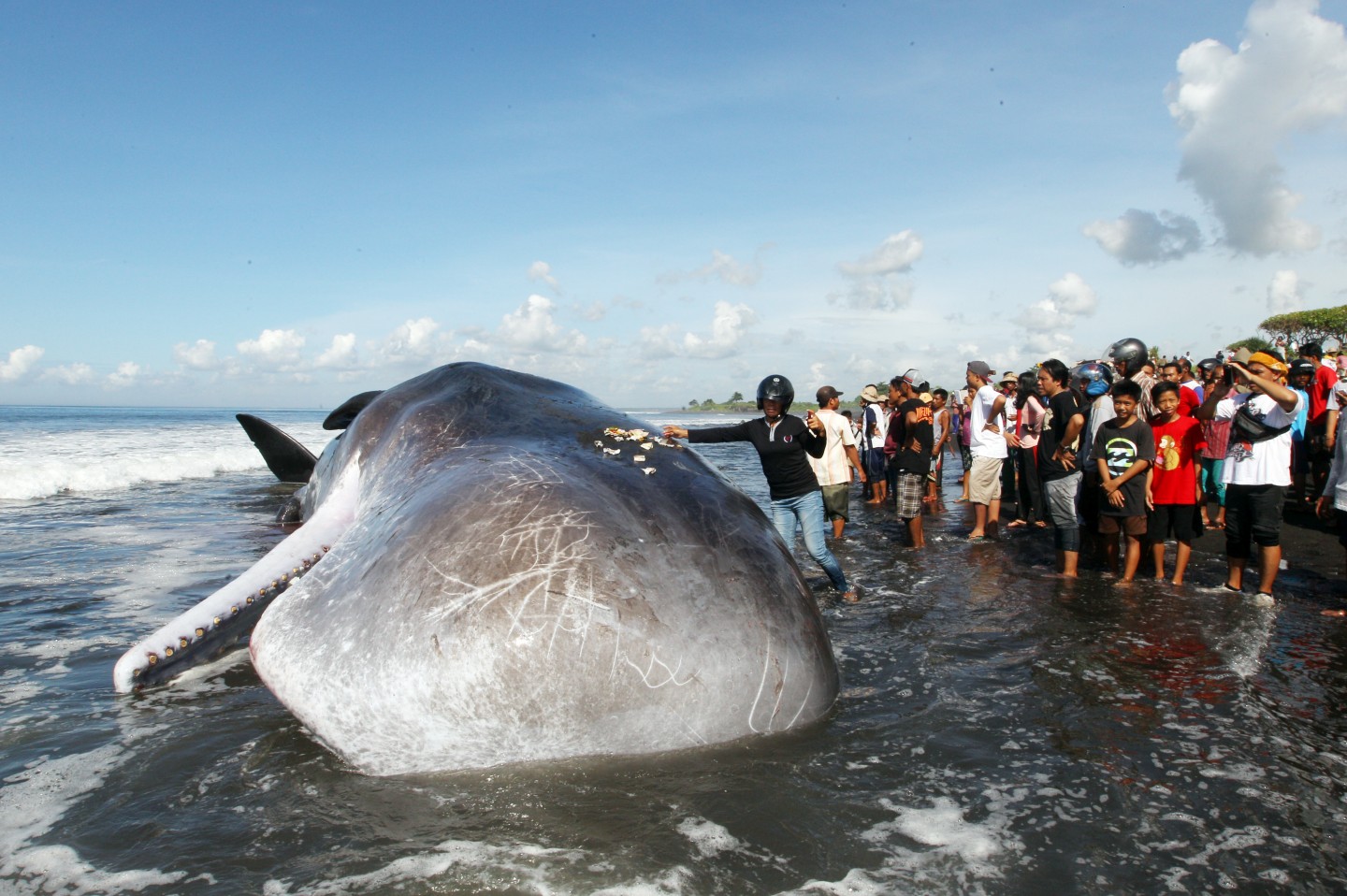 Indonēzijā, Bali, pirmdien krastā izskalots milzīgs kašalots. Pagaidām nav informācijas, kāpēc tas noticis.
