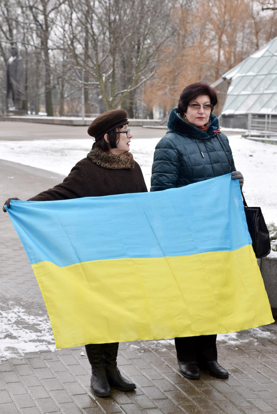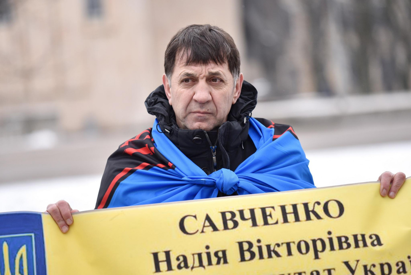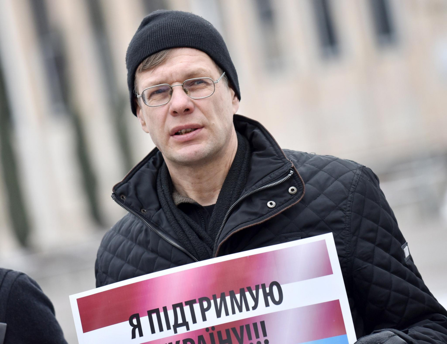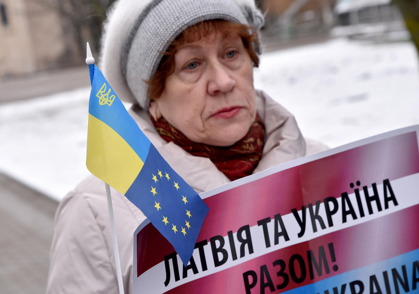 Ap 20 cilvēku iepretim Krievijas vēstniecībai šodien pauda atbalstu ukraiņu pilotei Nadijai Savčenko.