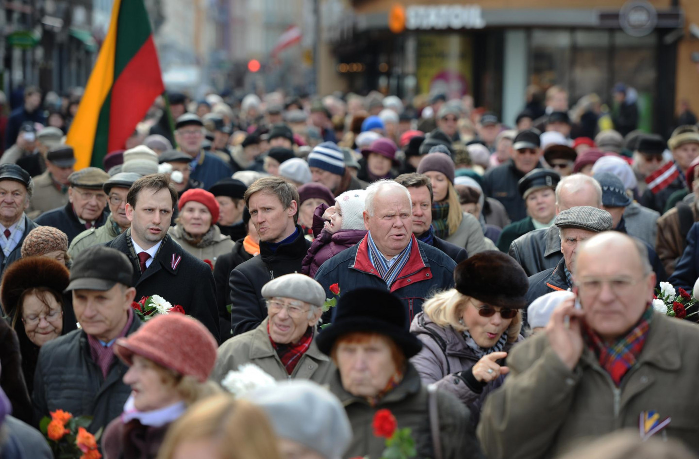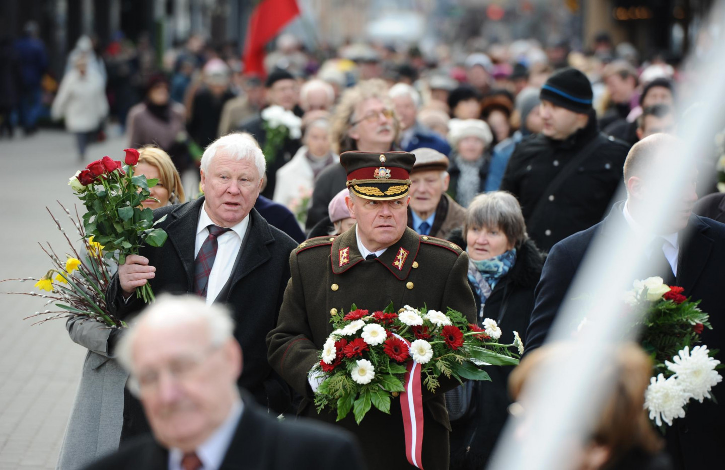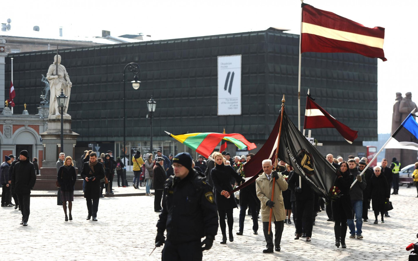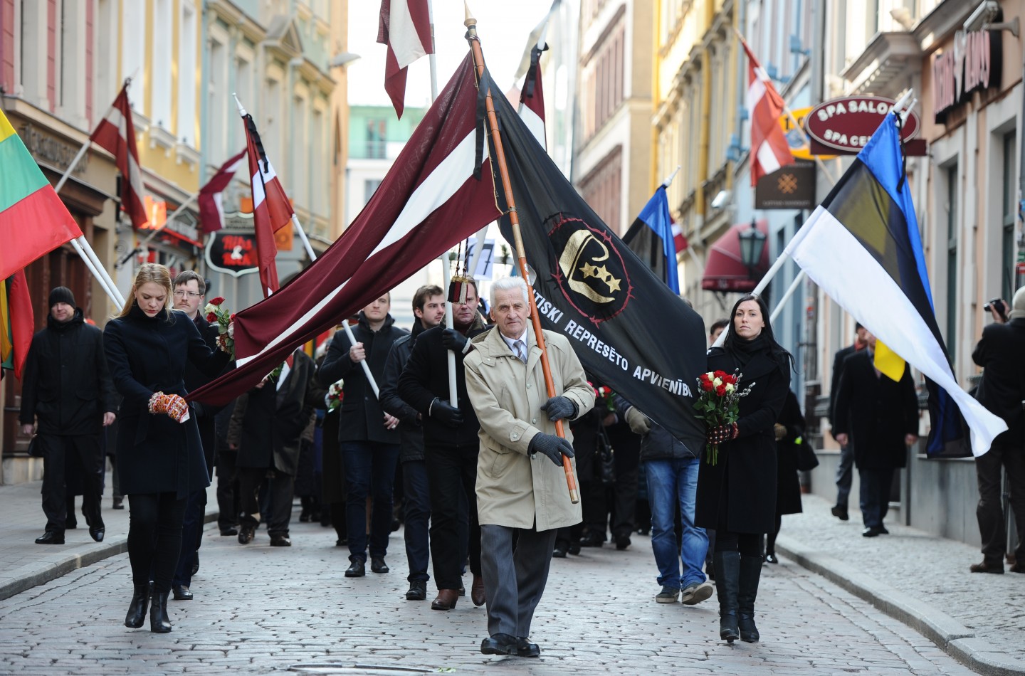 Noliekot ziedus, šodien vairāk nekā 1000 cilvēku pie Brīvības pieminekļa pieminēja 1949.gada 25.marta deportāciju upurus. Pirms pasākuma pie Brīvības pieminekļa vairāki simti cilvēku devās gājienā no Latvijas Okupācijas muzeja līdz Brīvības piemineklim. Gājiena galvgalī tika nesti Latvijas, Lietuvas, Igaunijas un Ukrainas karogi.