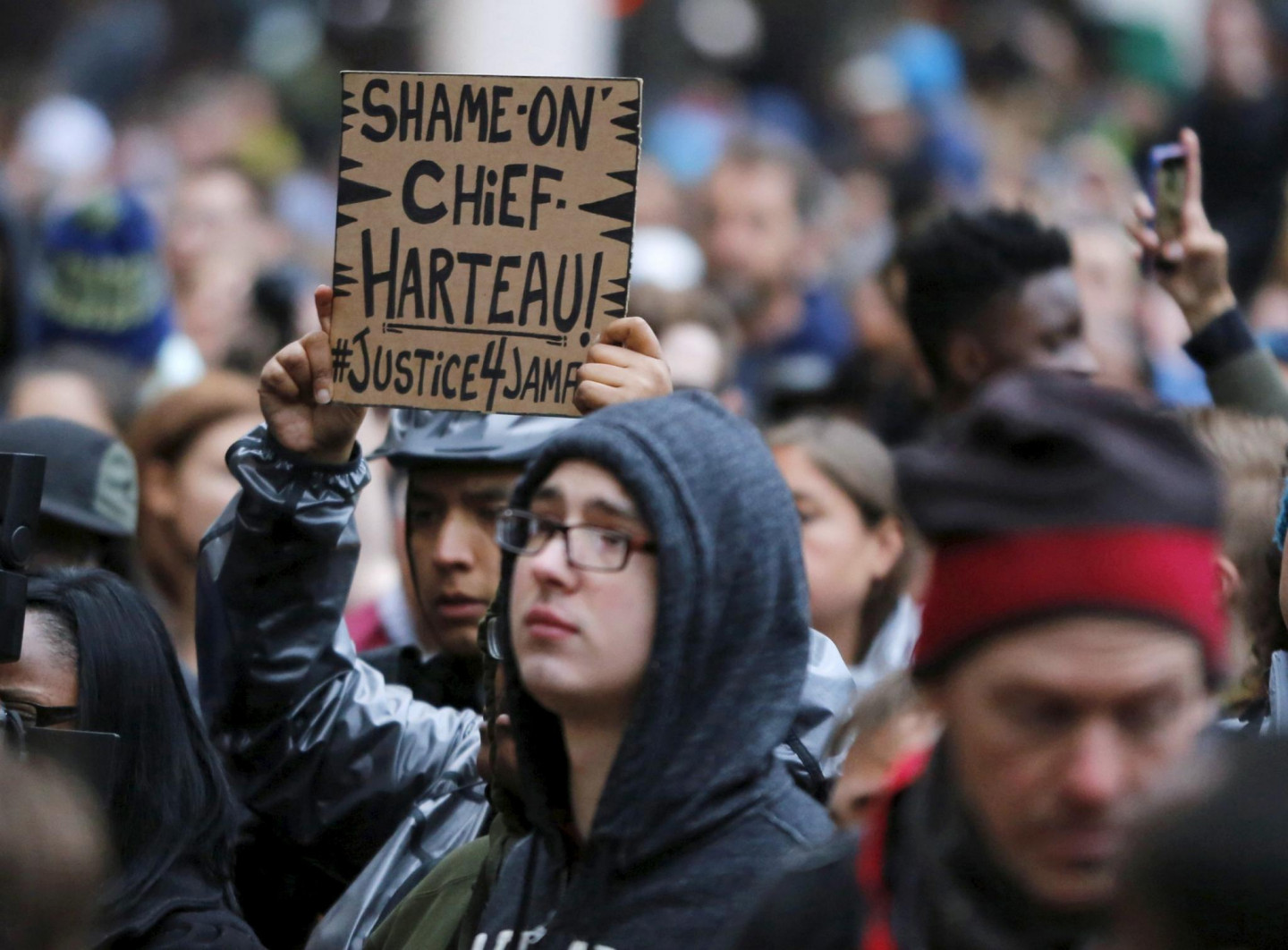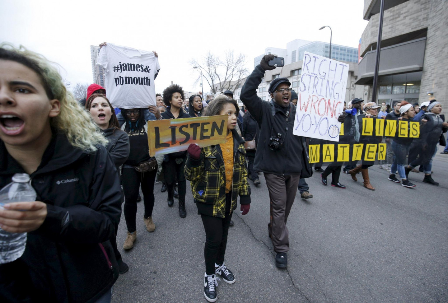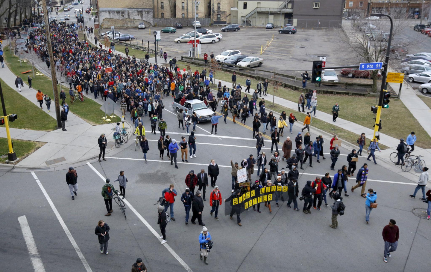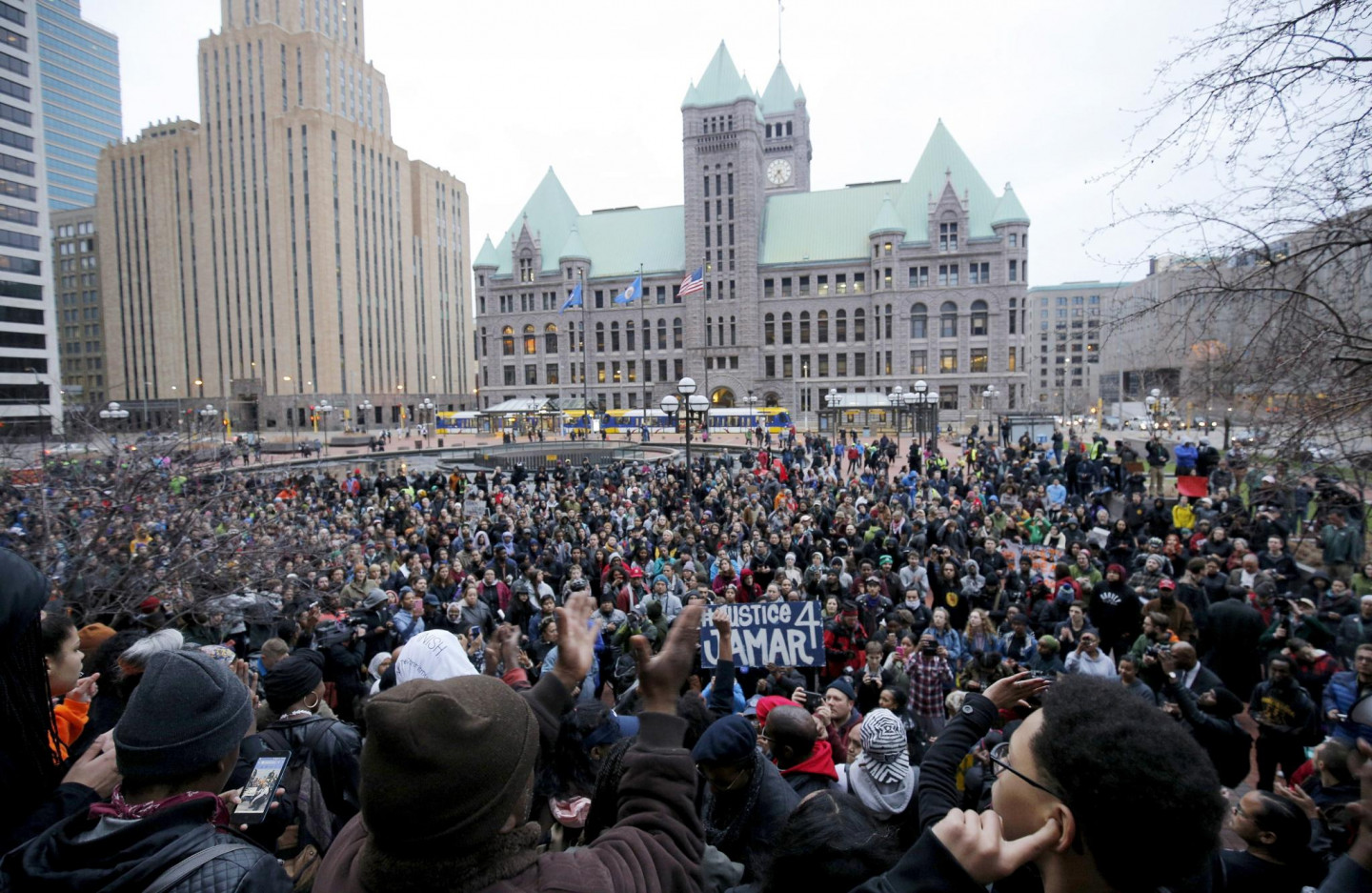 Mineapolisā ASV iedzīvotāji ceturtdien izgāja ielās, lai protestētu pret lēmumu neapsūdzēt divus iesaistītos policistus 24 gadus veca melnādaina jaunieša nāvē.