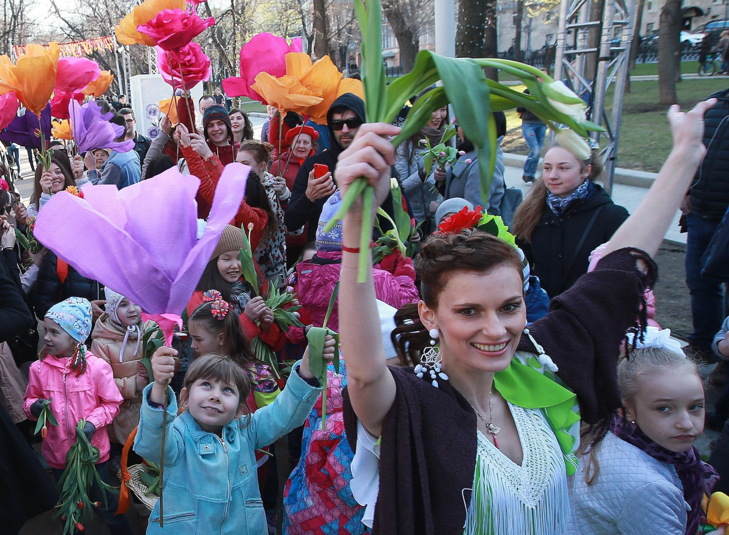 Pavasara festivāla laikā Maskavā notikusi arī ziedu parāde, kurā piedalījušies tūkstošiem cilvēku.