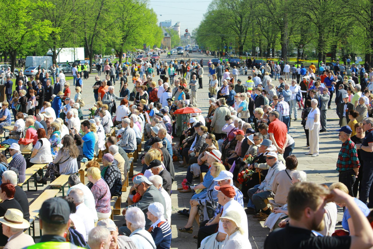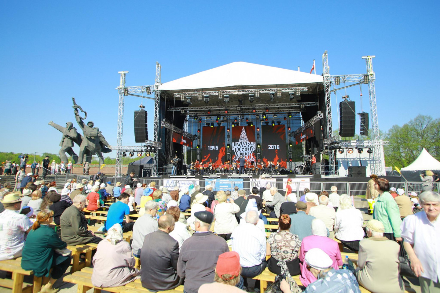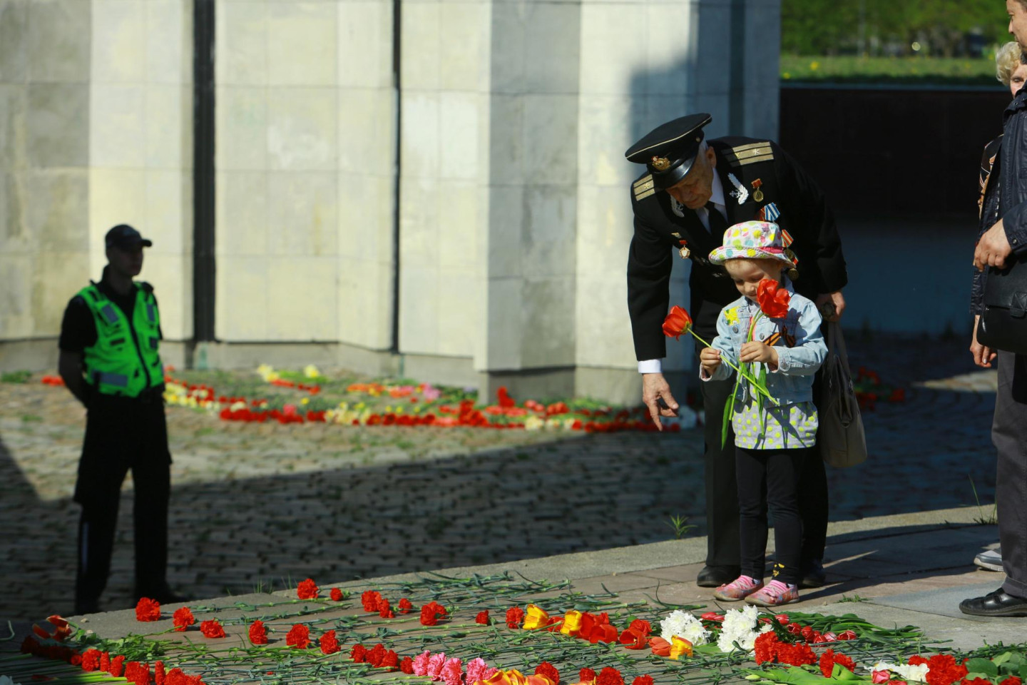 Uzvaras parkā Pārdaugavā ap plkst. 12 bija pulcējušies aptuveni 1000 cilvēku, lai svinētu nacisma sagrāvi Otrajā pasaules karā, liecina Valsts policijas aplēses.