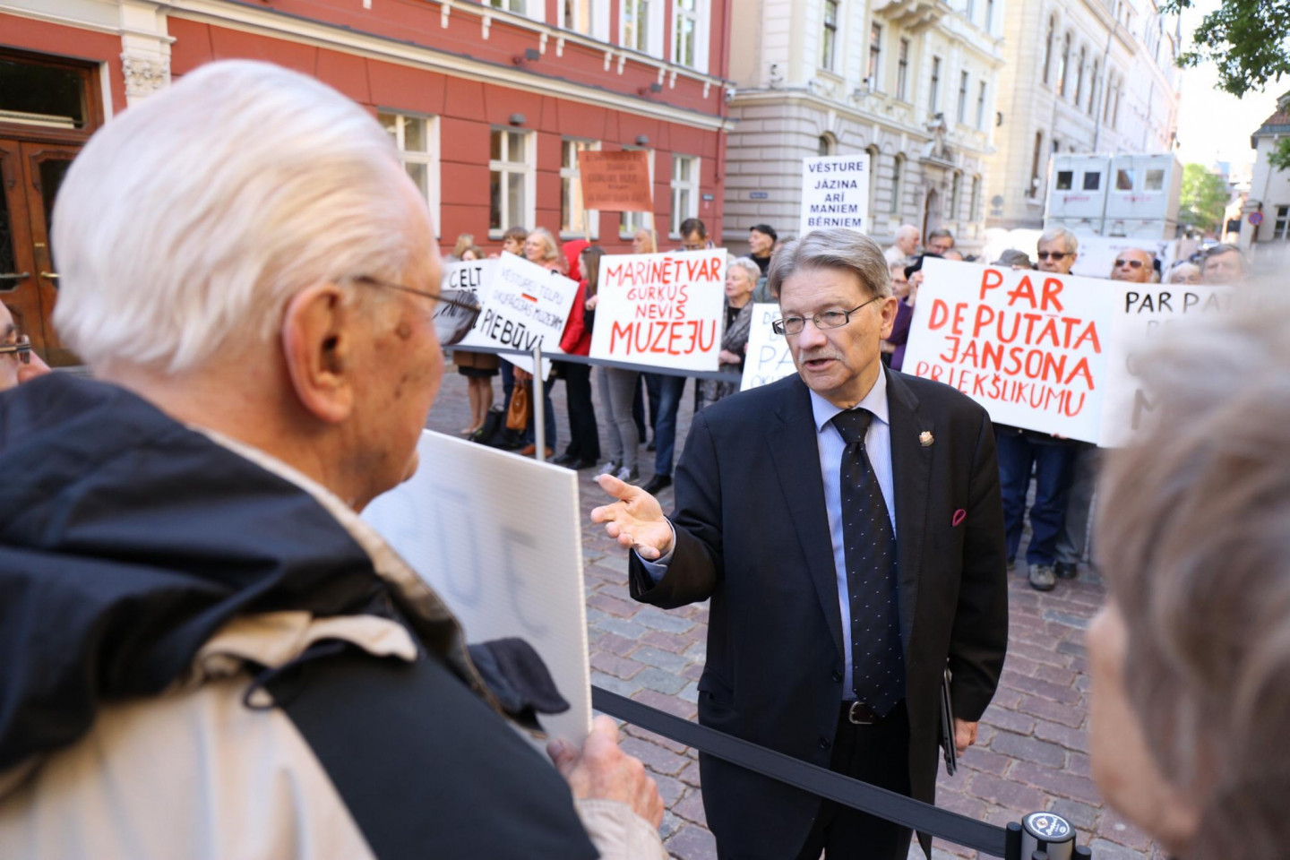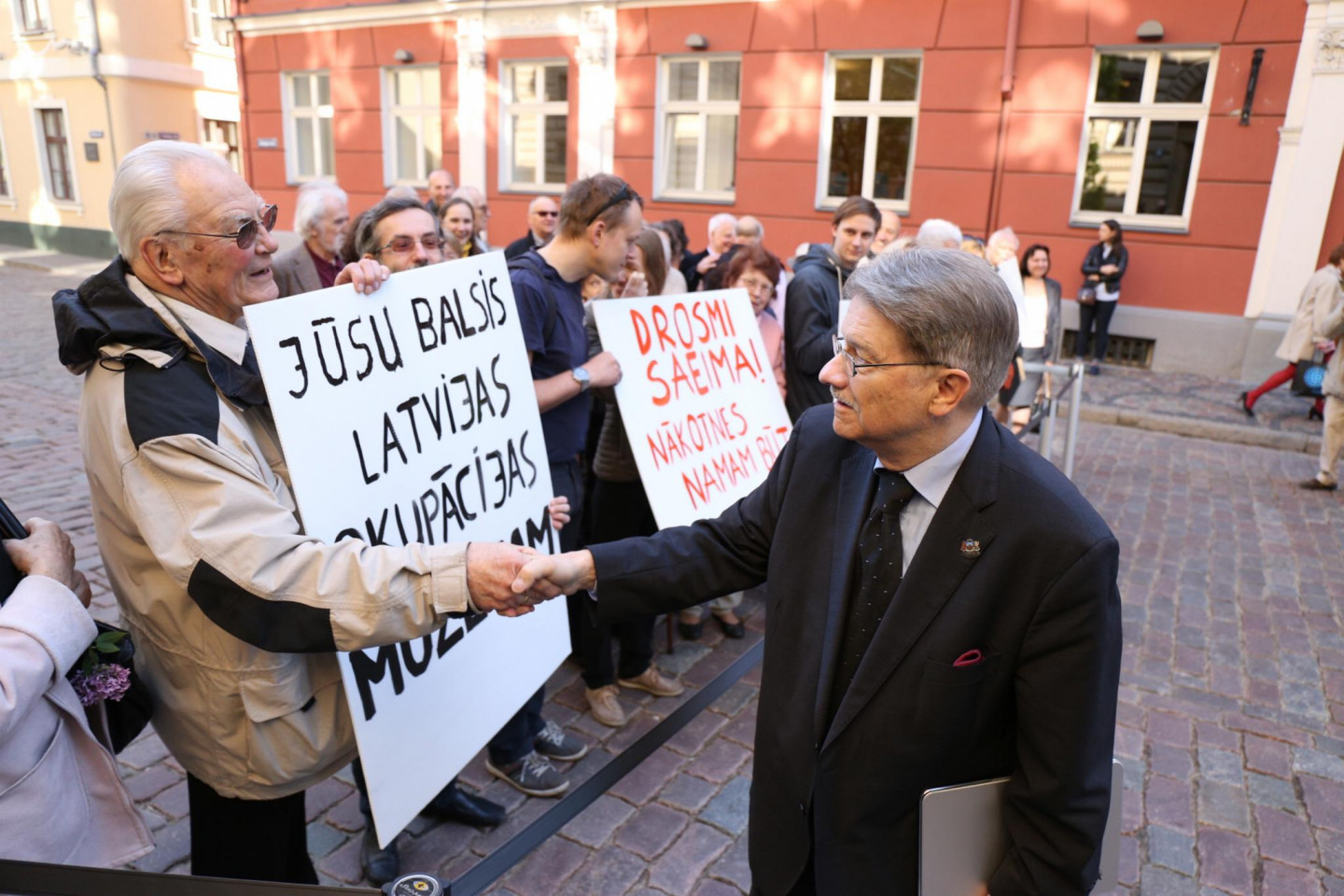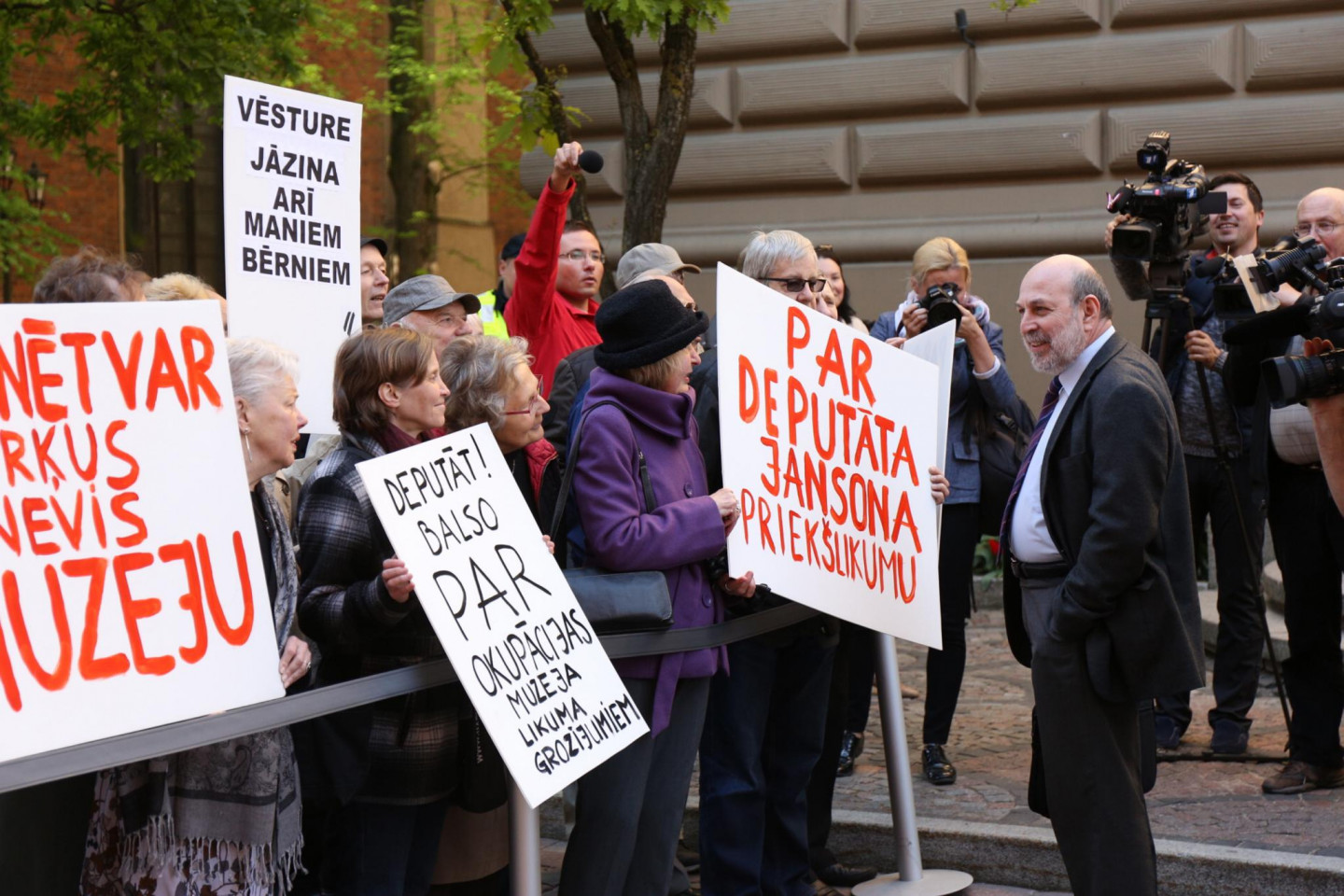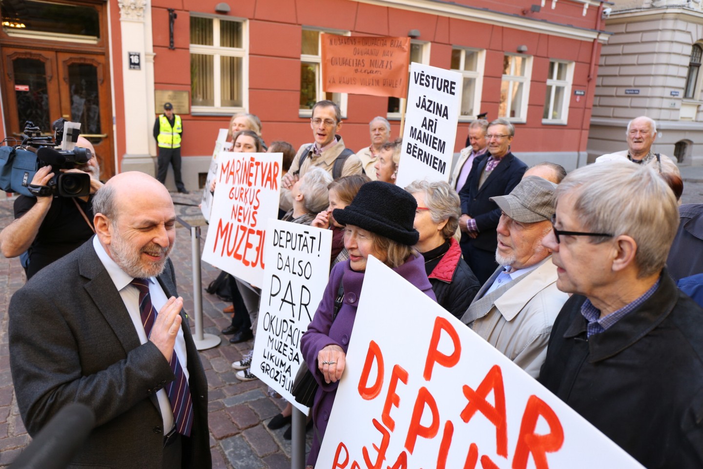 Ceturtdienas rītā pie Saeimas ēkas Rīgā pulcējās Latvijas Okupācijas muzeja biedrības pārstāvji, lai ar plakātiem rokās aicinātu deputātus pieņemt grozījumus Latvijas Okupācijas muzeja likumā. Līdz ar grozījumu pieņemšanu plānots ātrāk uzsākt muzeja piebūves darbus.