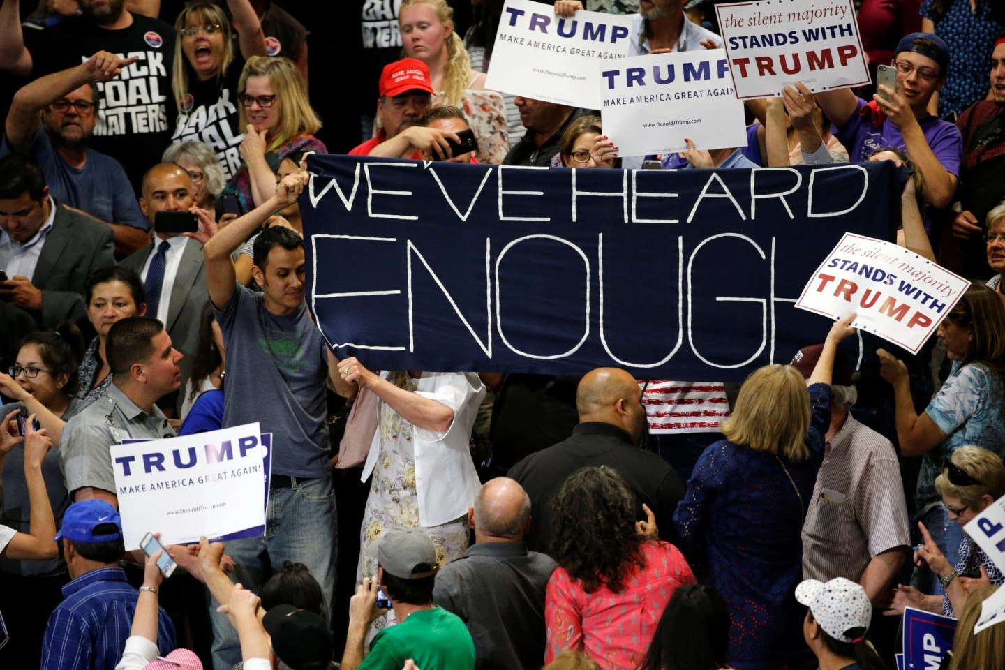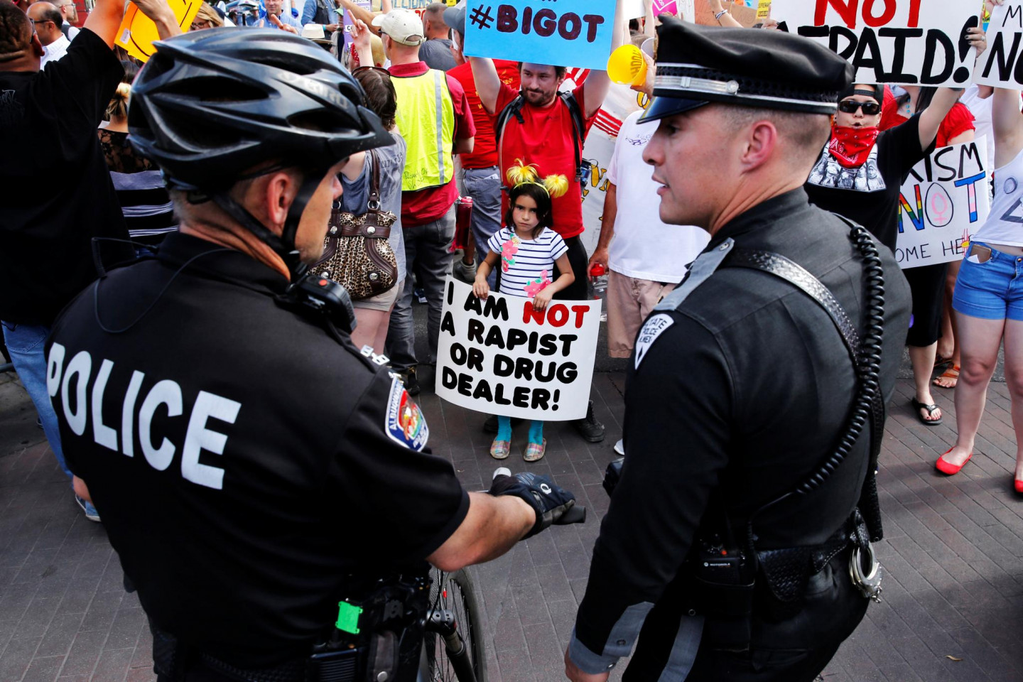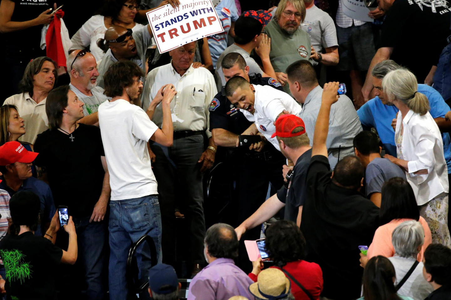 Neapmierināti protestētāji 24.maijā Donalda Trumpa priekšvēlēšanu uzrunas laikā sarīkojuši sadursmes. Viņi aktīvi iestājušies pret Trampa īstenoto politiku,