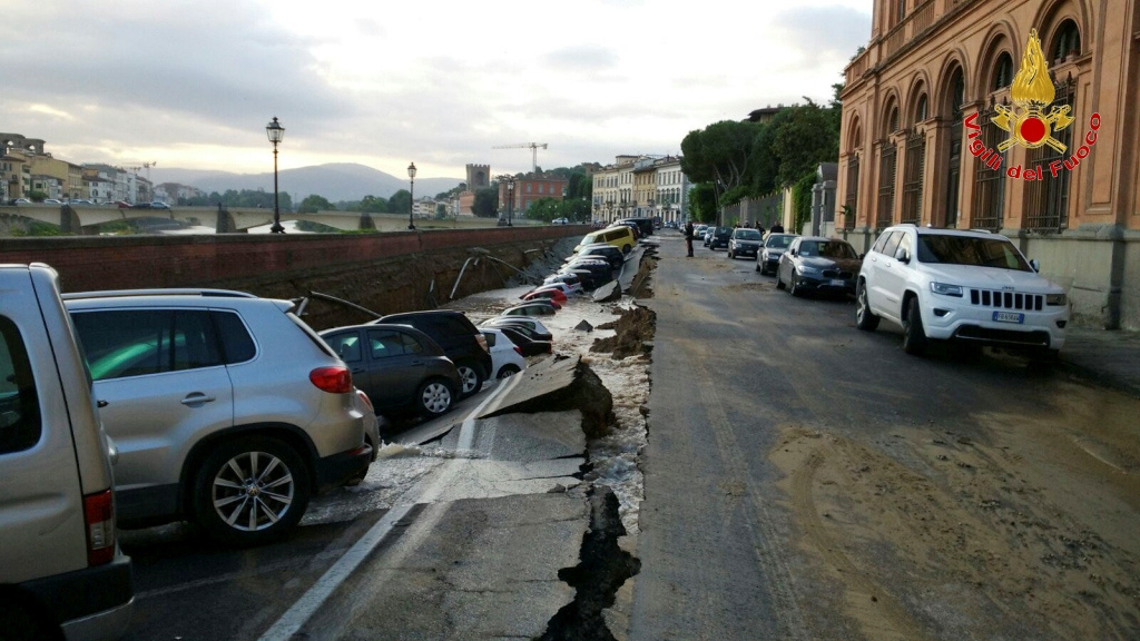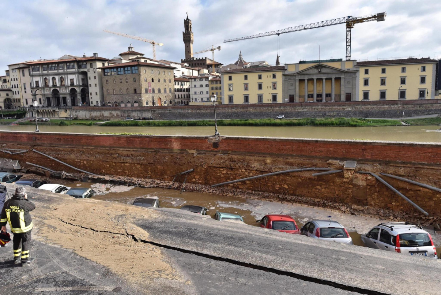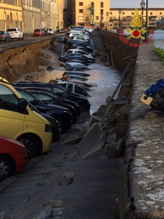 Vairāki automašīnu īpašnieki Florencē, Itālijā, piedzīvojuši nepatīkamu pārsteigumu. Arno upes krastā ūdensvada dēļ noticis zemes iegruvums tieši zem autostāvvietas, kur atradušies auto.