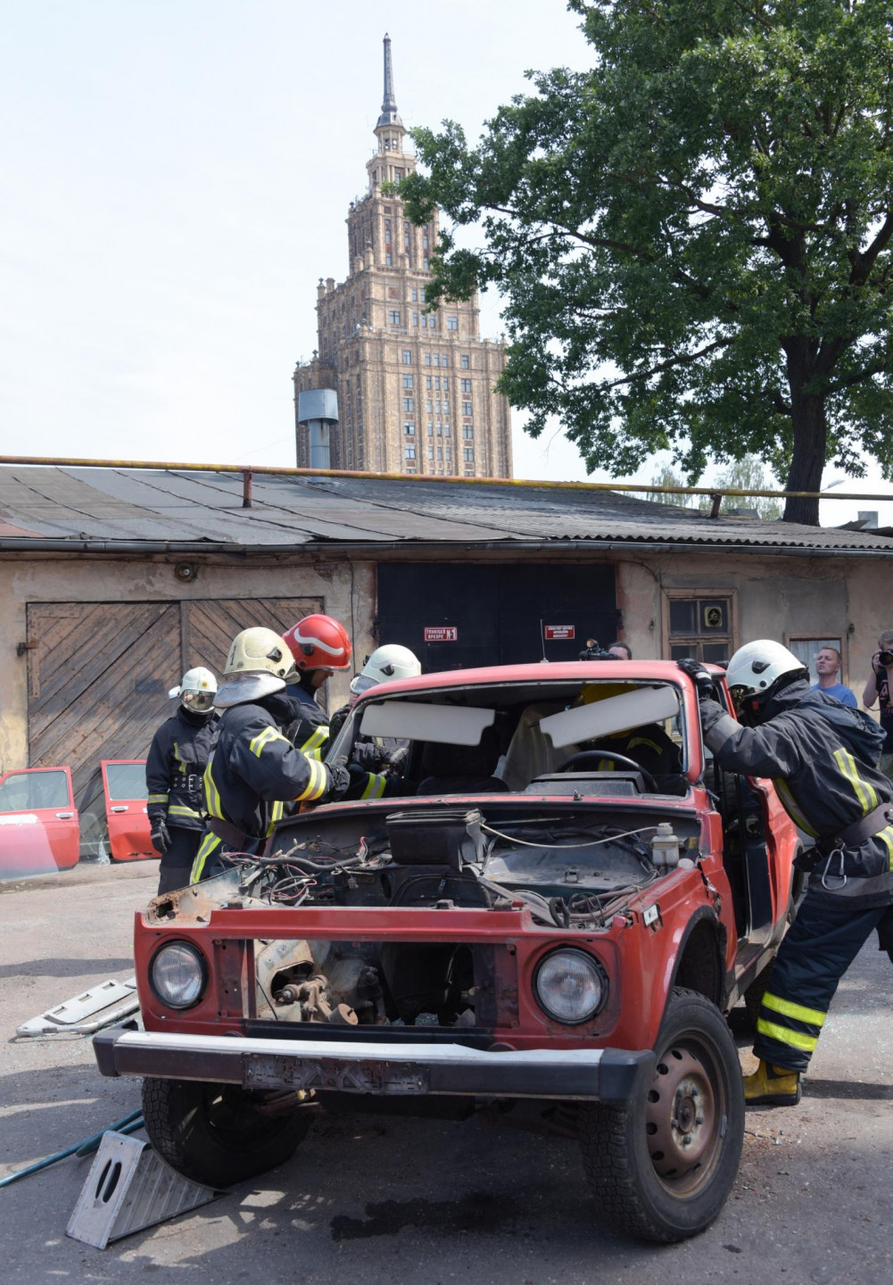 Šodien preses konferencē VUGD un policija atgādināja par drošības un piesardzības pasākumiem svētku laikā , un demonstrēta cilvēka atbrīvošana no automašīnas pēc ceļu satiksmes negadījuma.