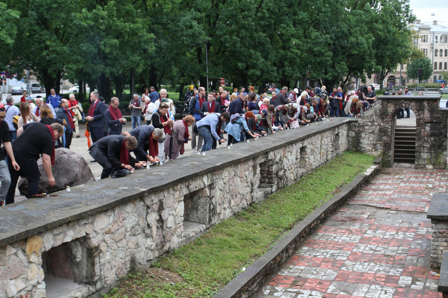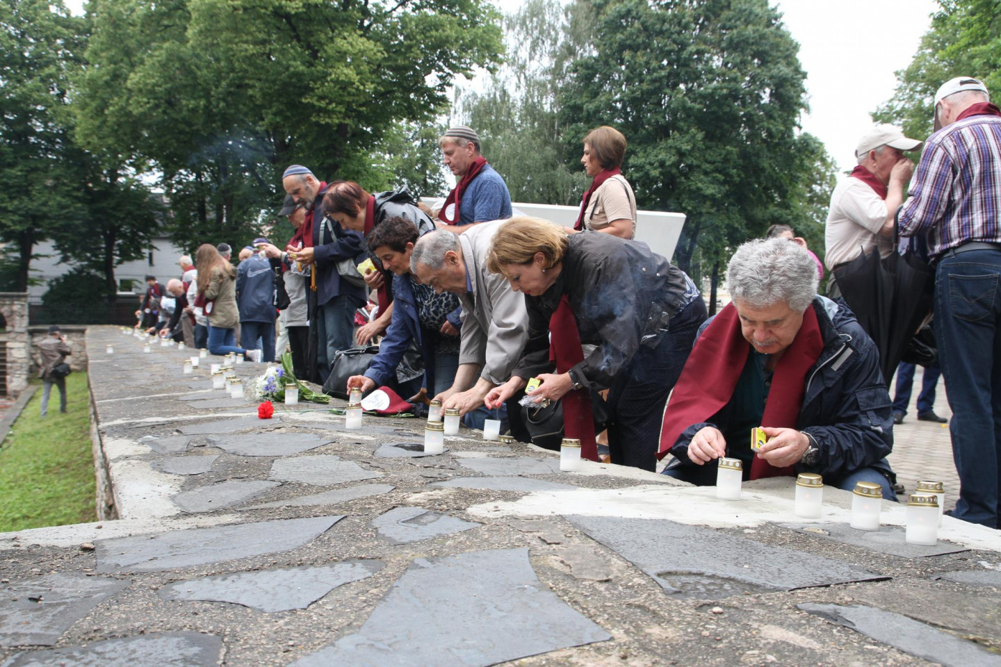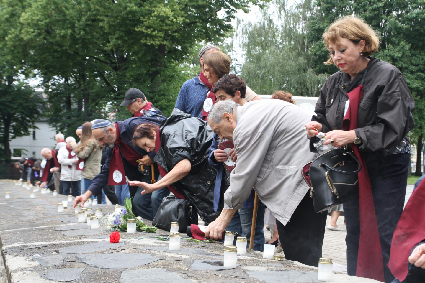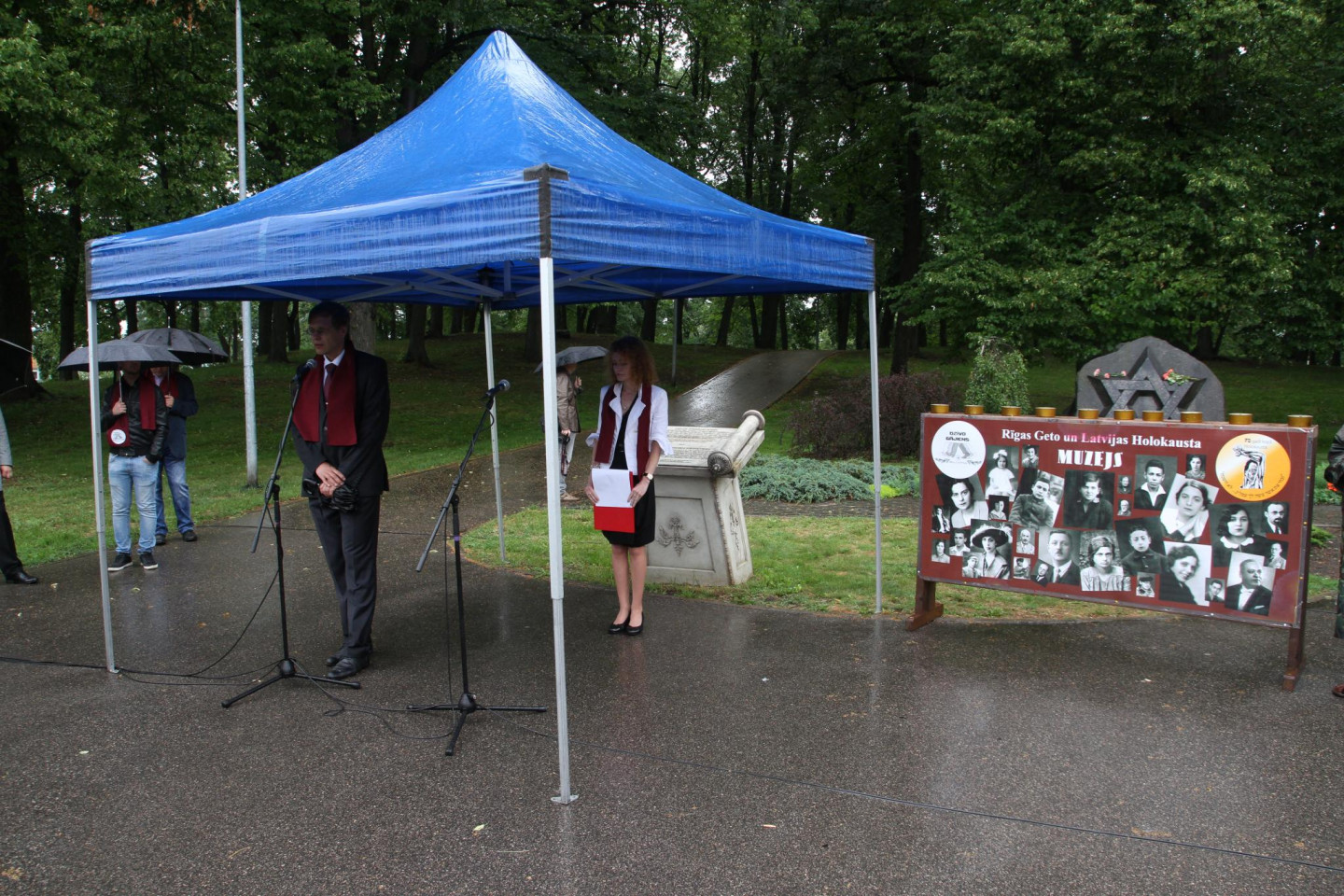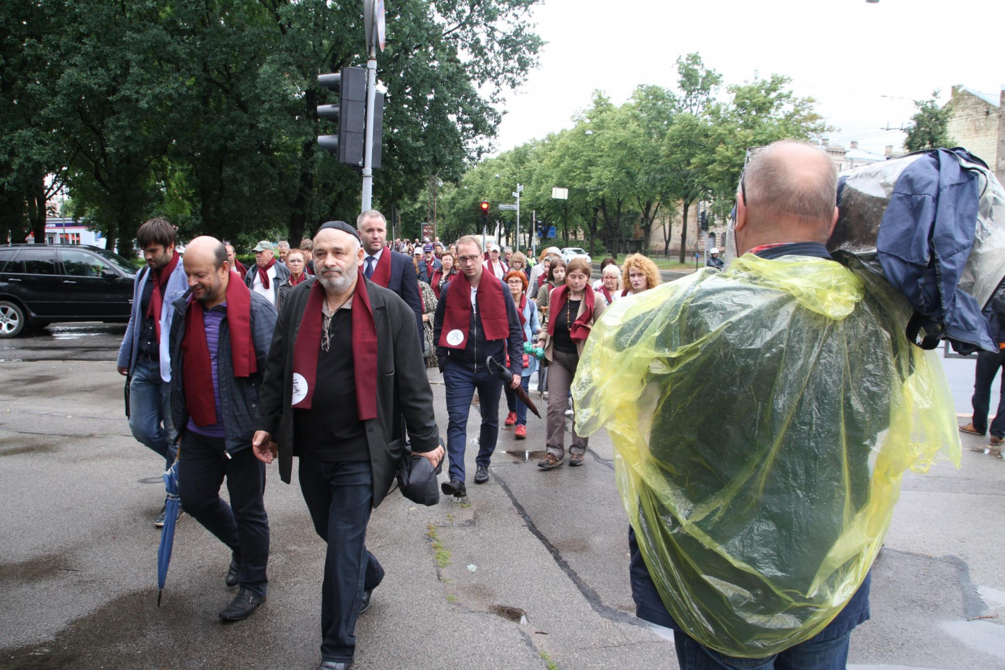 Biedrības "Šamir" rīkotajā holokausta upuru piemiņas gājienā Rīgā devās aptuveni 100 cilvēki.