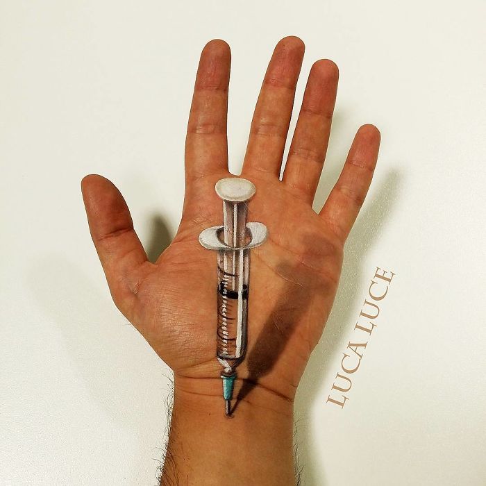Itāļu mākslinieks Luca Luce spēj radīt fantastiskus 3D zīmējumus, kuri atdzīvojas uz viņa plaukstas