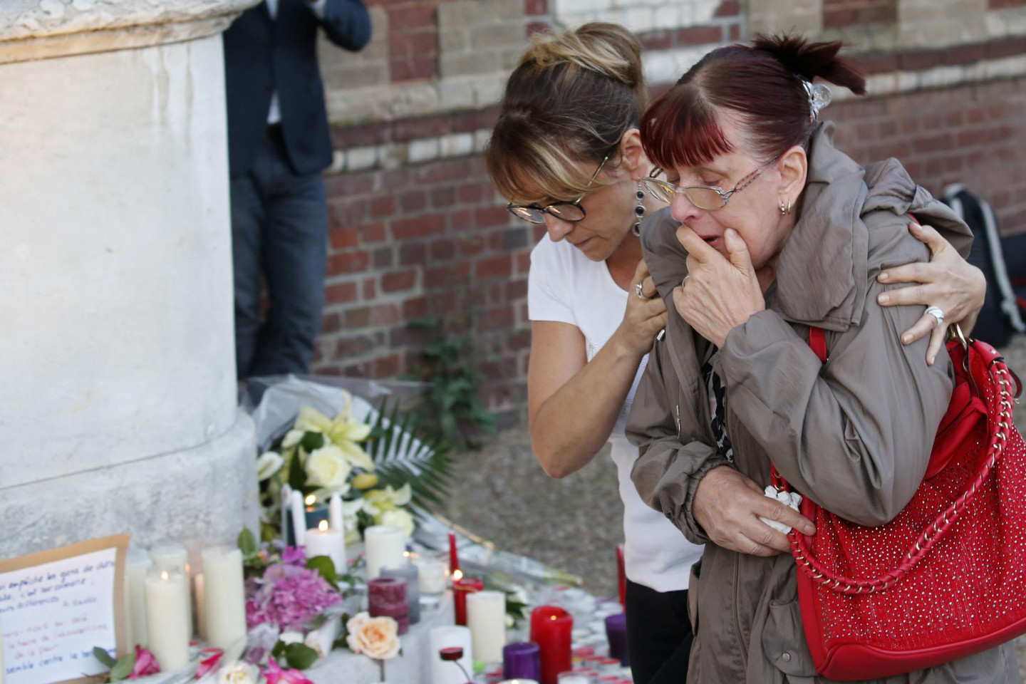 Simtiem cilvēku vakar aizdeguši sveces, lai pieminētu 80 gadus veco priesteri, kurš vakar ticis nogalināts uzbrukuma laikā baznīcā.