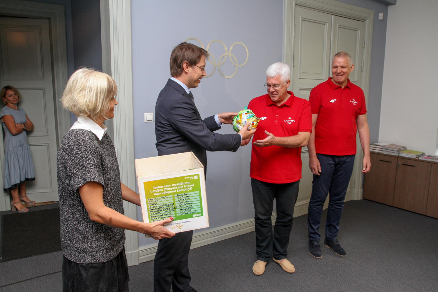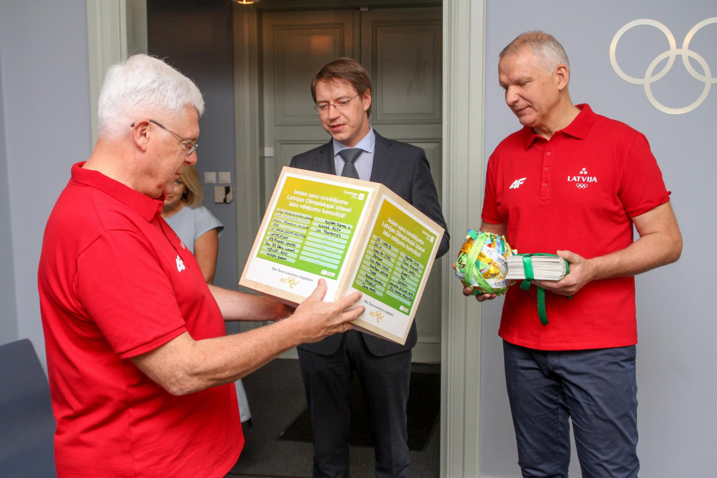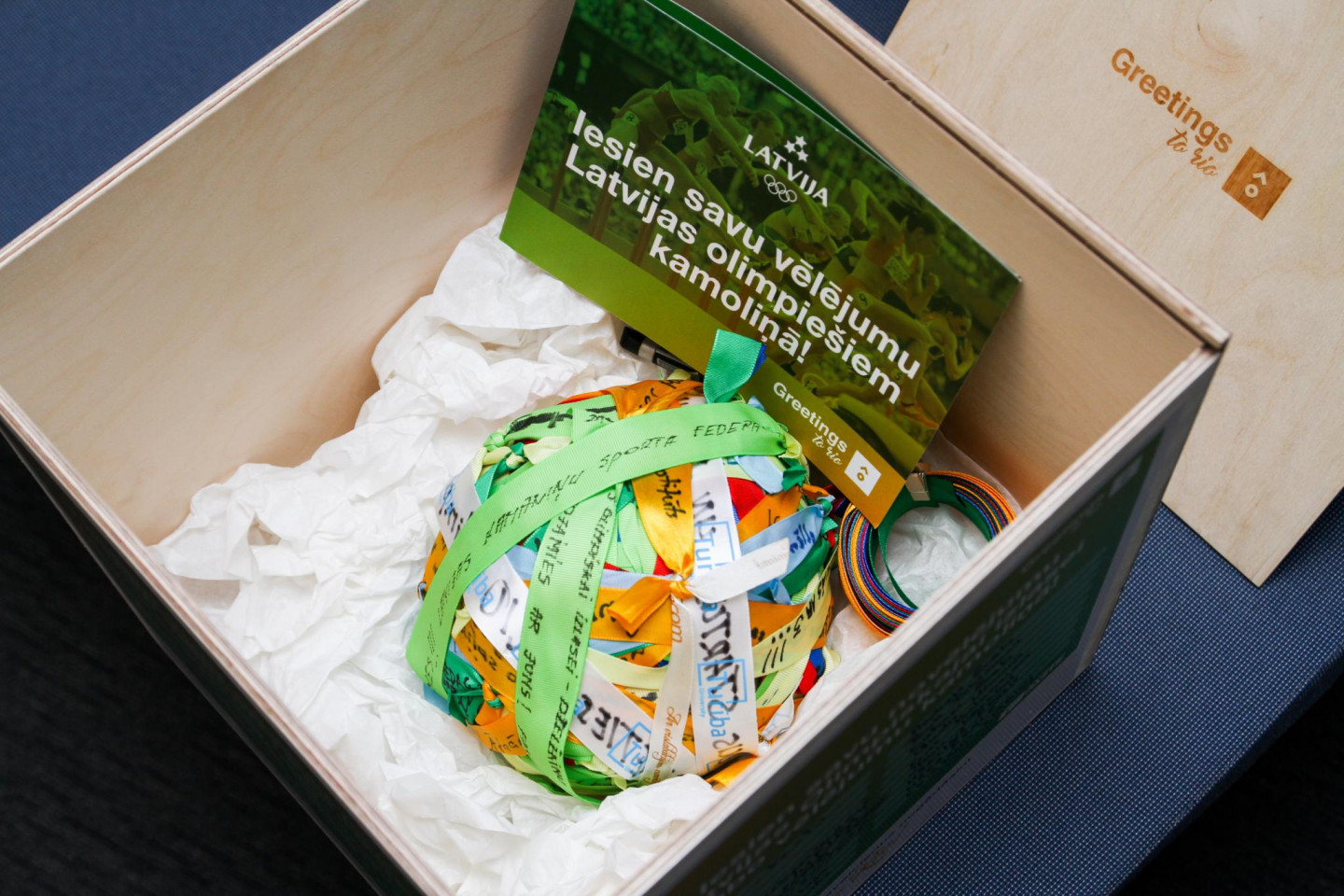 Latvijas Pasts Latvijas iedzīvotāju, uzņēmumu, ministriju, iestāžu sasieto sveicienu kamolu Latvijas olimpiešiem svinīgi nodos Latvijas Olimpiskajai komitejai (LOK) tālākai nogādāšanai uz trīsdesmit pirmo Vasaras Olimpisko spēļu norises vietu Riodežaneiro.