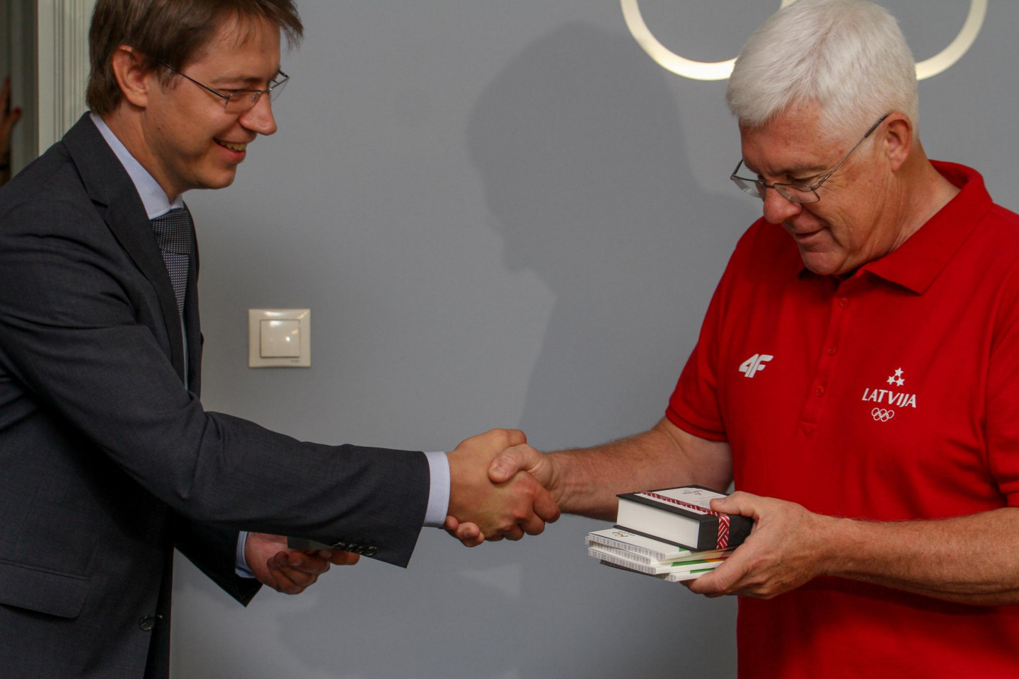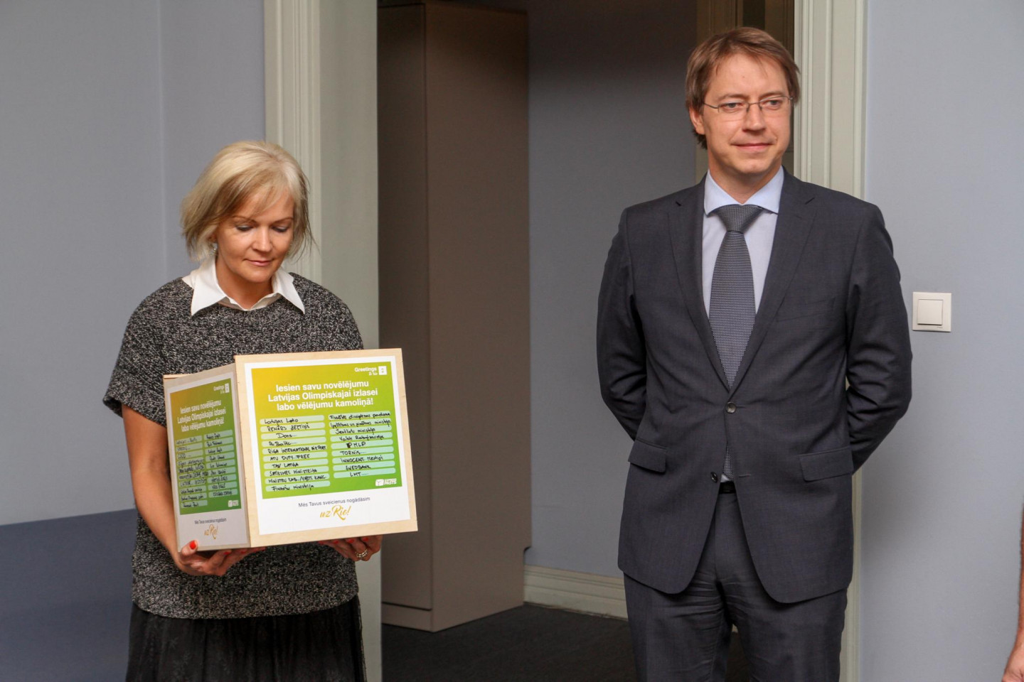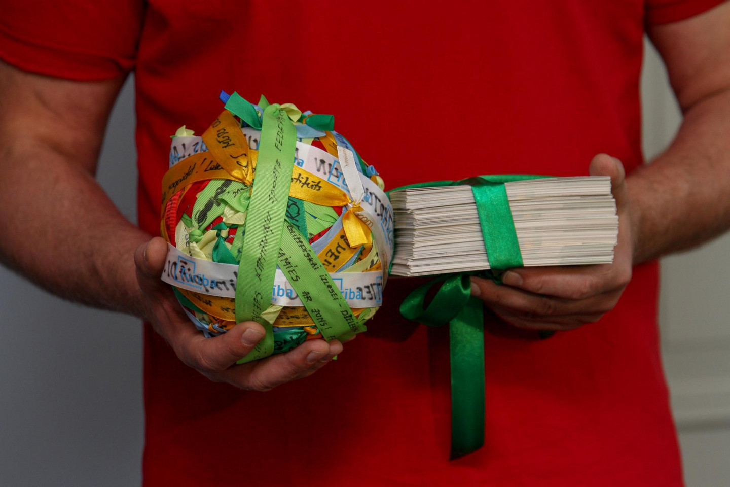 Latvijas Pasts Latvijas iedzīvotāju, uzņēmumu, ministriju, iestāžu sasieto sveicienu kamolu Latvijas olimpiešiem svinīgi nodos Latvijas Olimpiskajai komitejai (LOK) tālākai nogādāšanai uz trīsdesmit pirmo Vasaras Olimpisko spēļu norises vietu Riodežaneiro.