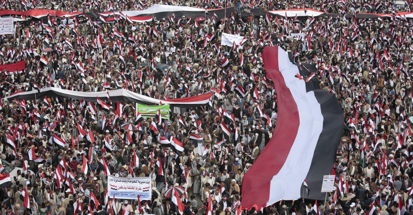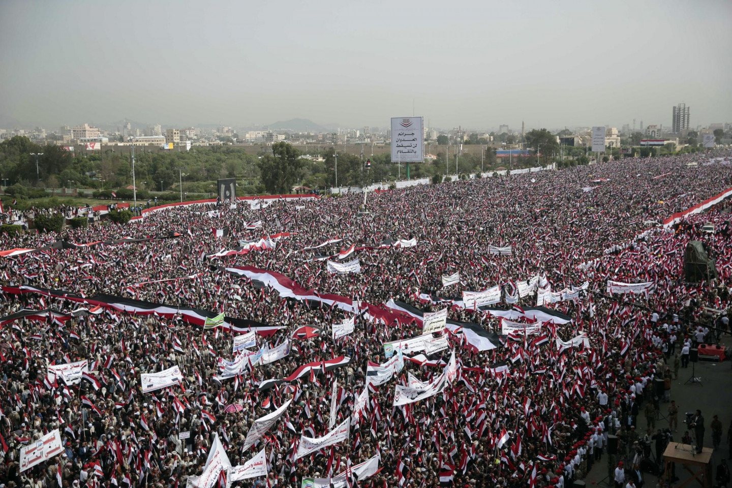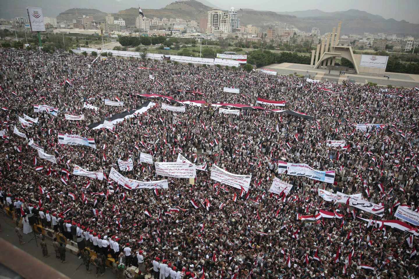 Liels skaits cilvēku izgājis Jemenas galvaspilsētas Sanas ielās, lai paustu atbalstu Houthi nemierniekiem un viņu sabiedrotajiem, kas kontrolē pilsētu.