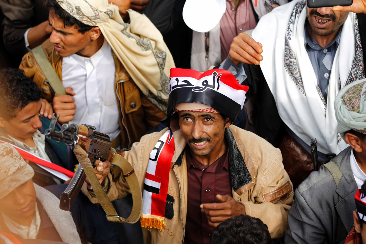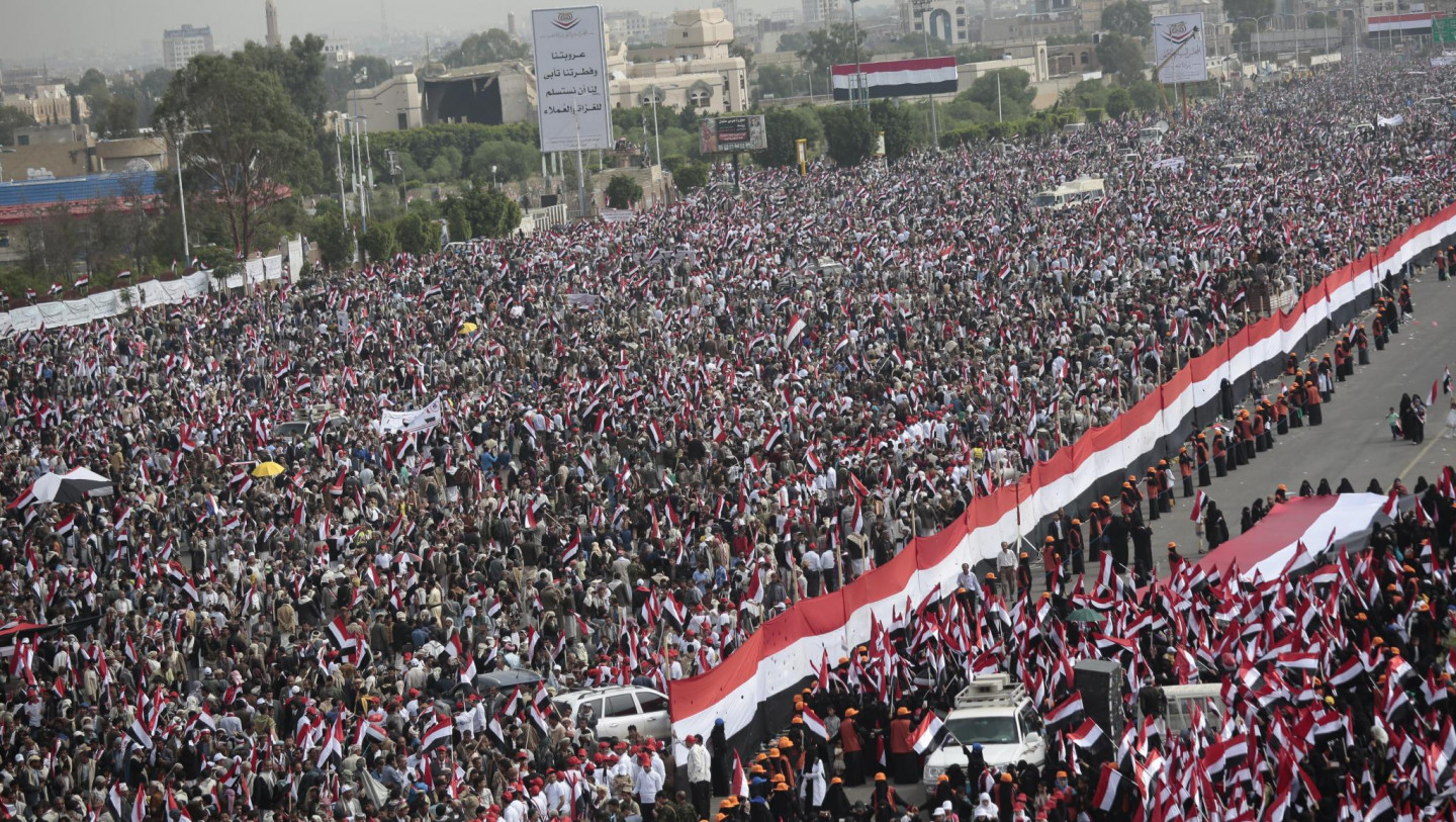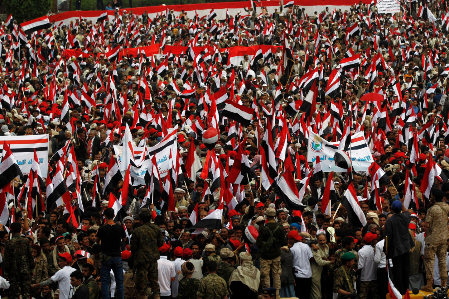 Liels skaits cilvēku izgājis Jemenas galvaspilsētas Sanas ielās, lai paustu atbalstu Houthi nemierniekiem un viņu sabiedrotajiem, kas kontrolē pilsētu.