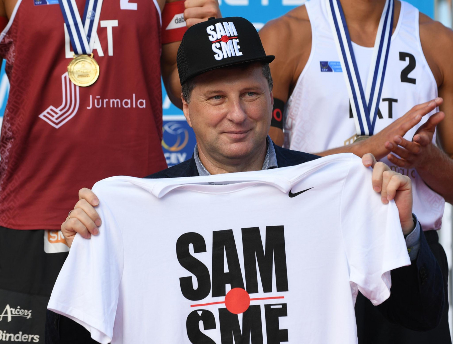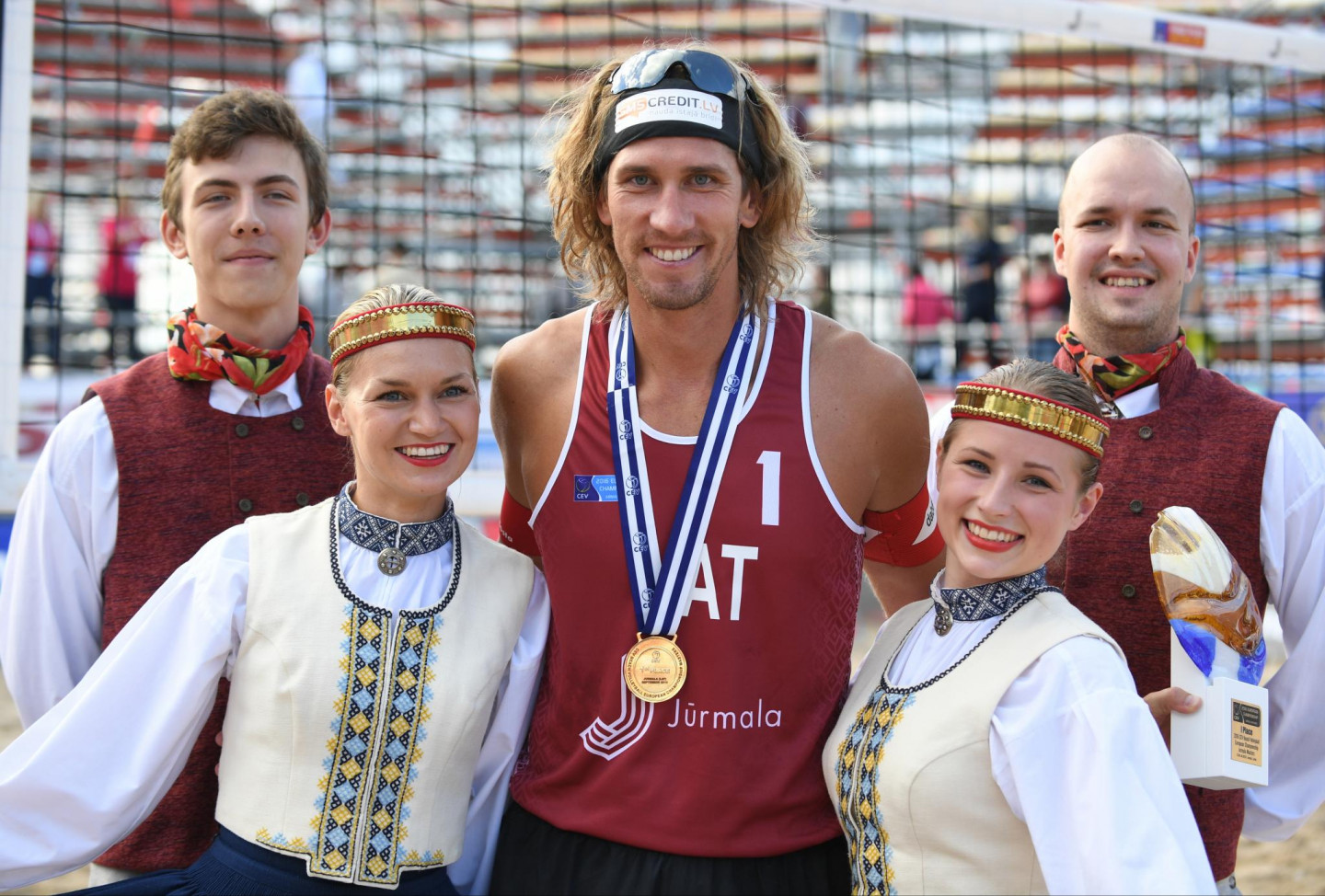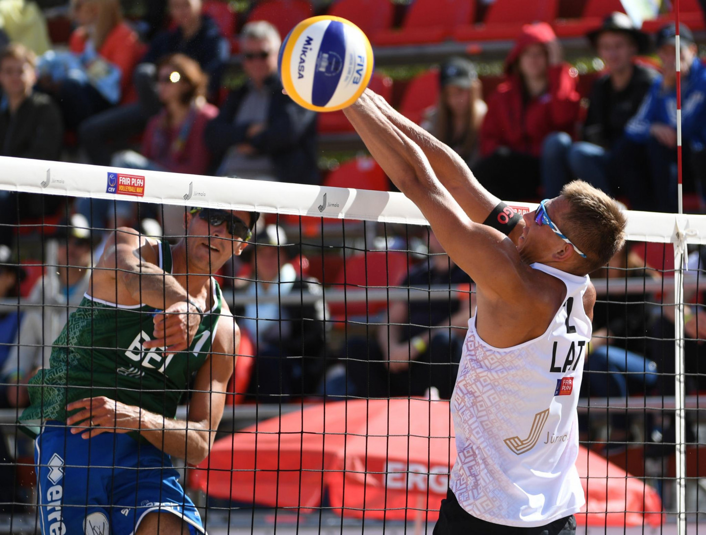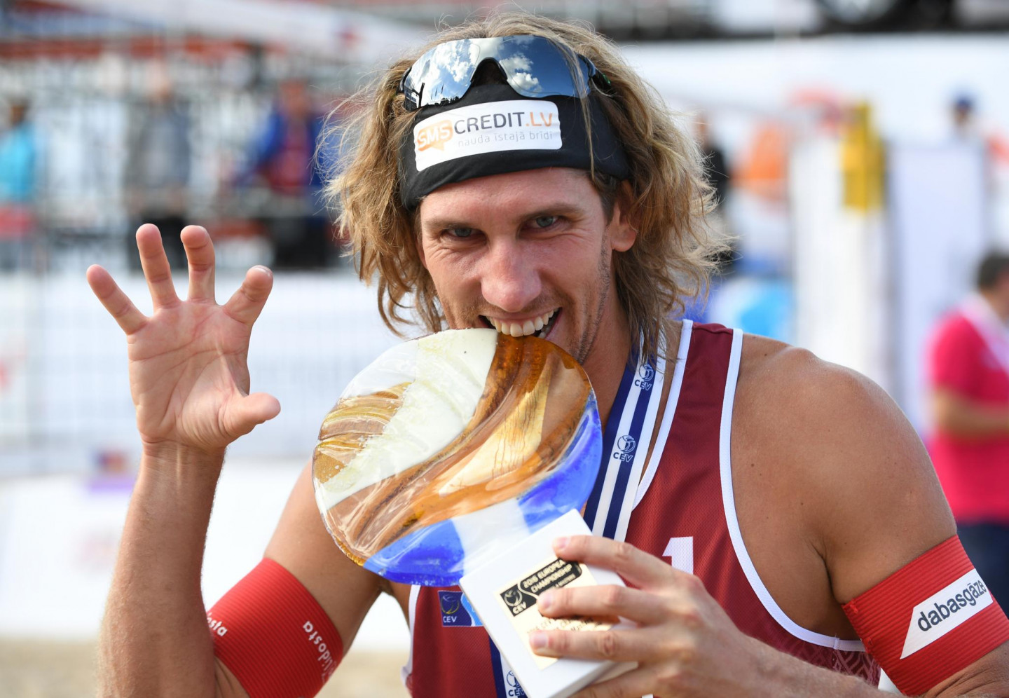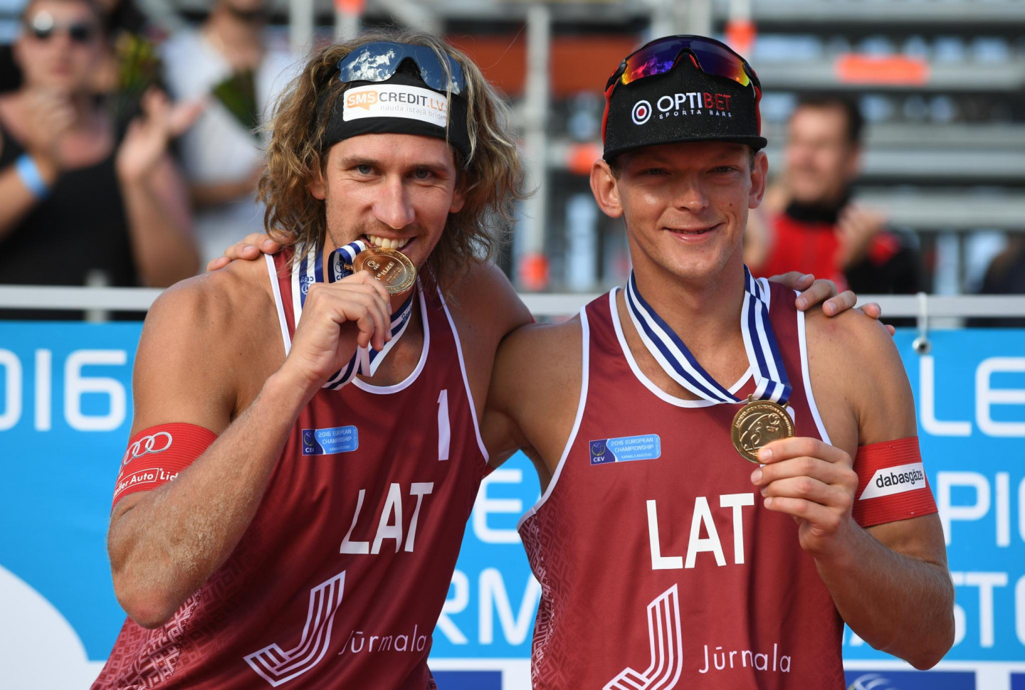 Latvijas pludmales volejbola duets Aleksandrs Samoilovs un Jānis Šmēdiņš svētdien triumfēja Eiropas čempionāta Jūrmalas "Masters" posma finālā, trijos setos apspēlējot krievu duetu Jaroslavu Koškarjovu un Ruslanu Bikanovu. Savukārt Mārtiņš Pļaviņš un Haralds Regža izcīnīja bronzas godalgas.
