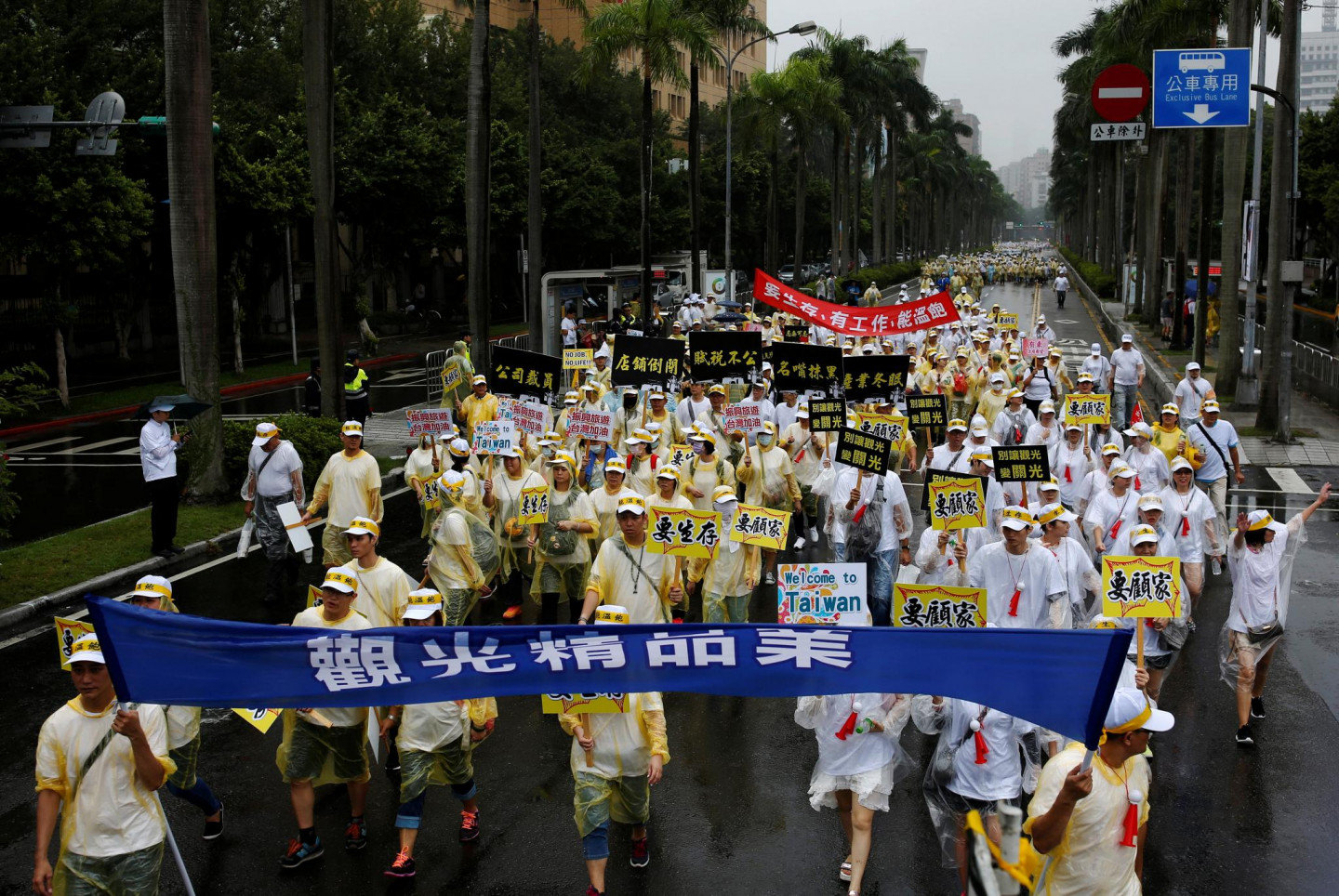 Taivānas tūrisma industrijas pārstāvji devušies protesta gājienā valsts galvaspilsētā Taipejā, kritizējot valdības darbības, kuru dēļ samazinājusies tūrisma plūsma no Ķīnas.