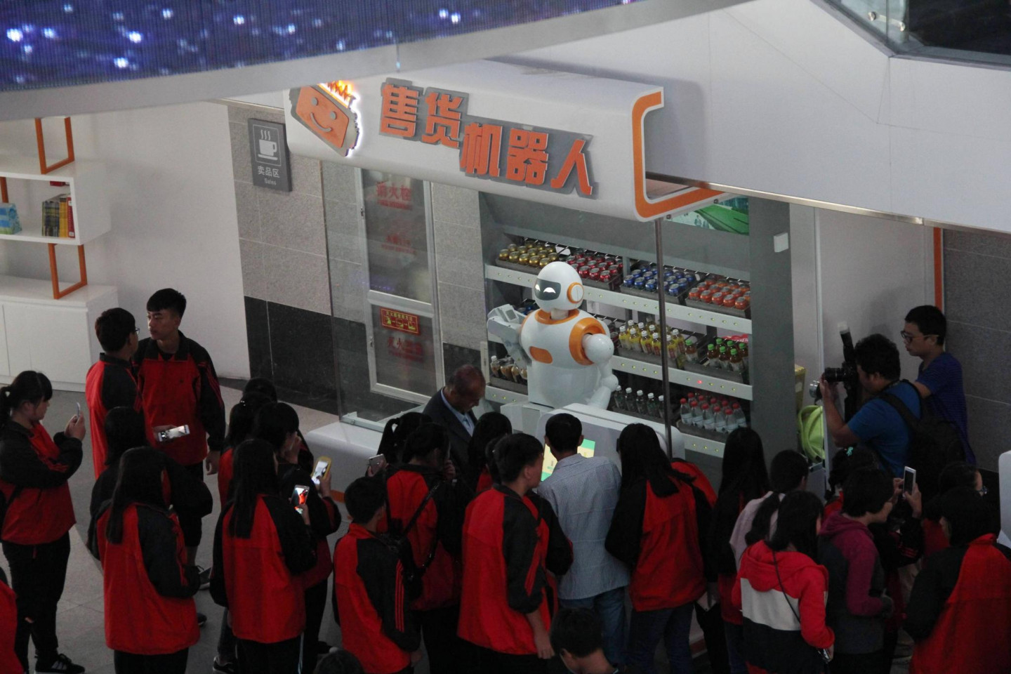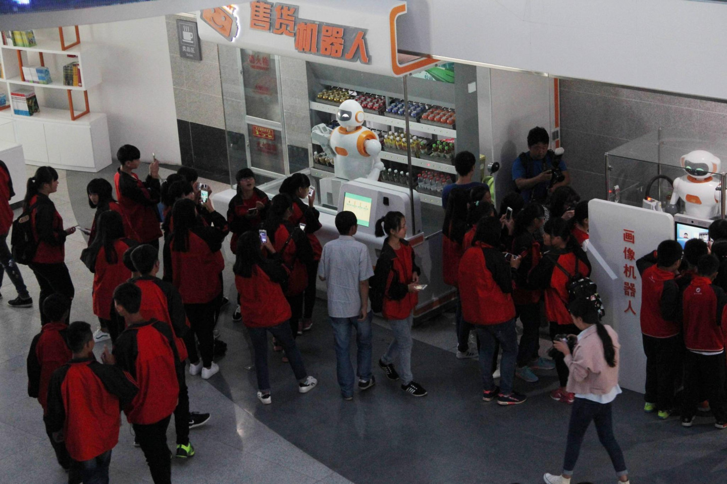 Zinātnes un tehnoloģiju muzejā Binžou pilsētā Ķīnā viesus apkalpo roboti. Tie gan pārdod uzkodas un dzērienus, gan veido cilvēku portretus.