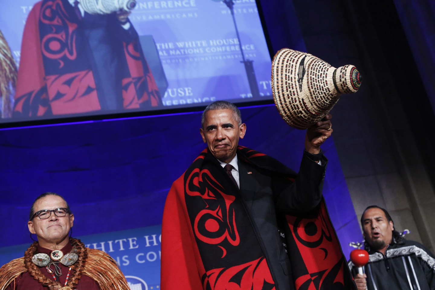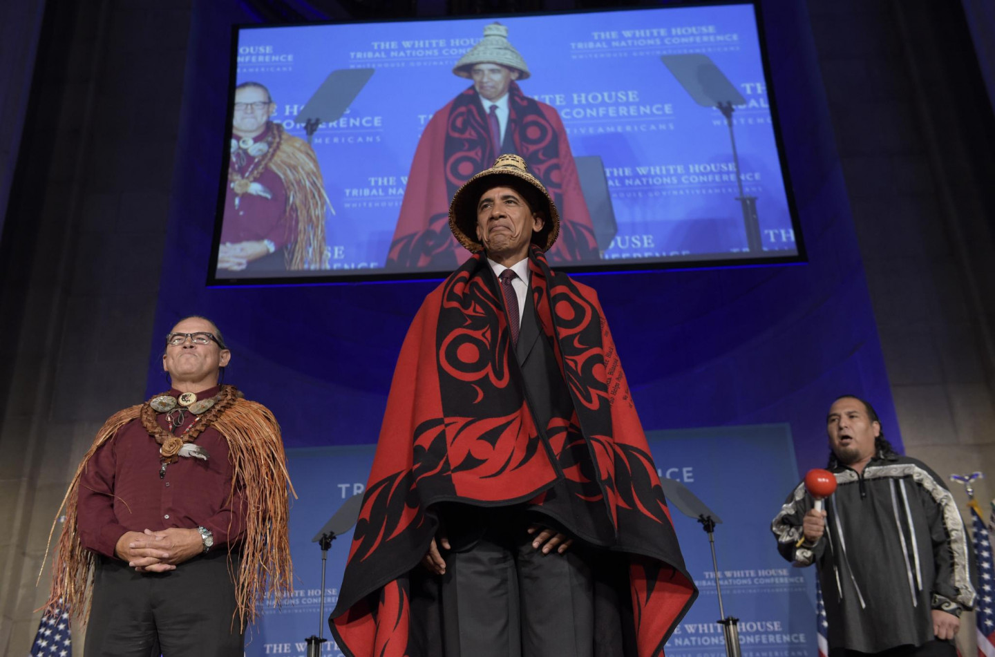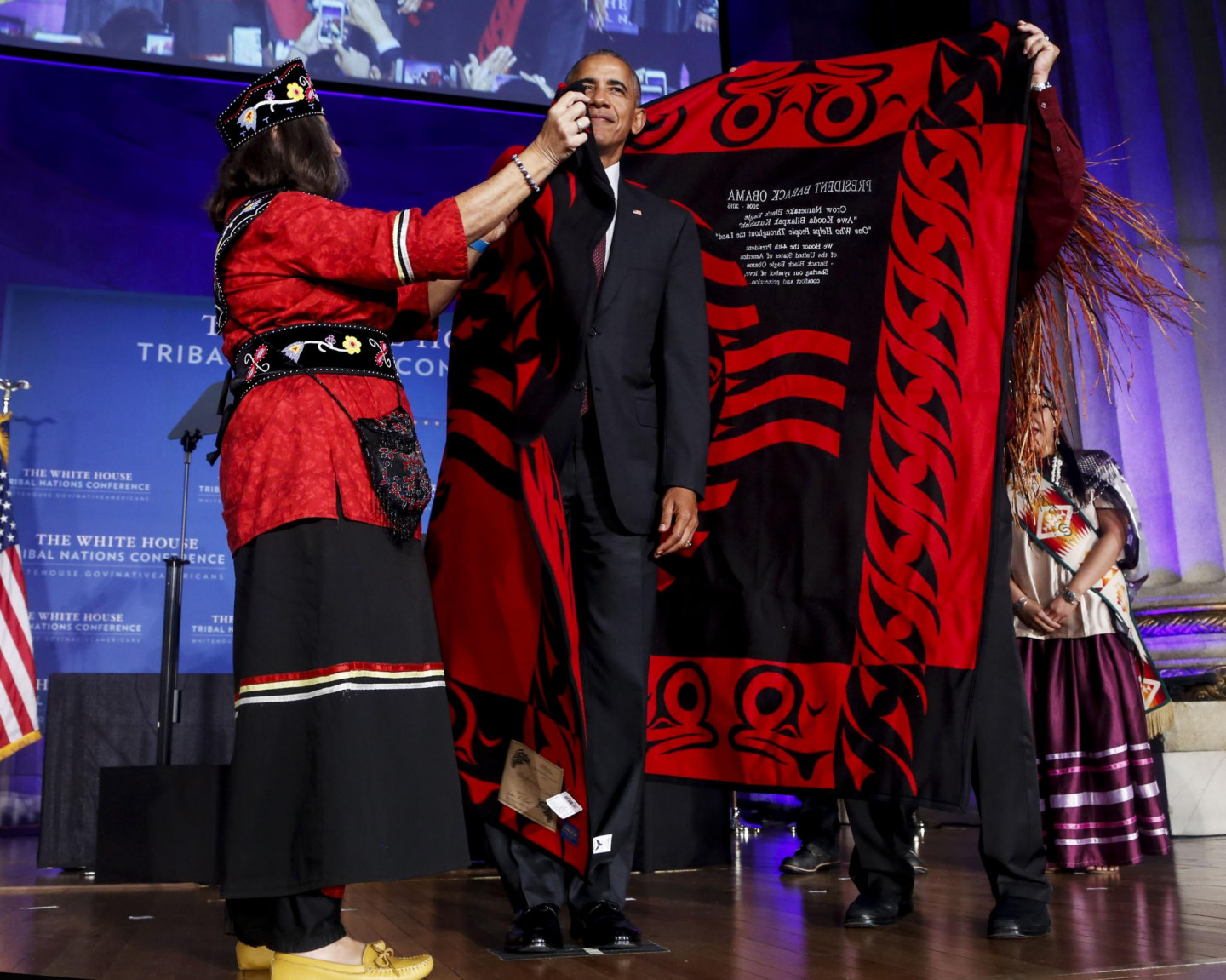 Pirmdien Baltajā namā ASV norisinājās Cilšu nāciju konference, kuras laikā valsts prezidents Baraks Obama tika ietērpts tradicionālajā indiāņu tērpā.