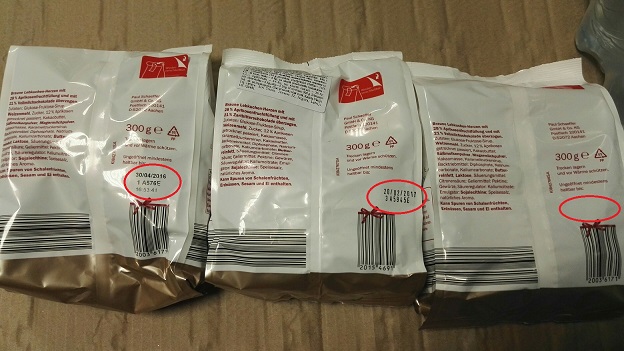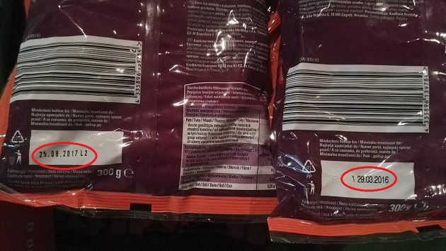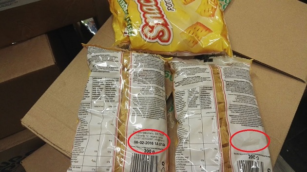 Pārtikas un veterinārais dienests (PVD), sadarbībā ar Valsts policijas Galvenās kriminālpolicijas pārvaldes Ekonomisko noziegumu apkarošanas pārvaldes darbiniekiem, SIA “Triom” noliktavā Jelgavā atklājis vērienīgu vecu pārtikas preču pārmarķēšanu. Noliktavā izņemtas gandrīz 10 tonnas dažādu saldumu – konfektes, šokolāde, cepumi, kam beidzies derīguma termiņš. PVD inspektori, veicot pārbaudi noliktavā, konstatējuši dažādus krāsu noņēmējus, šķīdinātājus un citas palīgierīces, kuras izmantotas oriģinālā marķējuma likvidēšanai. Tāpat izņemti 26 dažādi spiedogi un spiedogu sagataves ar datumiem un partiju numuriem, kas izmantoti pārtikas preču pārmarķēšanai.