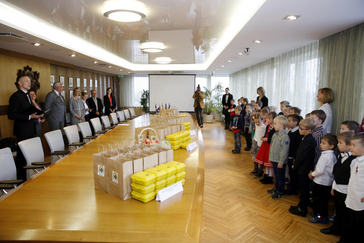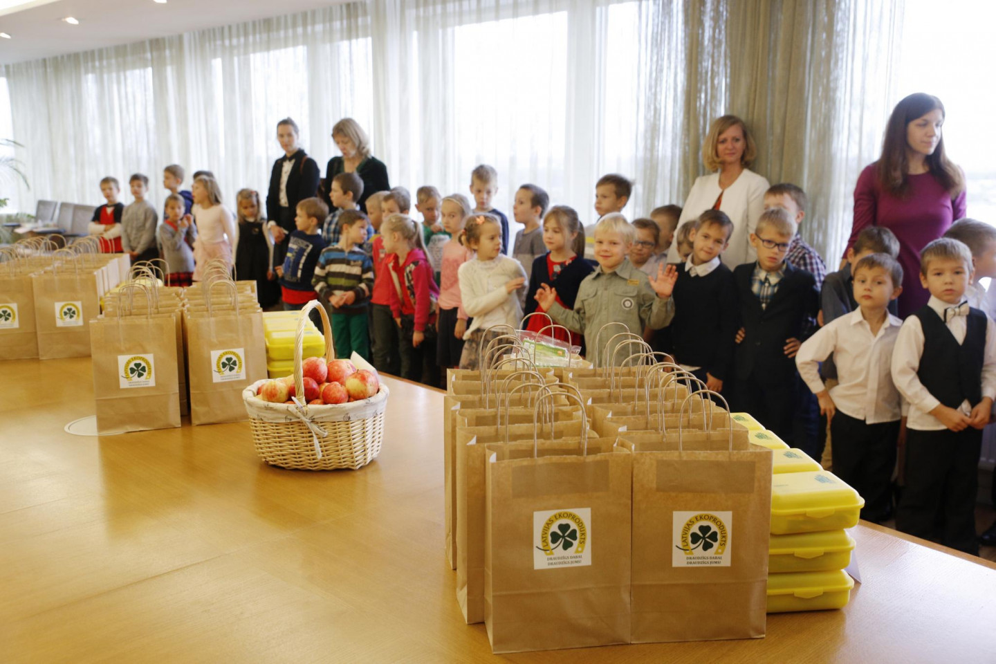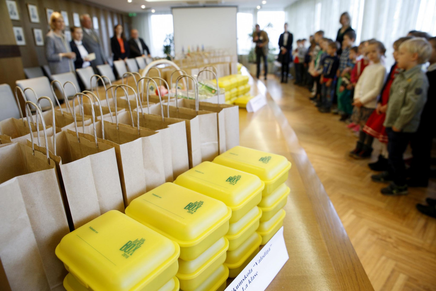 Sākumskolas skolēniem pasniedz pirmās kārbiņas ar bioloģisko pārtiku. Projekta "Biobrokastis mazajam skolēnam" mērķis ir Latvijā iedzīvināt Vācijas Mēklenburgas-Priekšpomerānijas pavalsts tradīciju katram 1.klases skolēnam dāvināt īpašu bioloģiskās pārtikas brokastu kastīti.