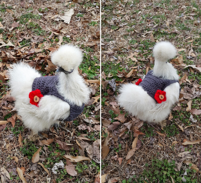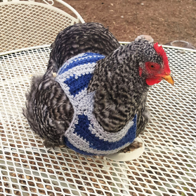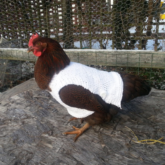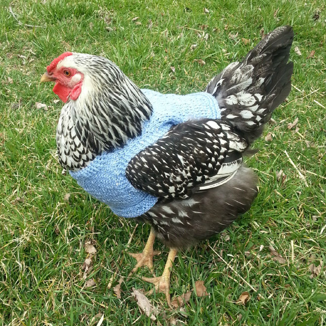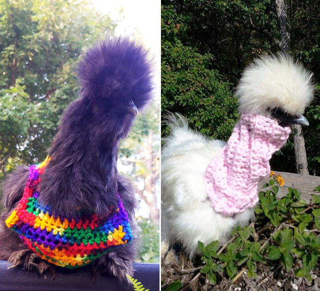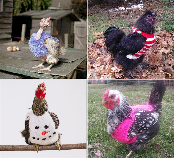 Ne tikai cilvēkiem, iestājoties vēlākam laikam, ir auksti. Arī vistām. Tāpēc vairāki atjautīgi rokdarbnieki ir darinājuši kostīmus vistām un ar bildēm dalījušies internetā.